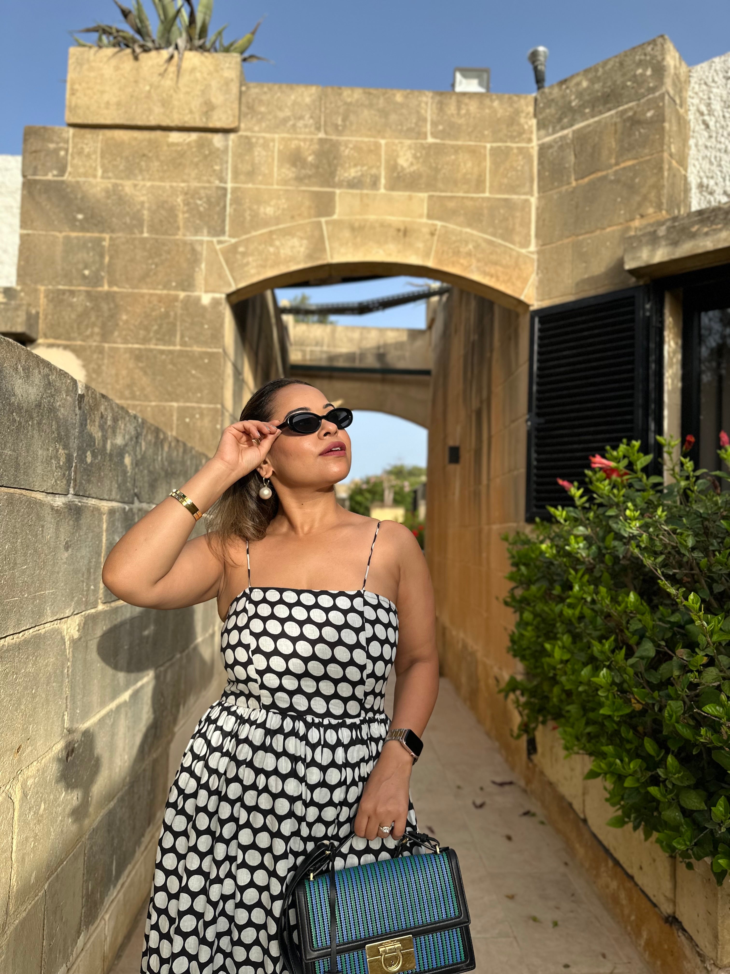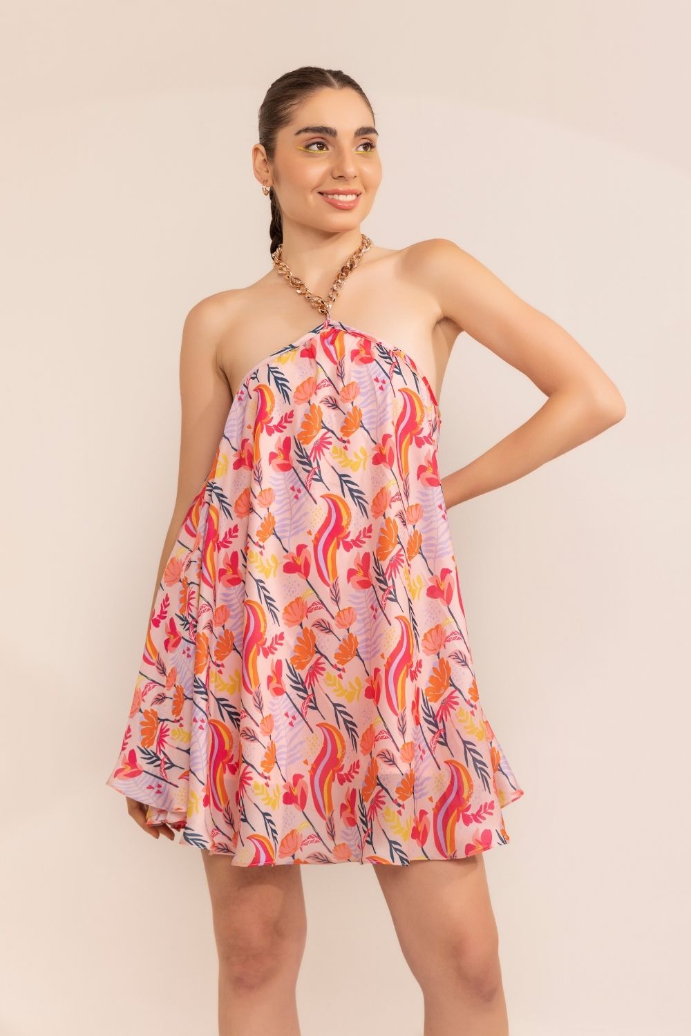 - Style a short printed dress with sneakers and a sling bag for a fun weekend vibe.