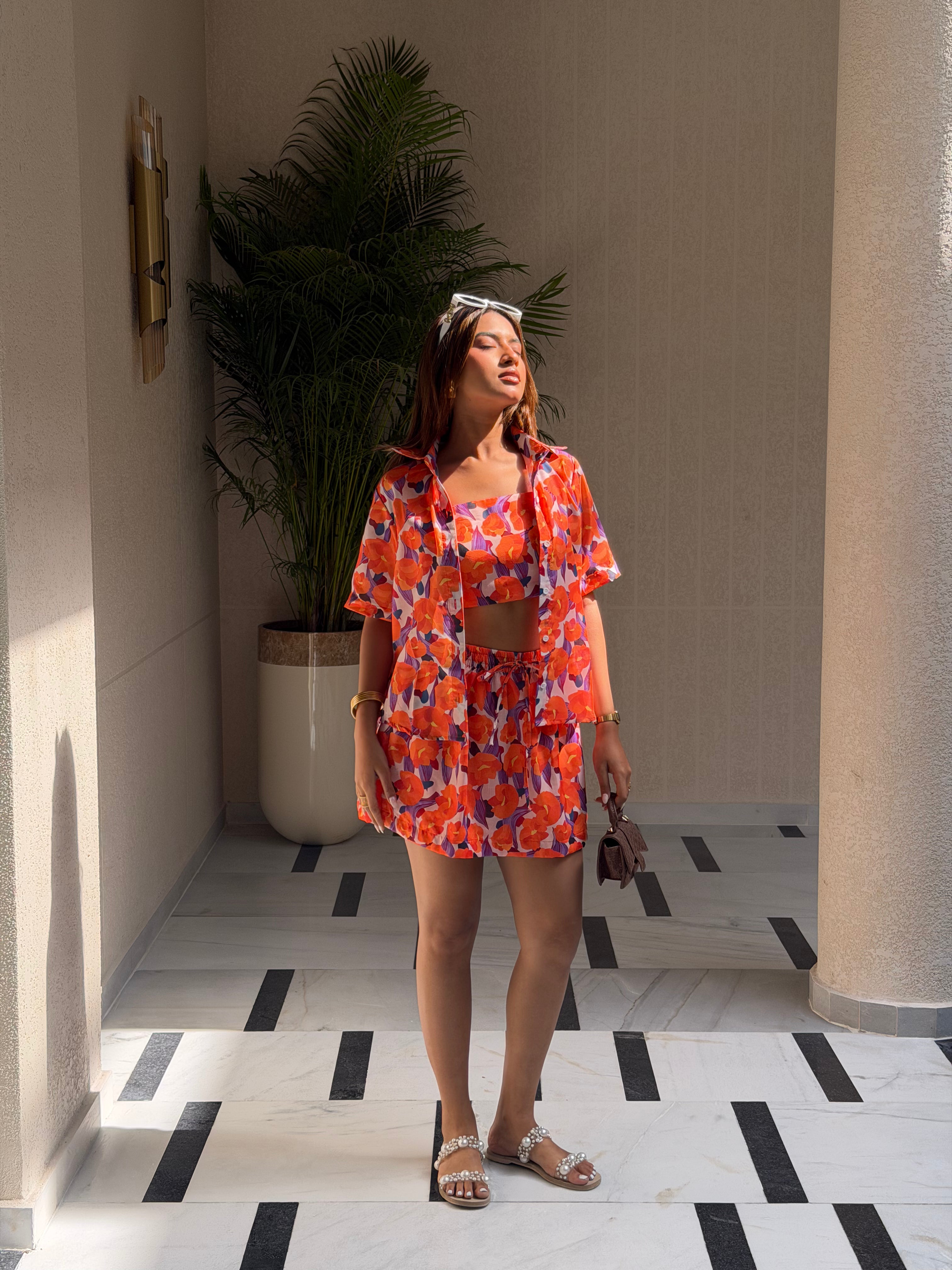 - Vacay Mode: Lounge in a co-ord set with shorts and add oversized sunnies for a resort look.