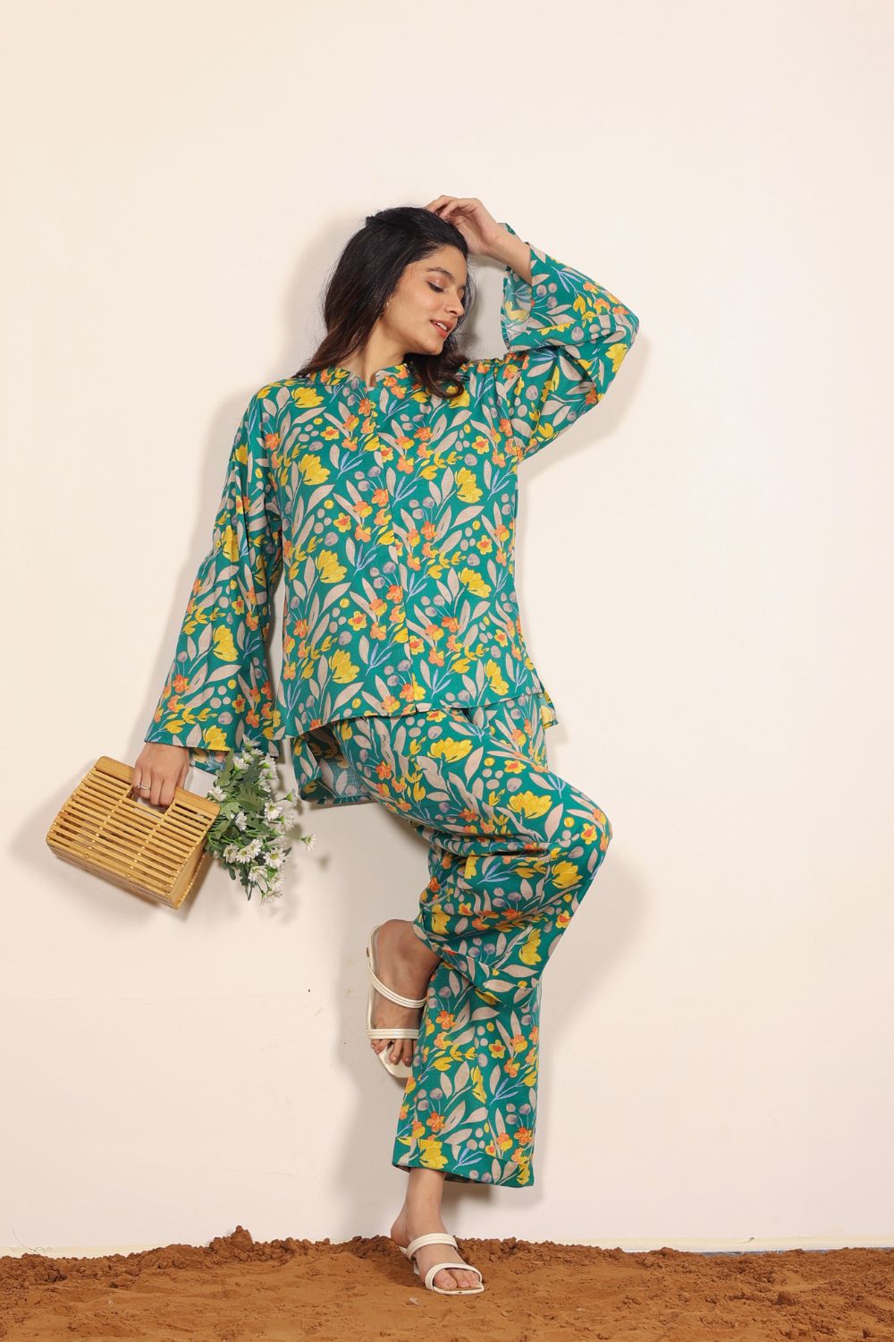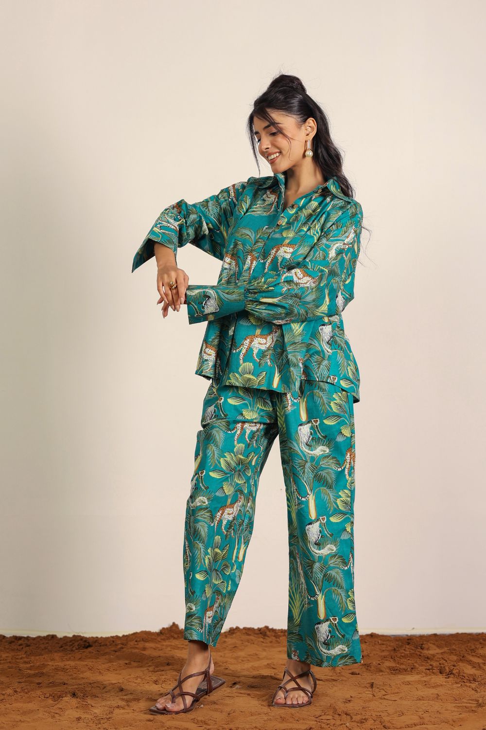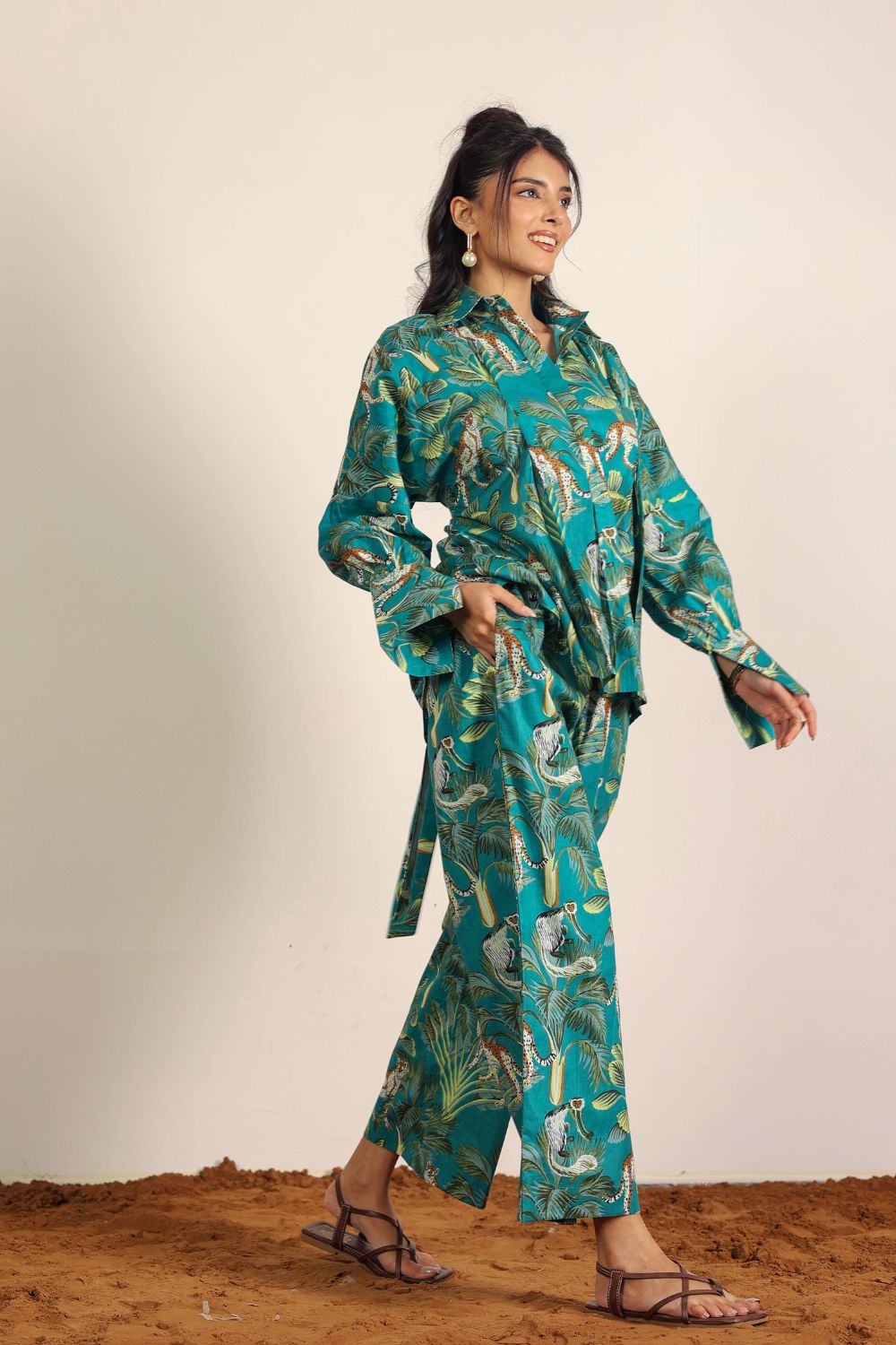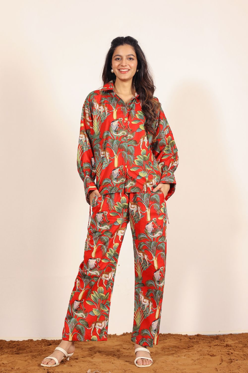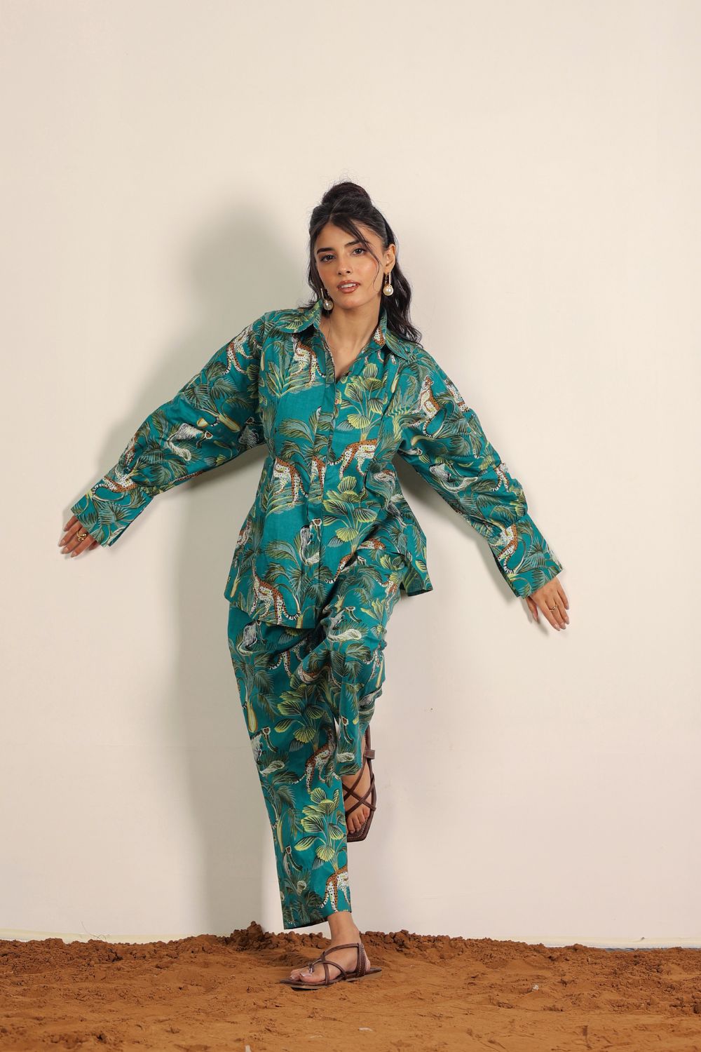 - Day Out: Pair your Printed Cotton Co-Ord Set with white sneakers and a crossbody bag.