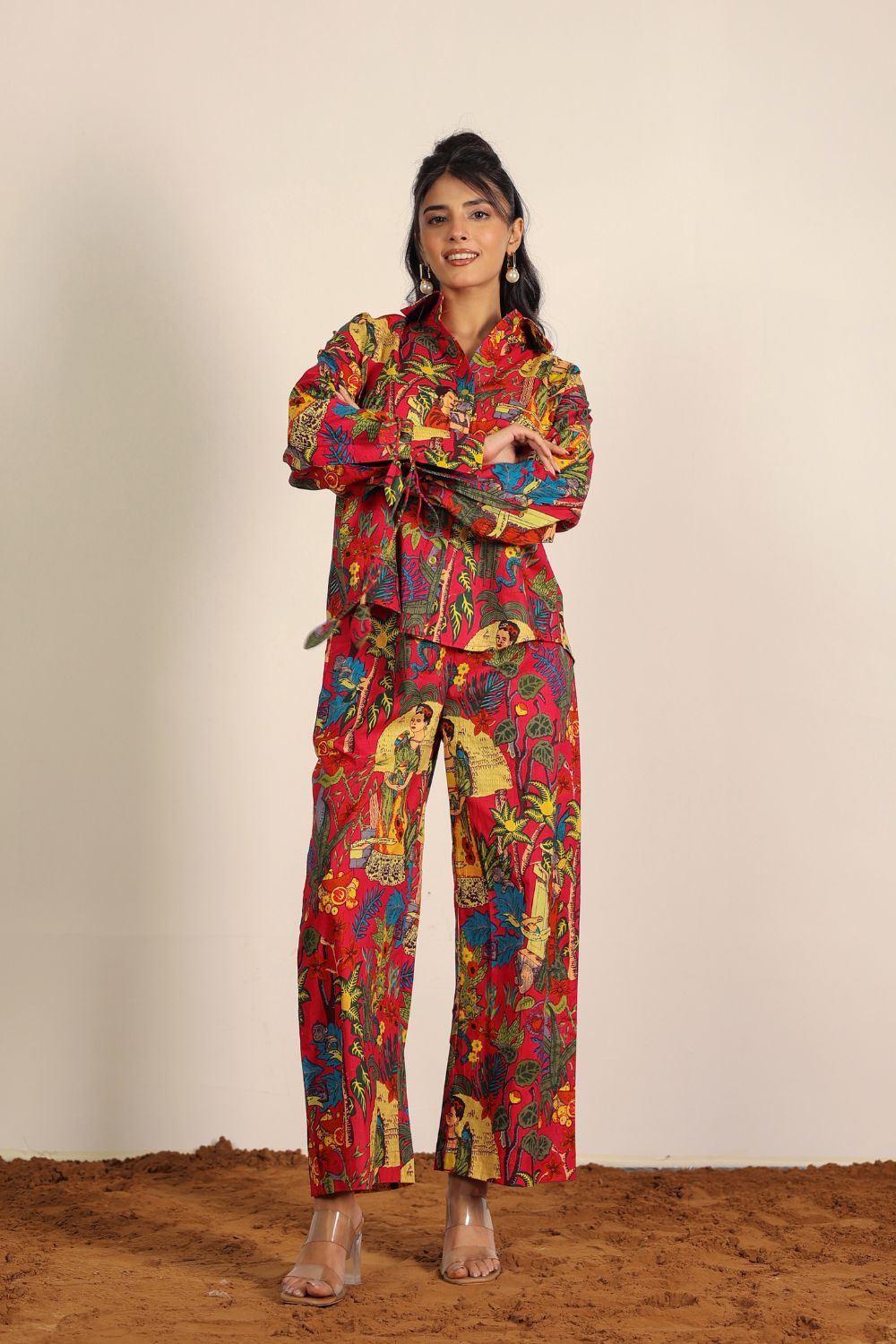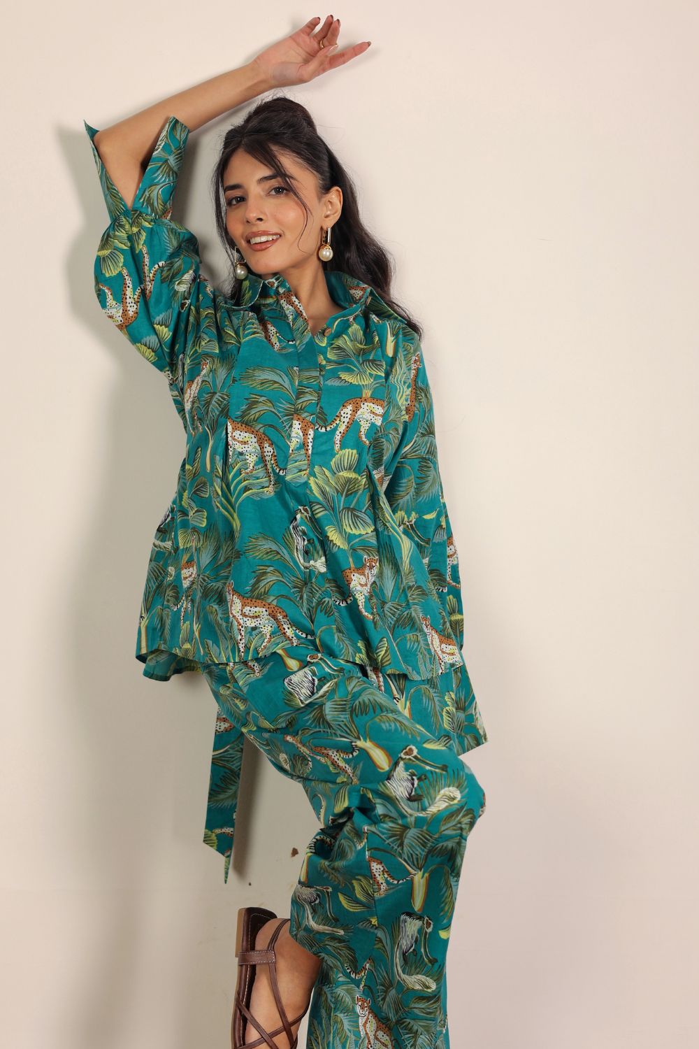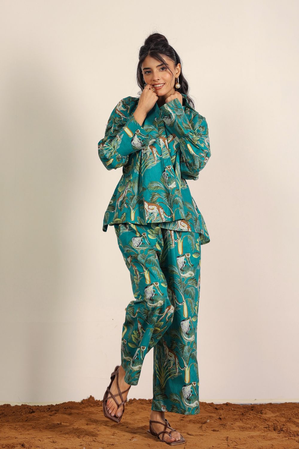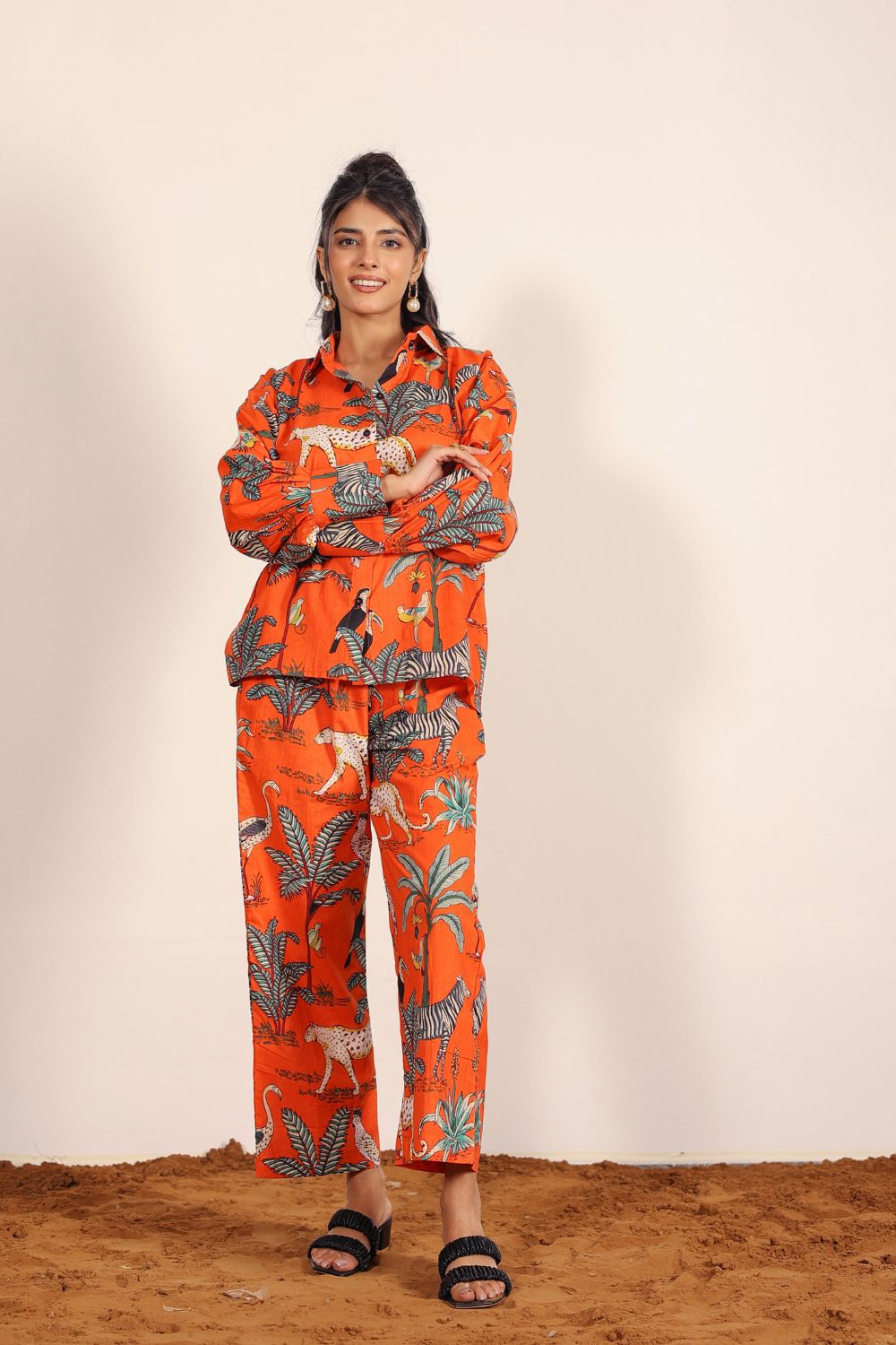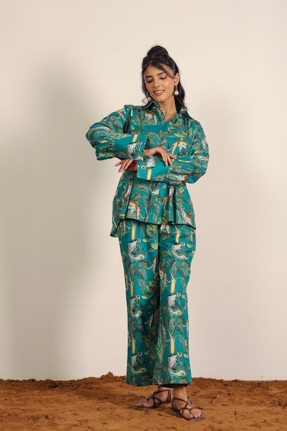 - Day Out: Pair your Printed Cotton Co-Ord Set with white sneakers and a crossbody bag.