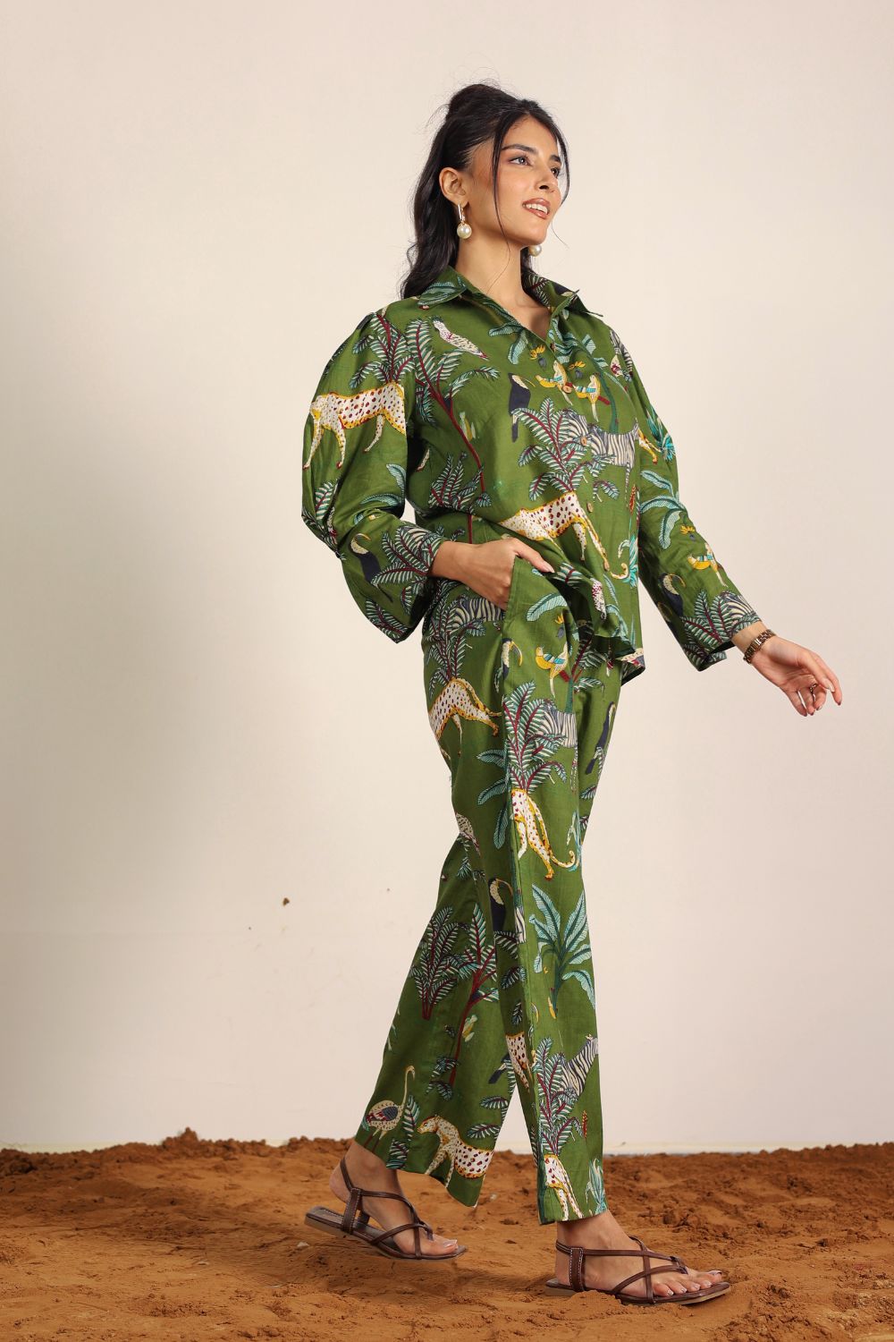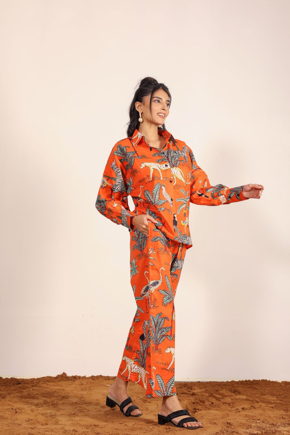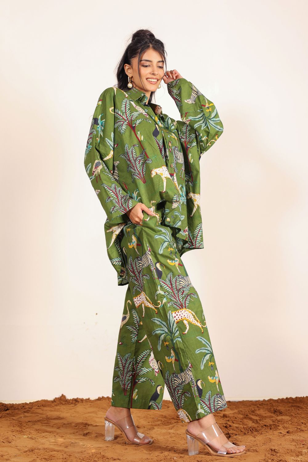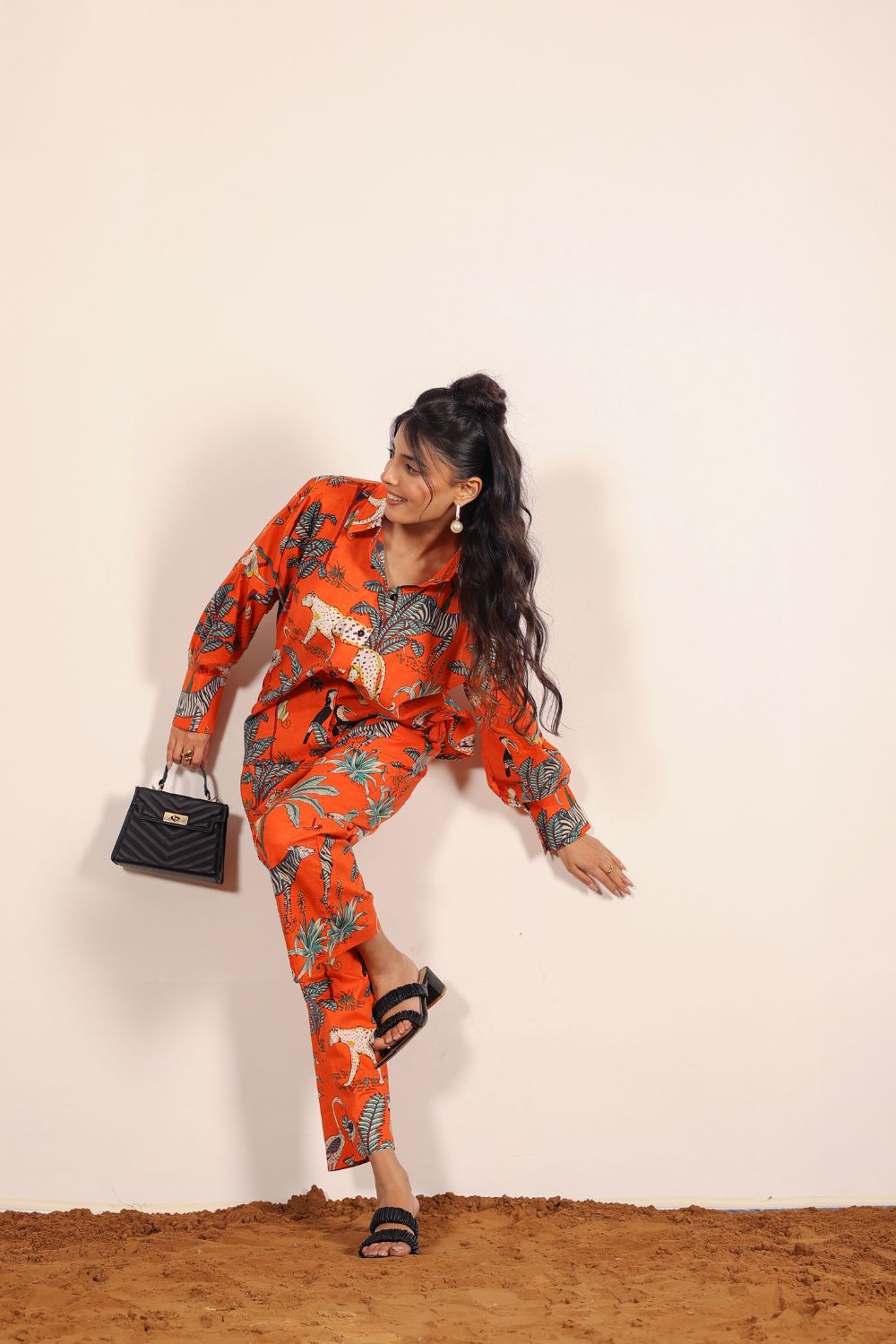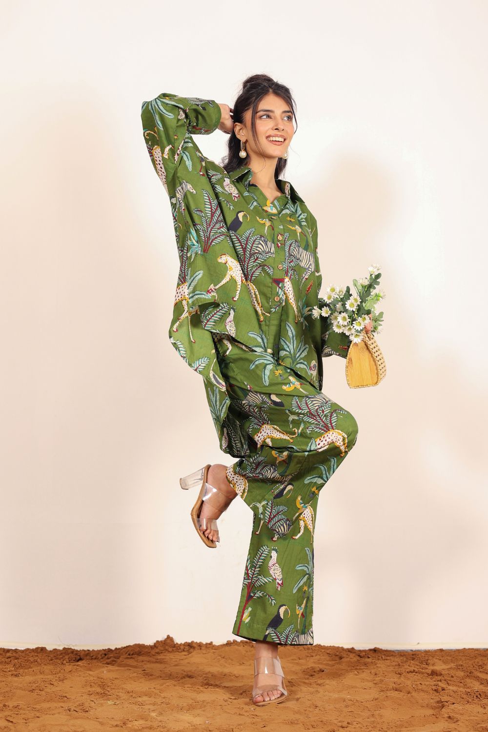 - Day Out: Pair your Printed Cotton Co-Ord Set with white sneakers and a crossbody bag.