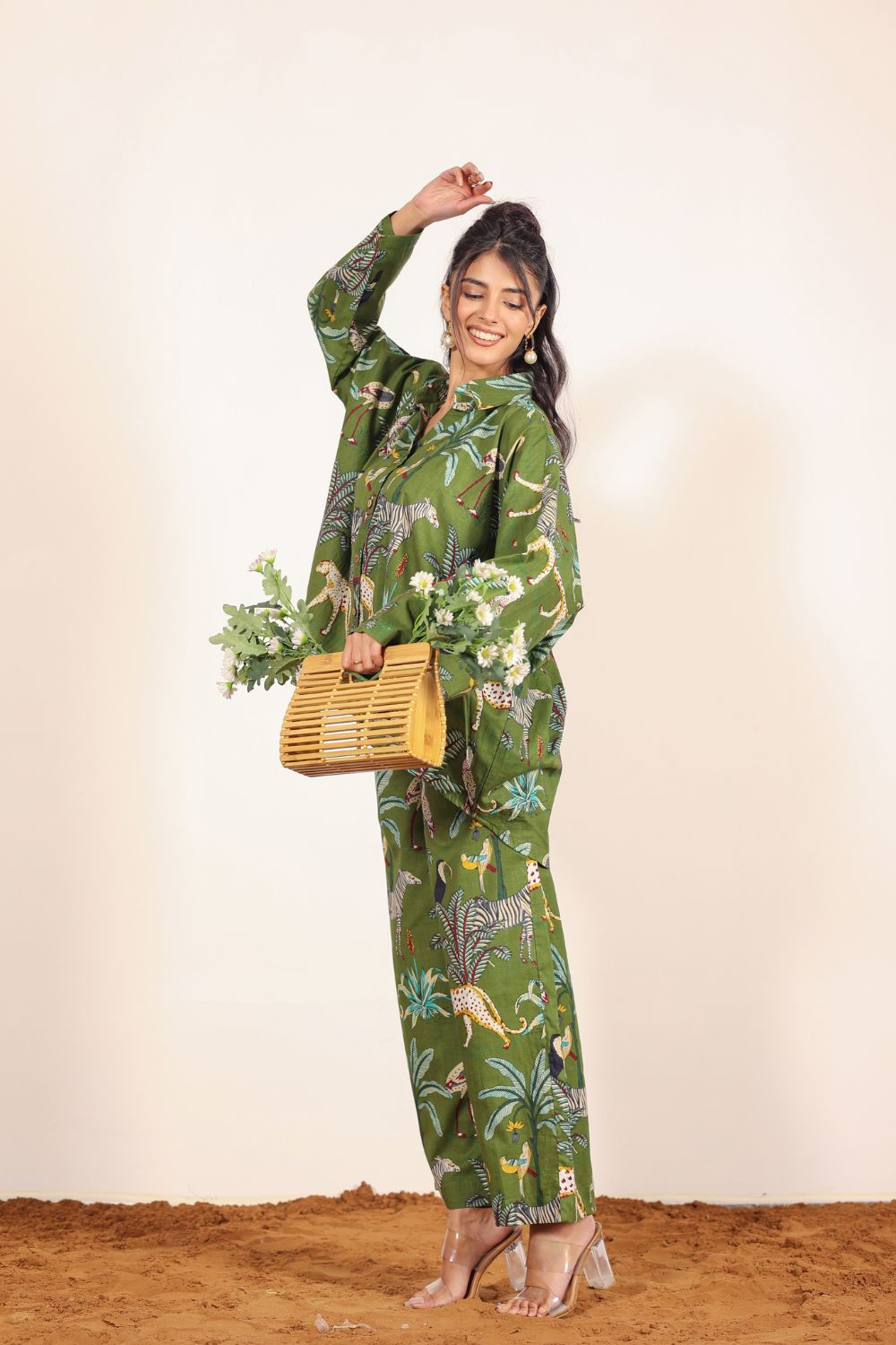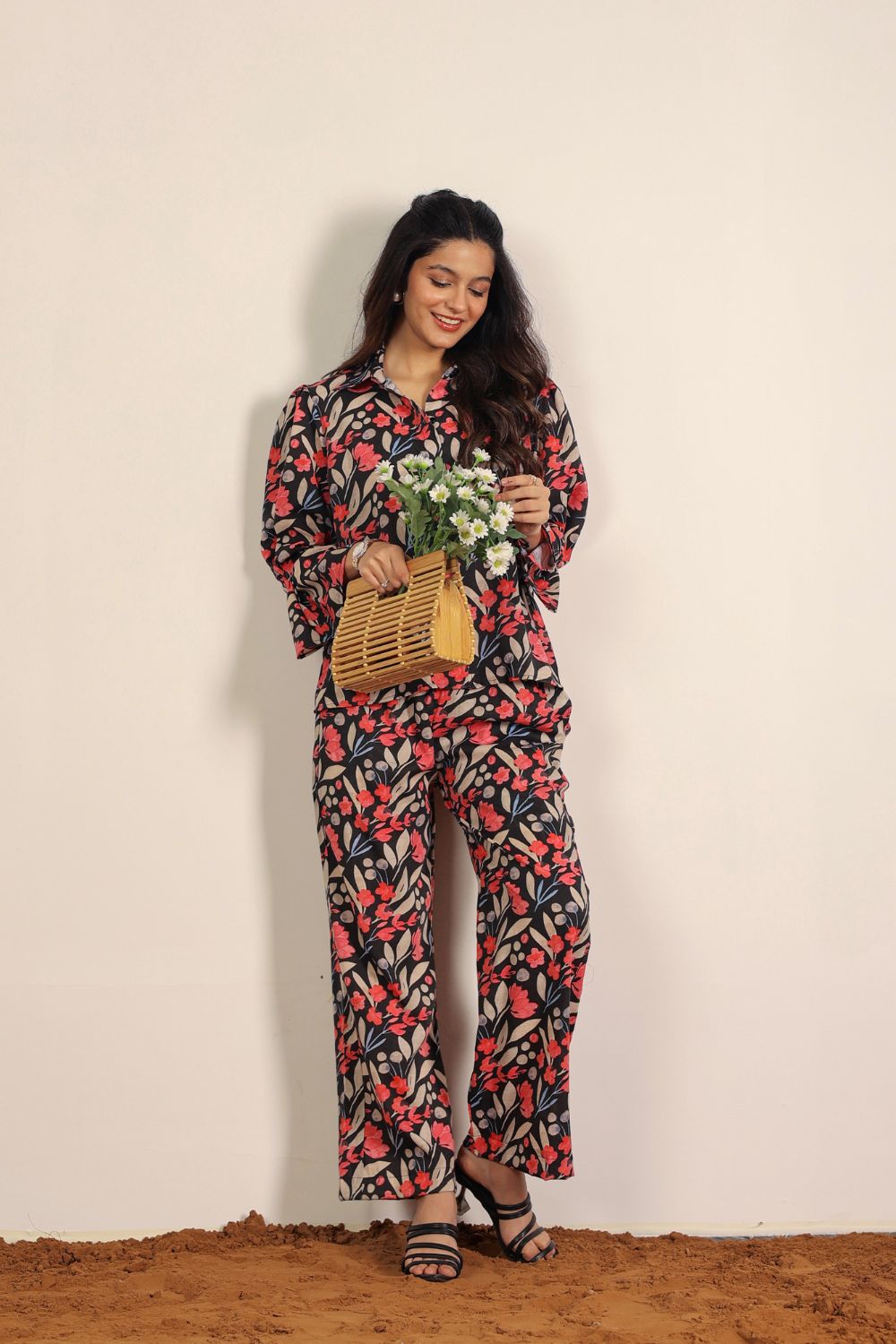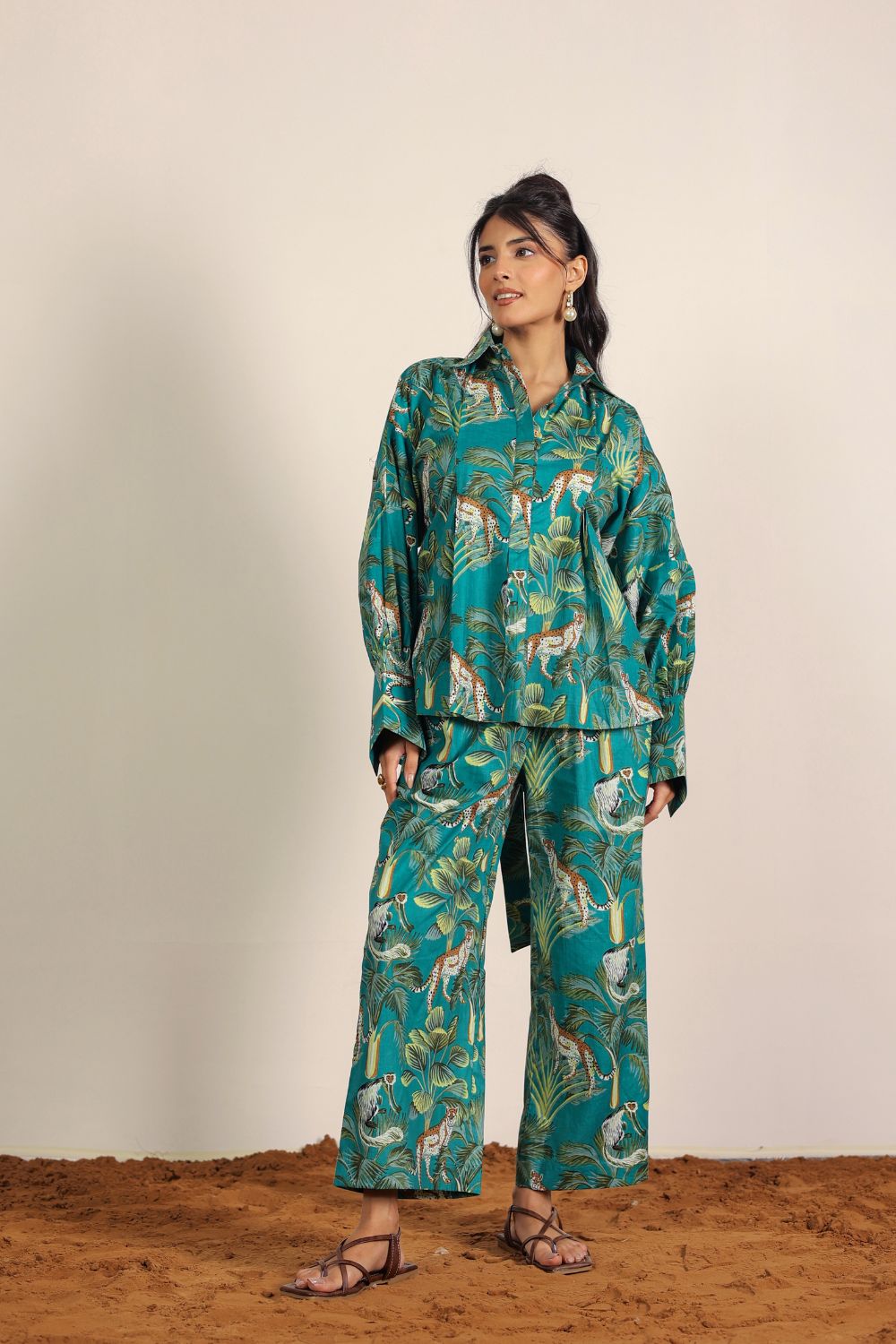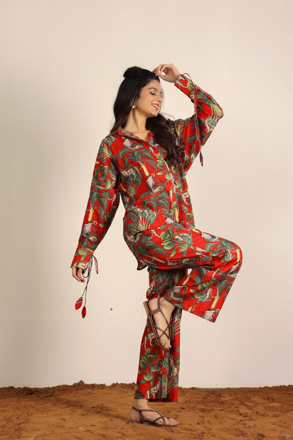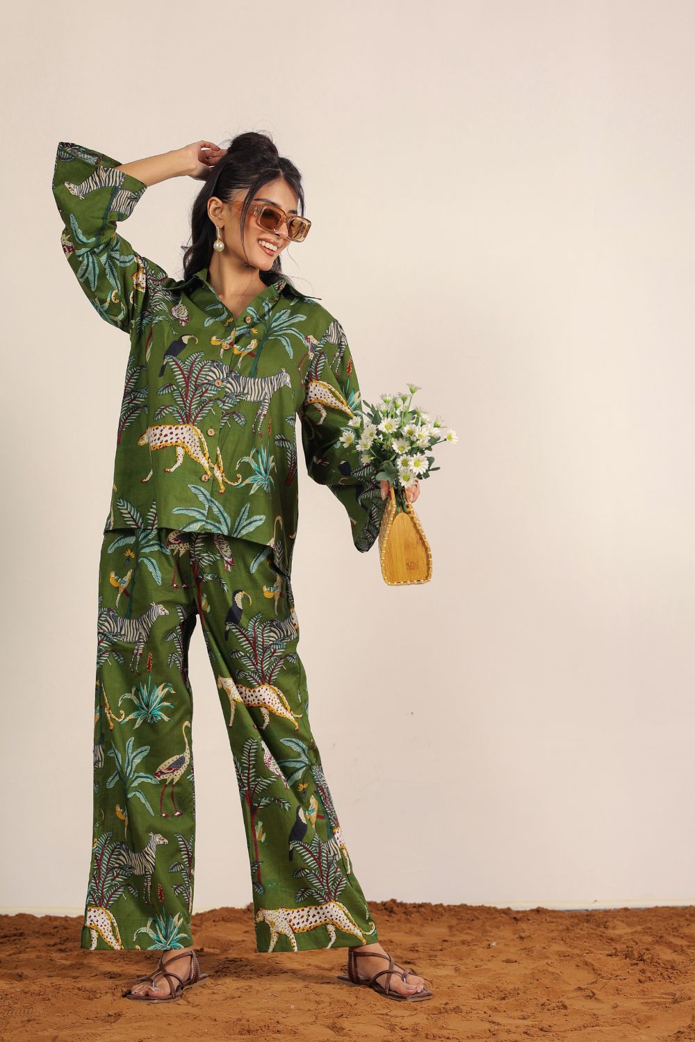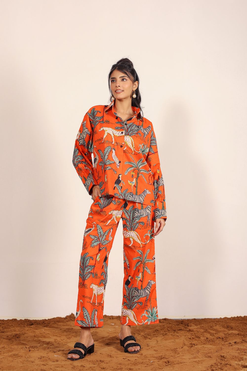 - Day Out: Pair your Printed Cotton Co-Ord Set with white sneakers and a crossbody bag.