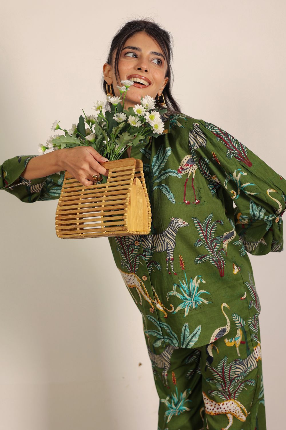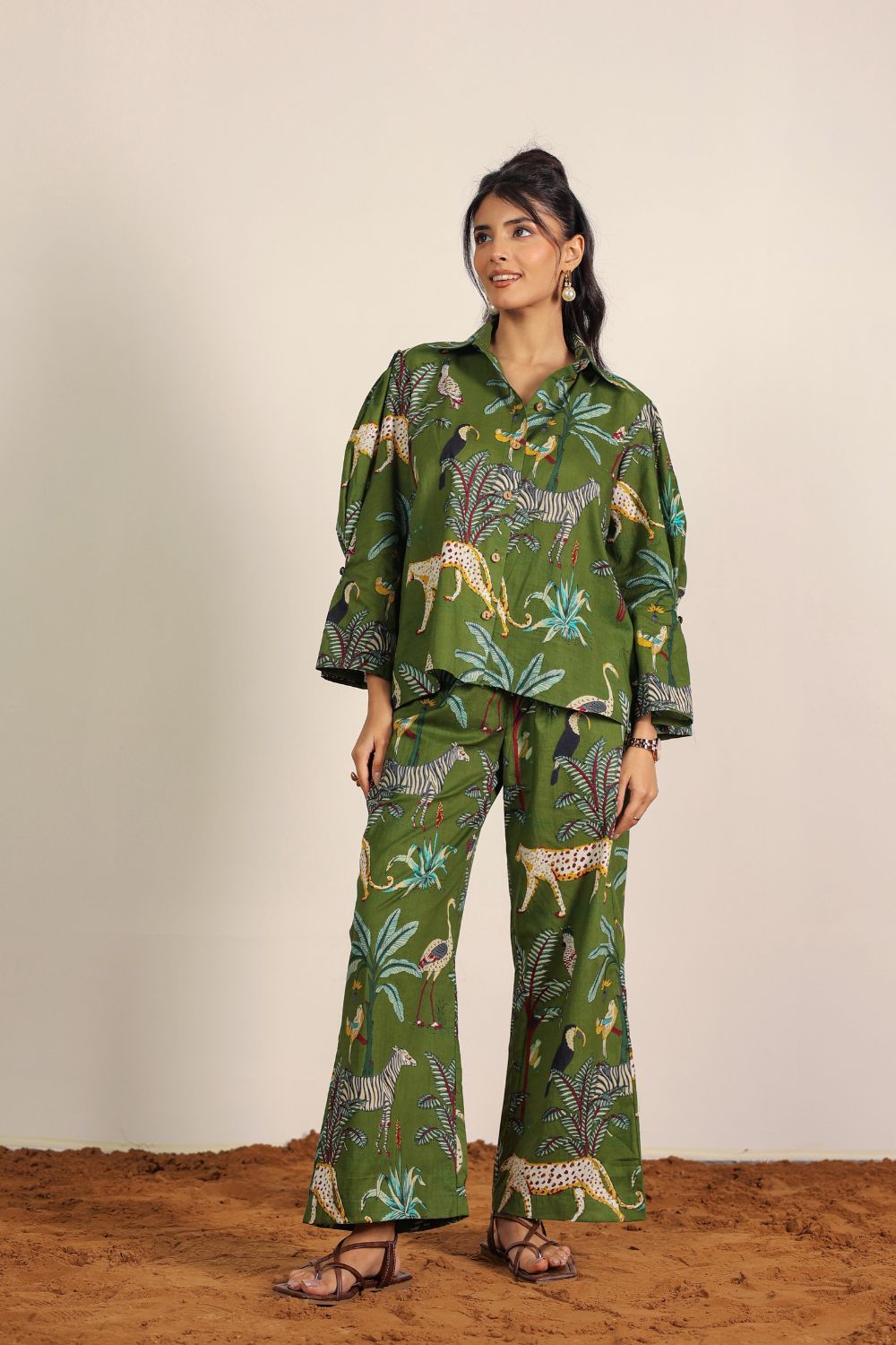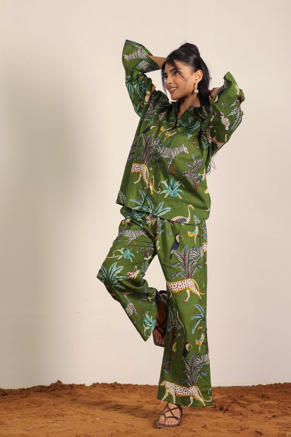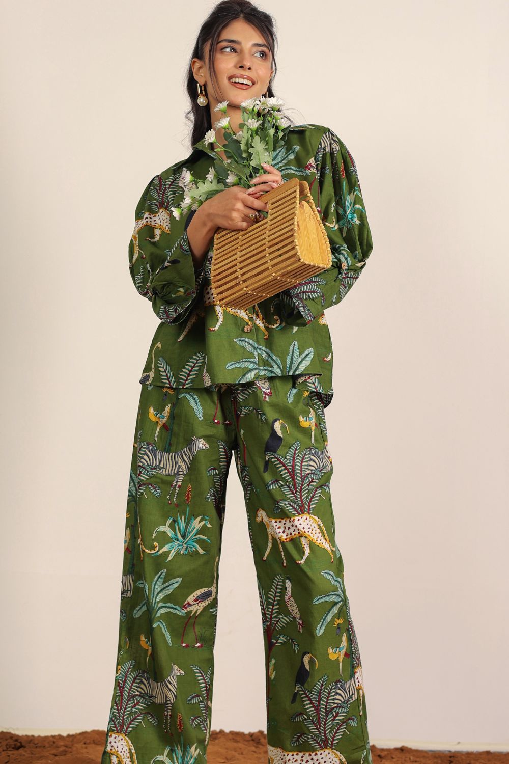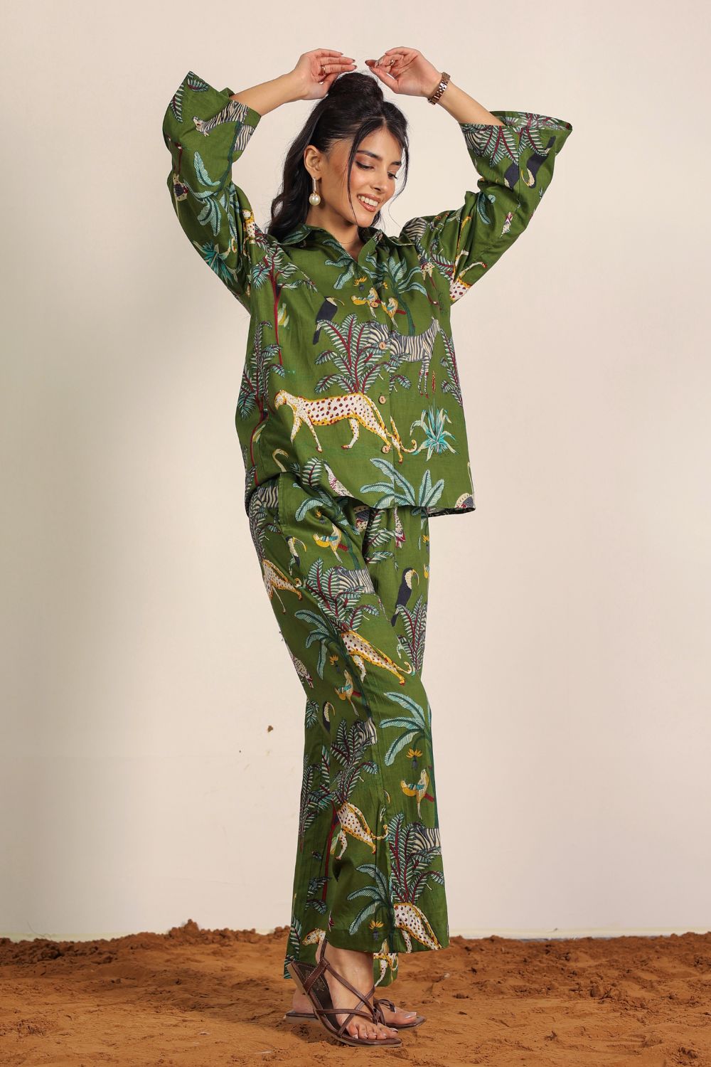 - Day Out: Pair your Printed Cotton Co-Ord Set with white sneakers and a crossbody bag.