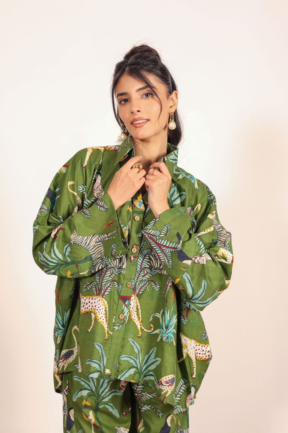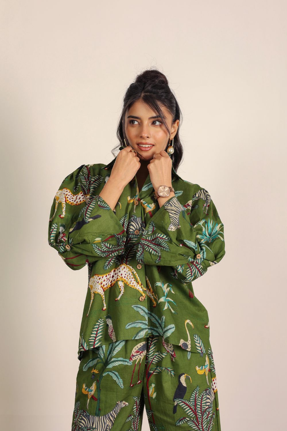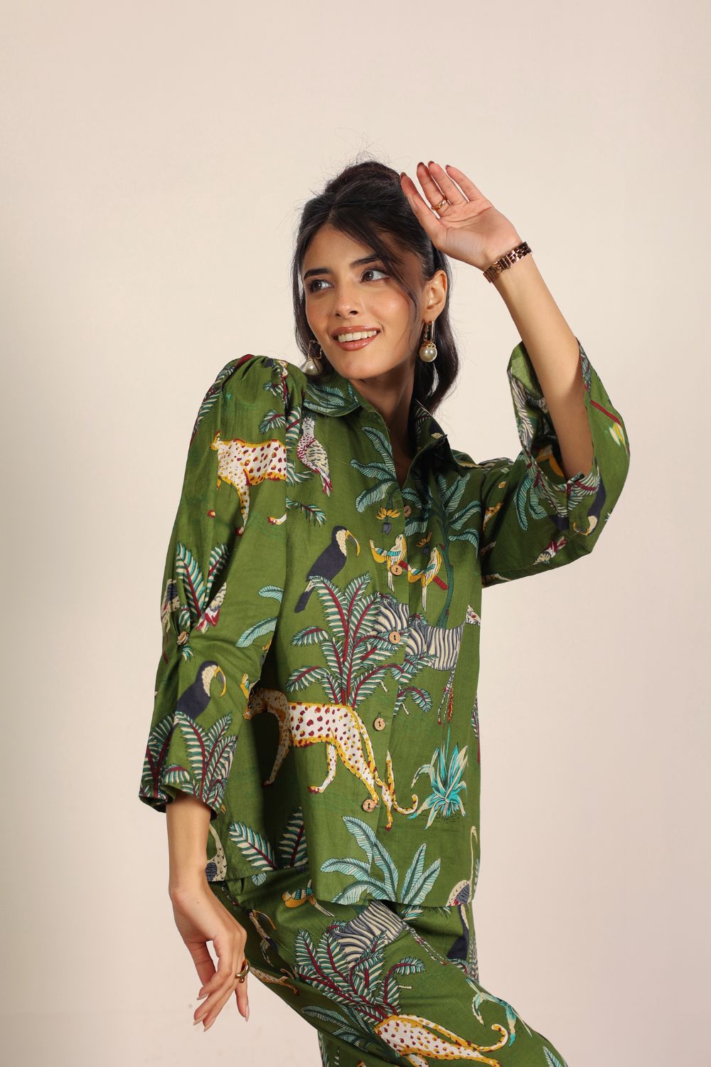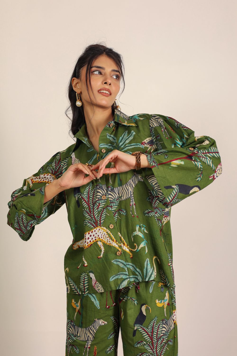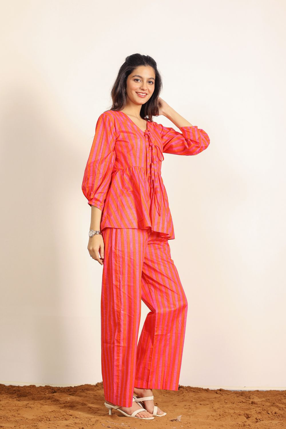- Day Out: Pair your Printed Cotton Co-Ord Set with white sneakers and a crossbody bag.