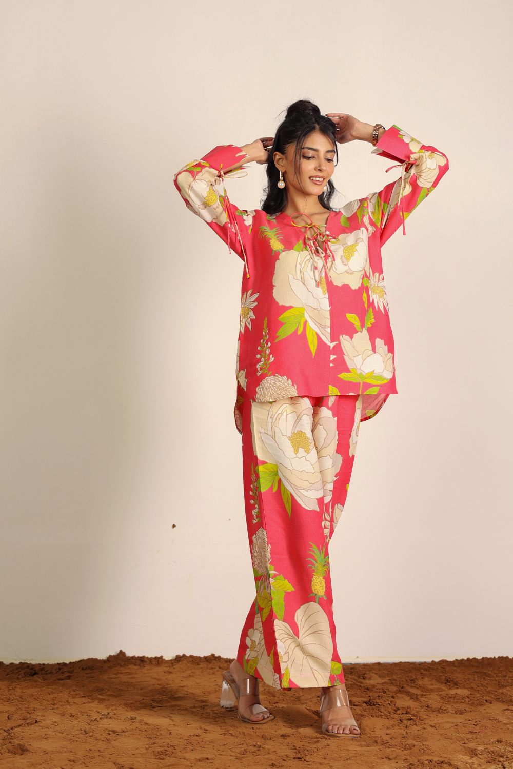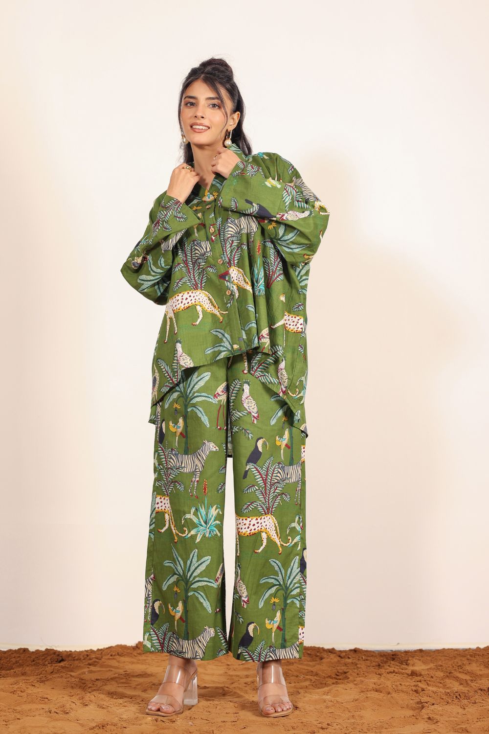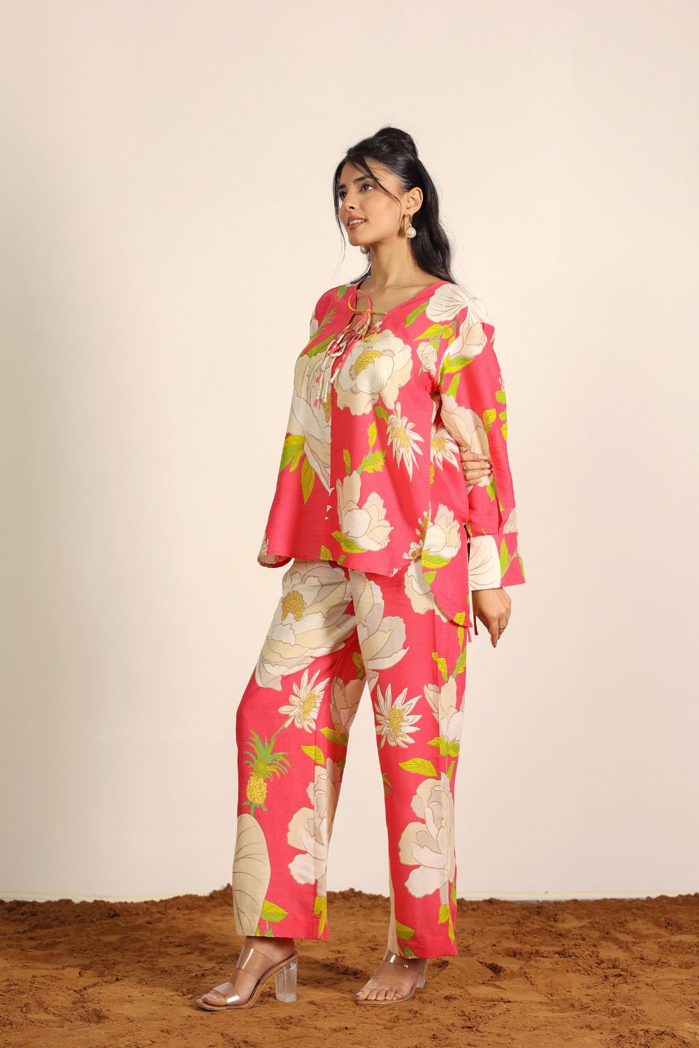 Perfect for Indian summers, our summer co-ord sets feature lightweight, airy designs in seasonal prints that radiate freshness. Think pastel tones, tropical prints, and breezy cuts that you can wear all day long — from AM to PM. Pair our Printed Co-Ord Sets with flats for a casual look, or dress them up with heels and statement jewelry for an elevated evening vibe.