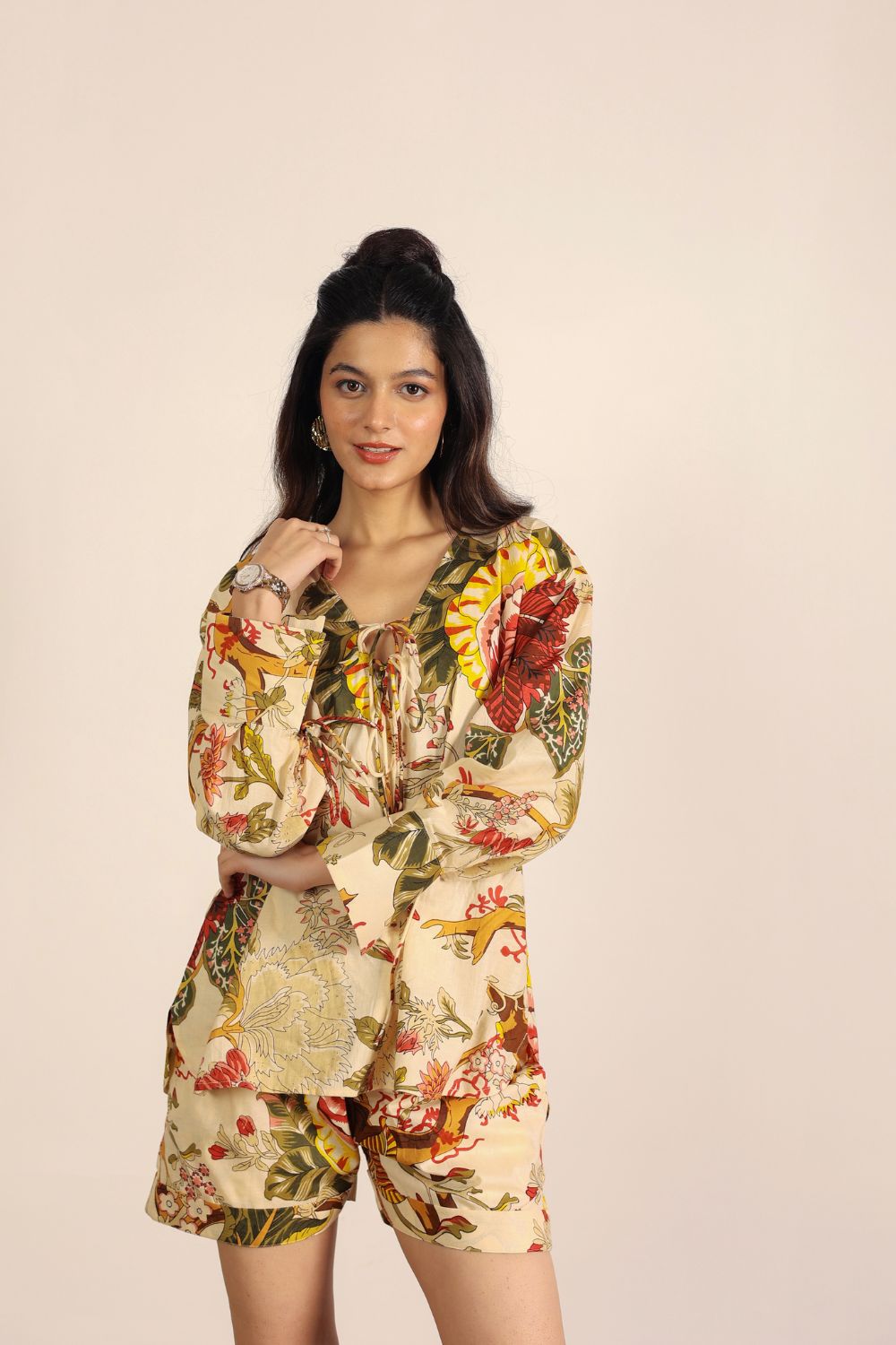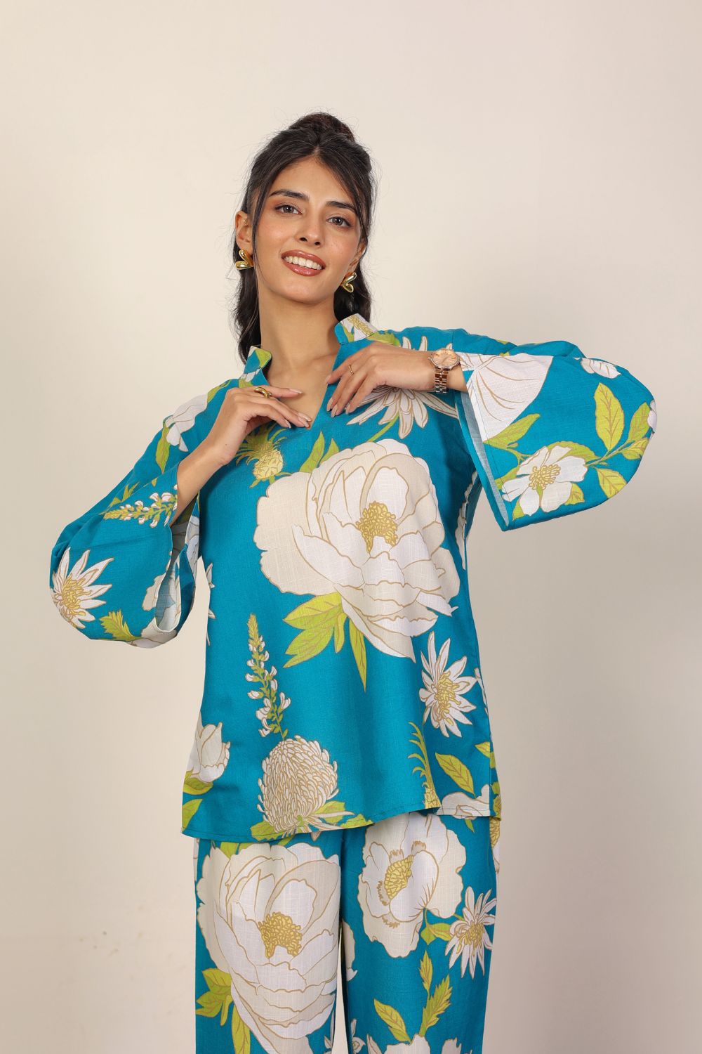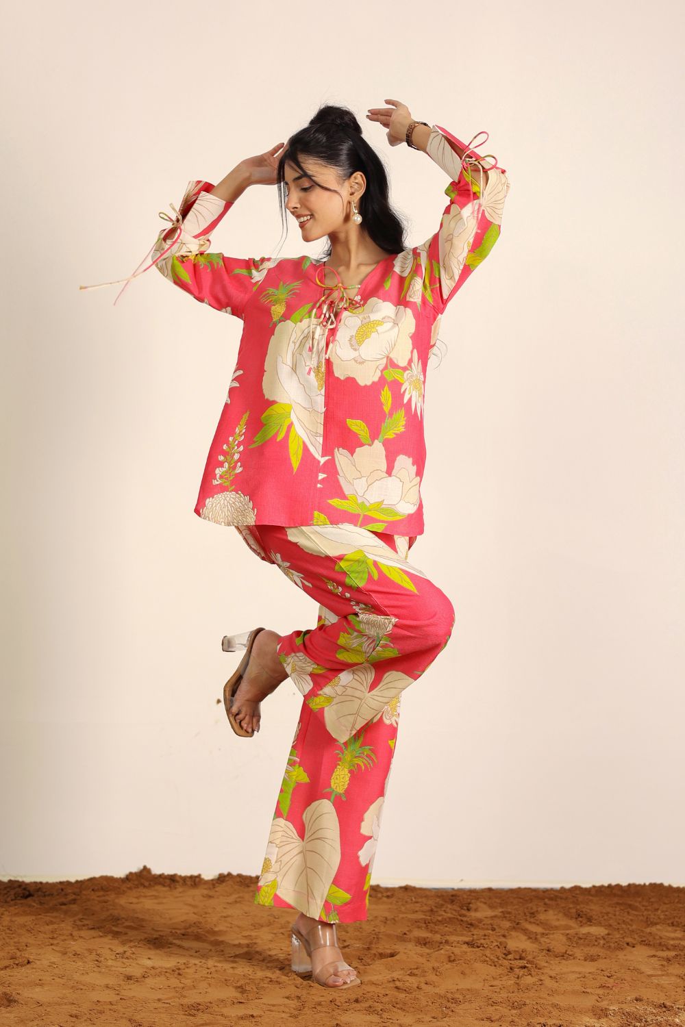 Perfect for Indian summers, our summer co-ord sets feature lightweight, airy designs in seasonal prints that radiate freshness. Think pastel tones, tropical prints, and breezy cuts that you can wear all day long — from AM to PM. Pair our Printed Co-Ord Sets with flats for a casual look, or dress them up with heels and statement jewelry for an elevated evening vibe.