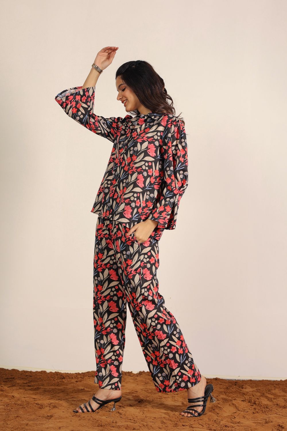 - Festive Glam: Go for our party wear co-ord sets in rich tones and metallic prints for a stylish festive outfit.
