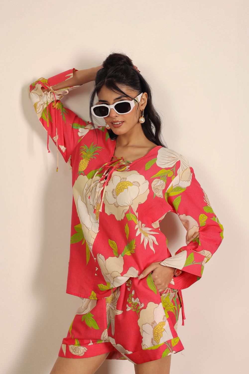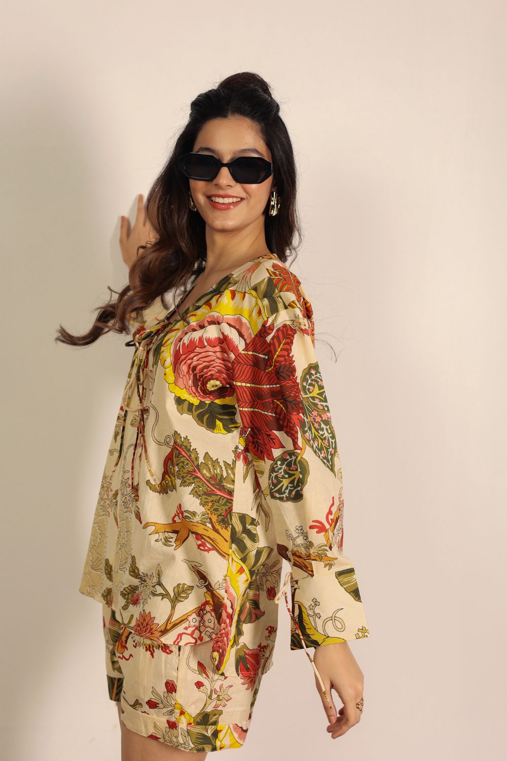 - Vacay Mode: Lounge in a co-ord set with shorts and add oversized sunnies for a resort look.