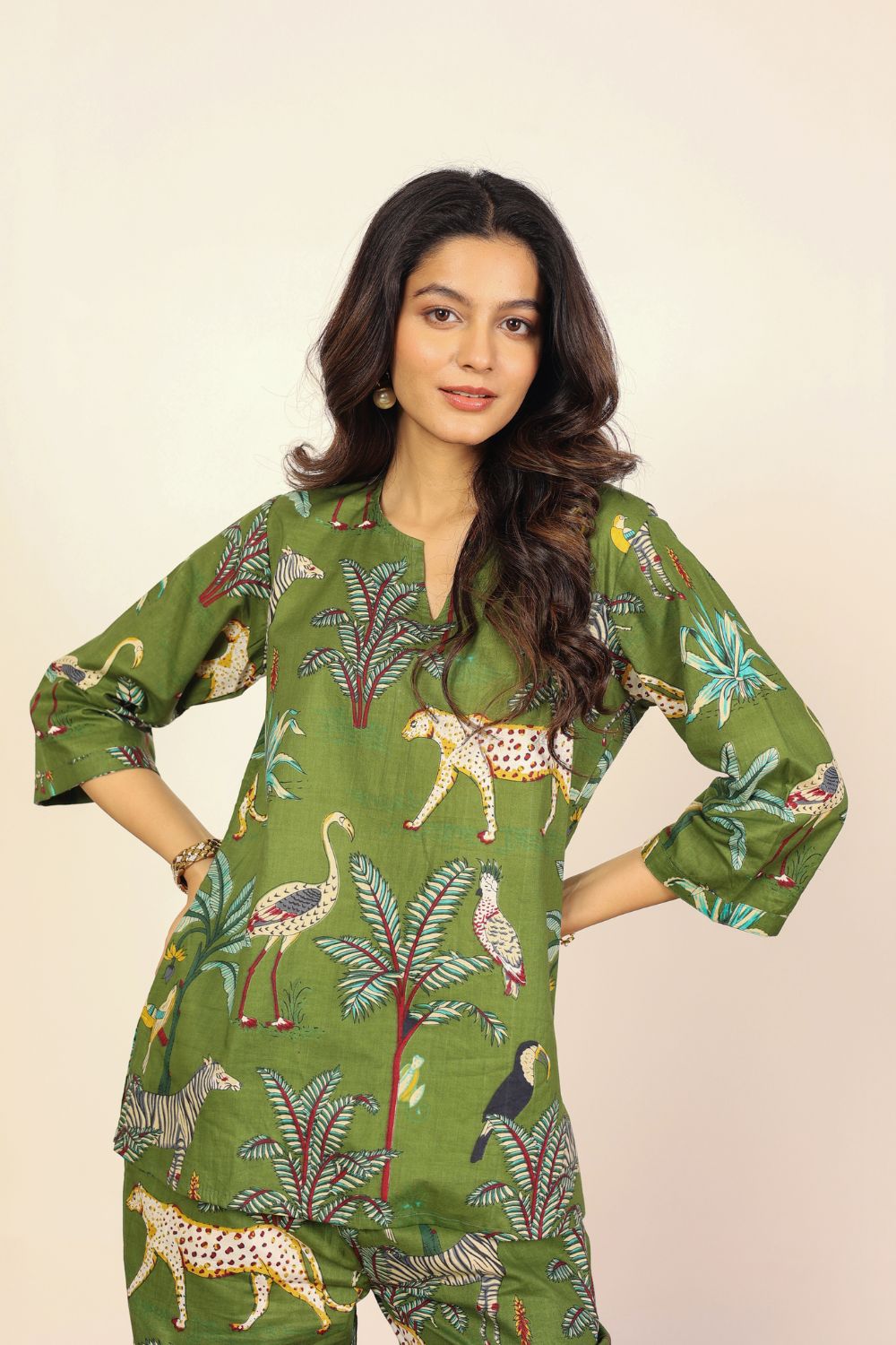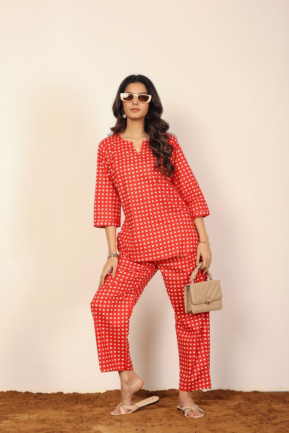 - Day Out: Pair your Printed Cotton Co-Ord Set with white sneakers and a crossbody bag.