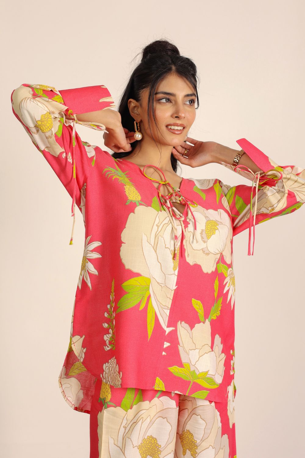 • Boho Chic: Style floral shirts with wide-leg pants and woven accessories for a relaxed yet stylish outfit.