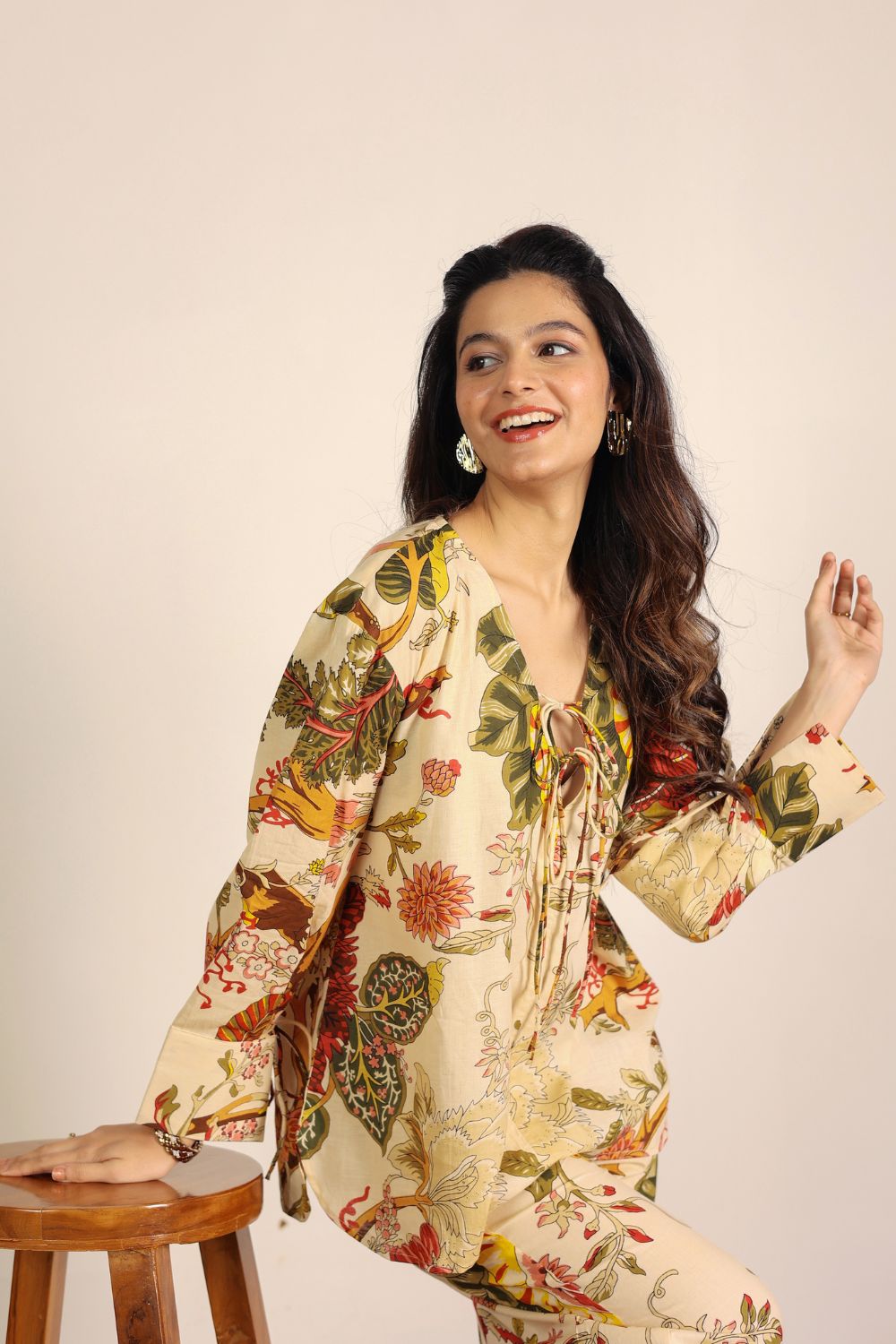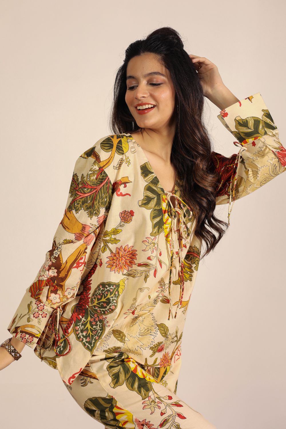 Explore our exclusive collection of shirts for women at Kaori by Shreya. Whether you're shopping for a casual brunch, a formal meeting, or an impromptu getaway, our selection of cotton crop shirts, printed shirts, party wear shirts, and more promises to meet your fashion goals with elegance.