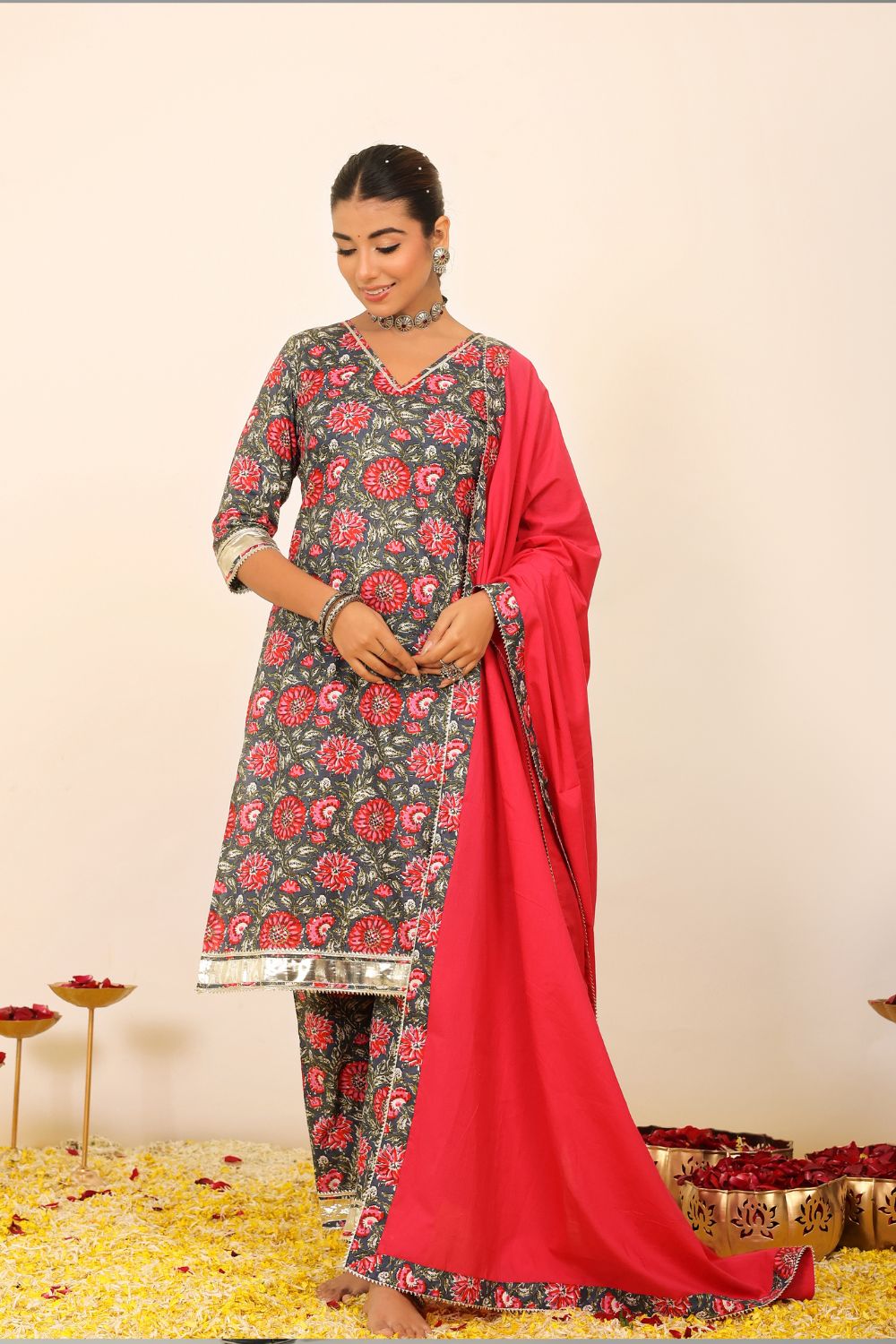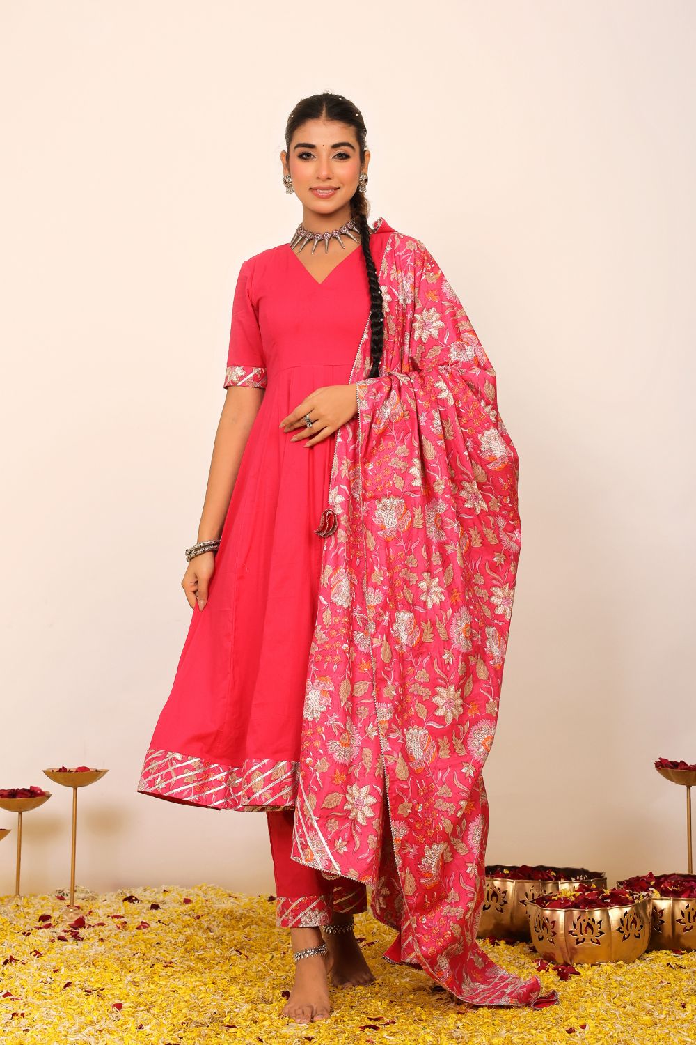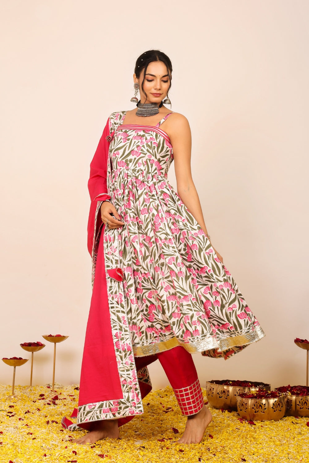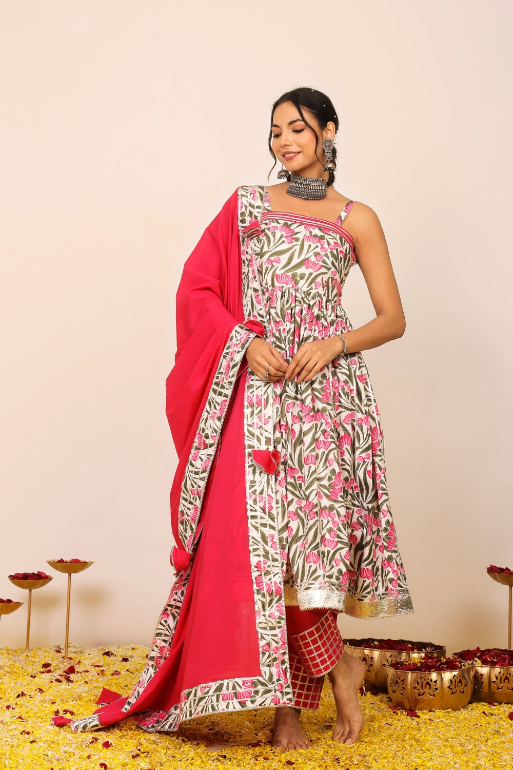 Our suit sets are more than just traditional attire—they are modern expressions of feminine strength, cultural heritage, and effortless style. The collection ranges from casual suit sets ideal for everyday sophistication, to beautifully flared anarkali suit sets that make a statement at any festive event. From minimalist silhouettes to vibrant designs, each piece allows you to dress with intention and comfort.