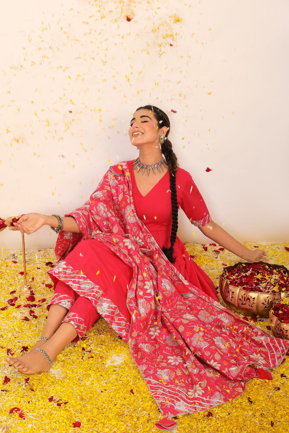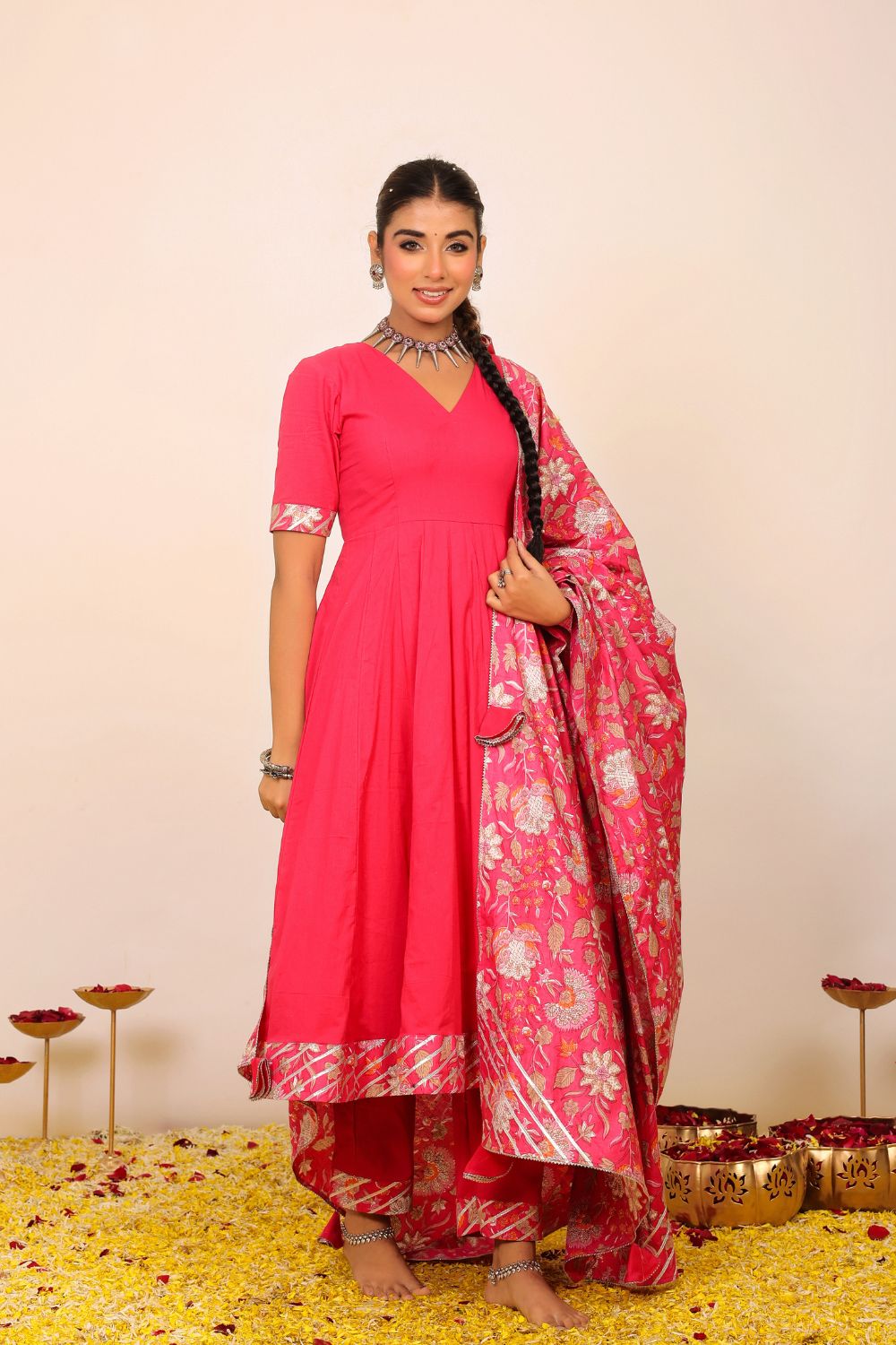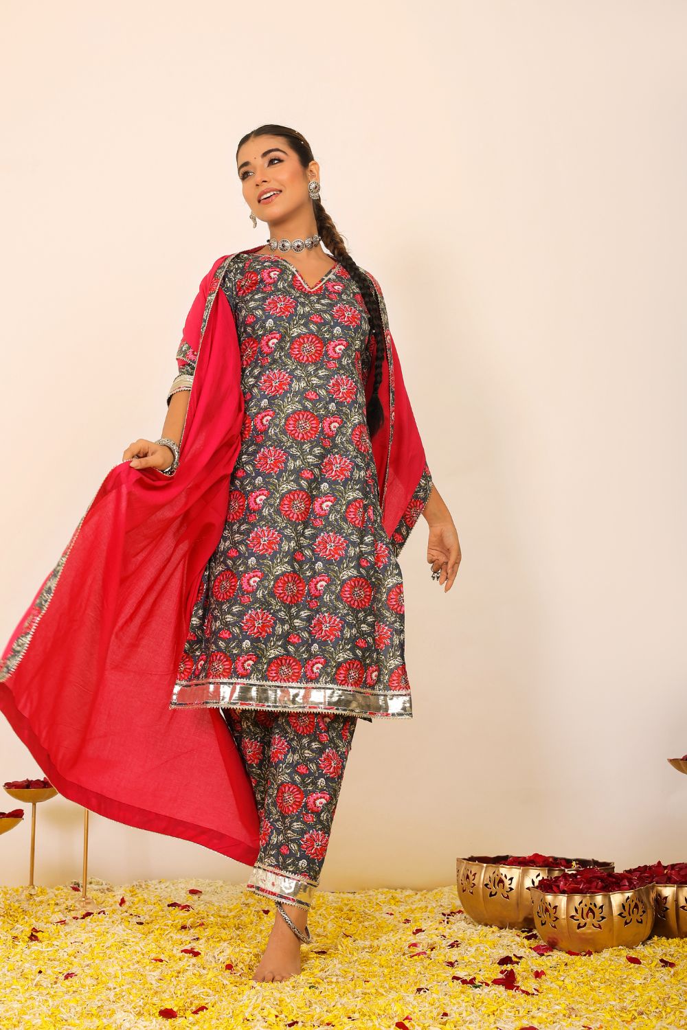 Our suit sets are more than just traditional attire—they are modern expressions of feminine strength, cultural heritage, and effortless style. The collection ranges from casual suit sets ideal for everyday sophistication, to beautifully flared anarkali suit sets that make a statement at any festive event. From minimalist silhouettes to vibrant designs, each piece allows you to dress with intention and comfort.
