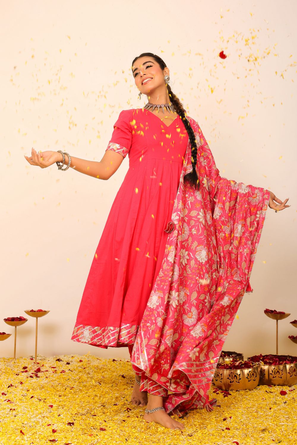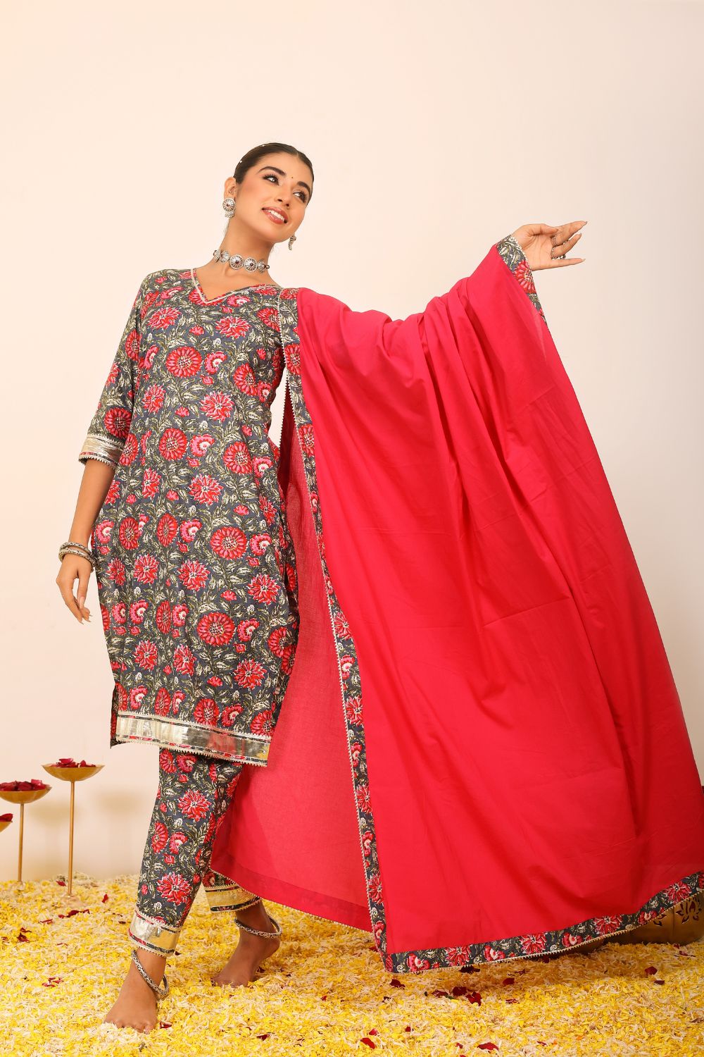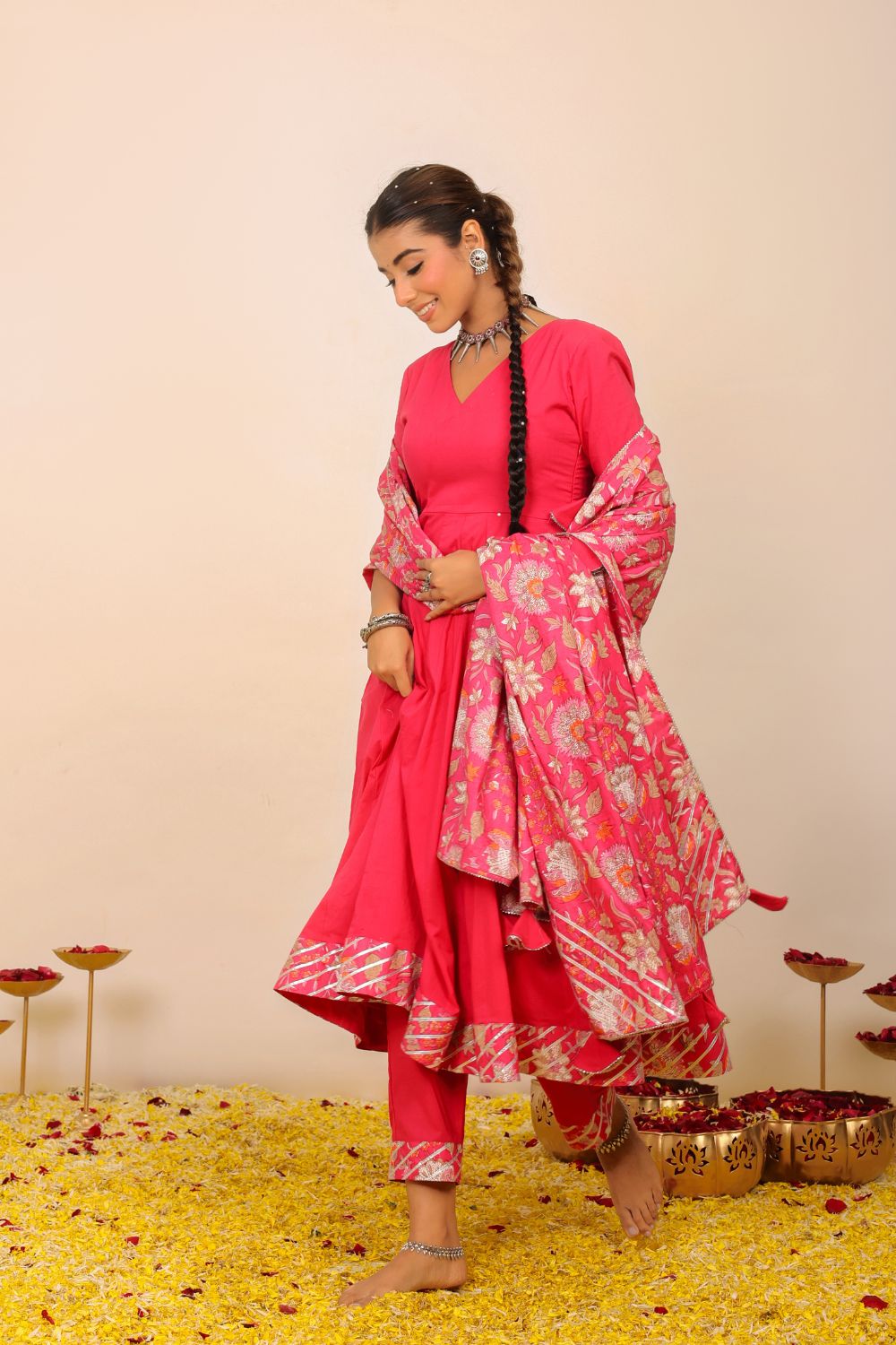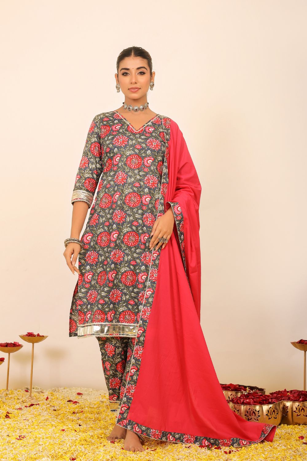 Our suit sets are more than just traditional attire—they are modern expressions of feminine strength, cultural heritage, and effortless style. The collection ranges from casual suit sets ideal for everyday sophistication, to beautifully flared anarkali suit sets that make a statement at any festive event. From minimalist silhouettes to vibrant designs, each piece allows you to dress with intention and comfort.