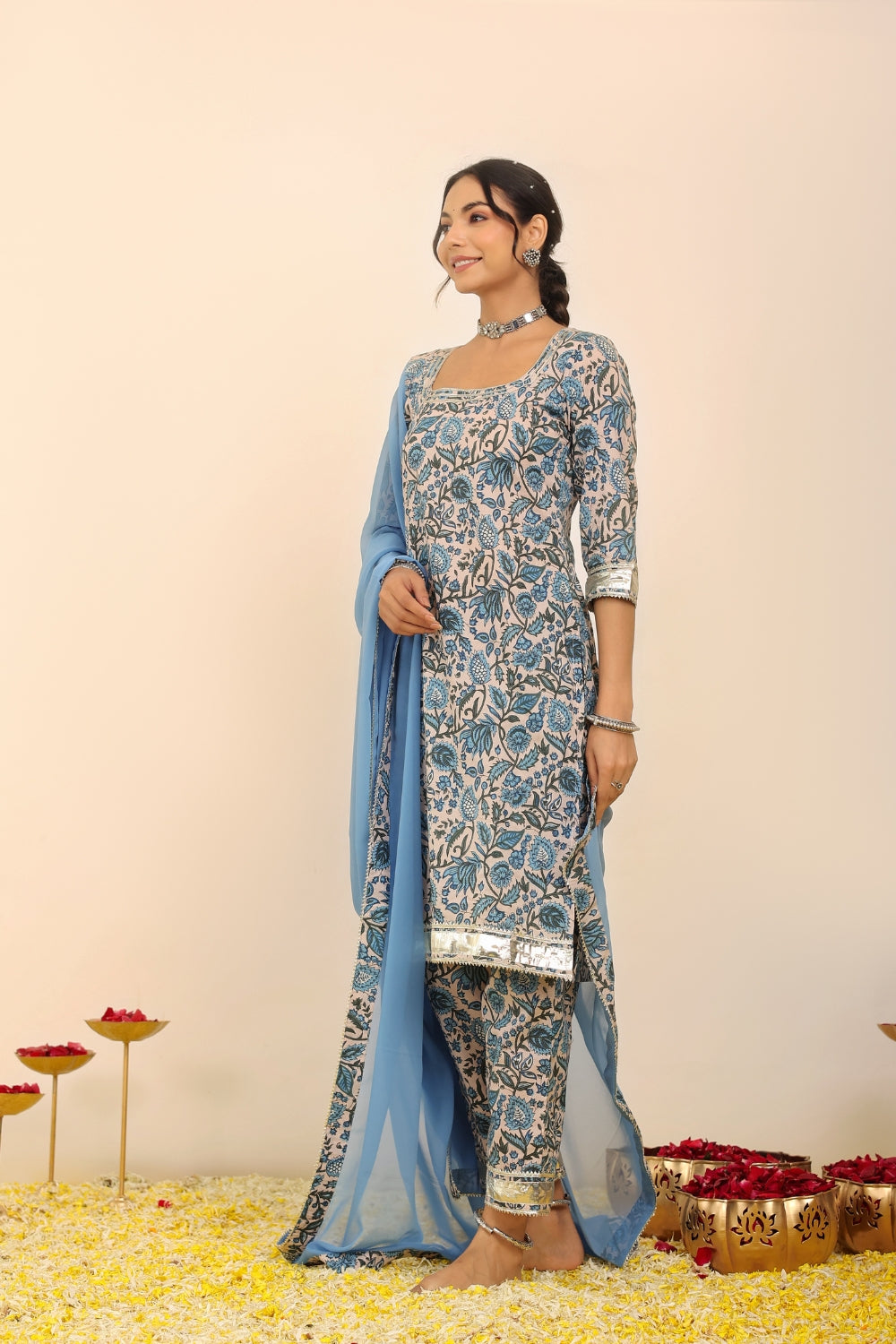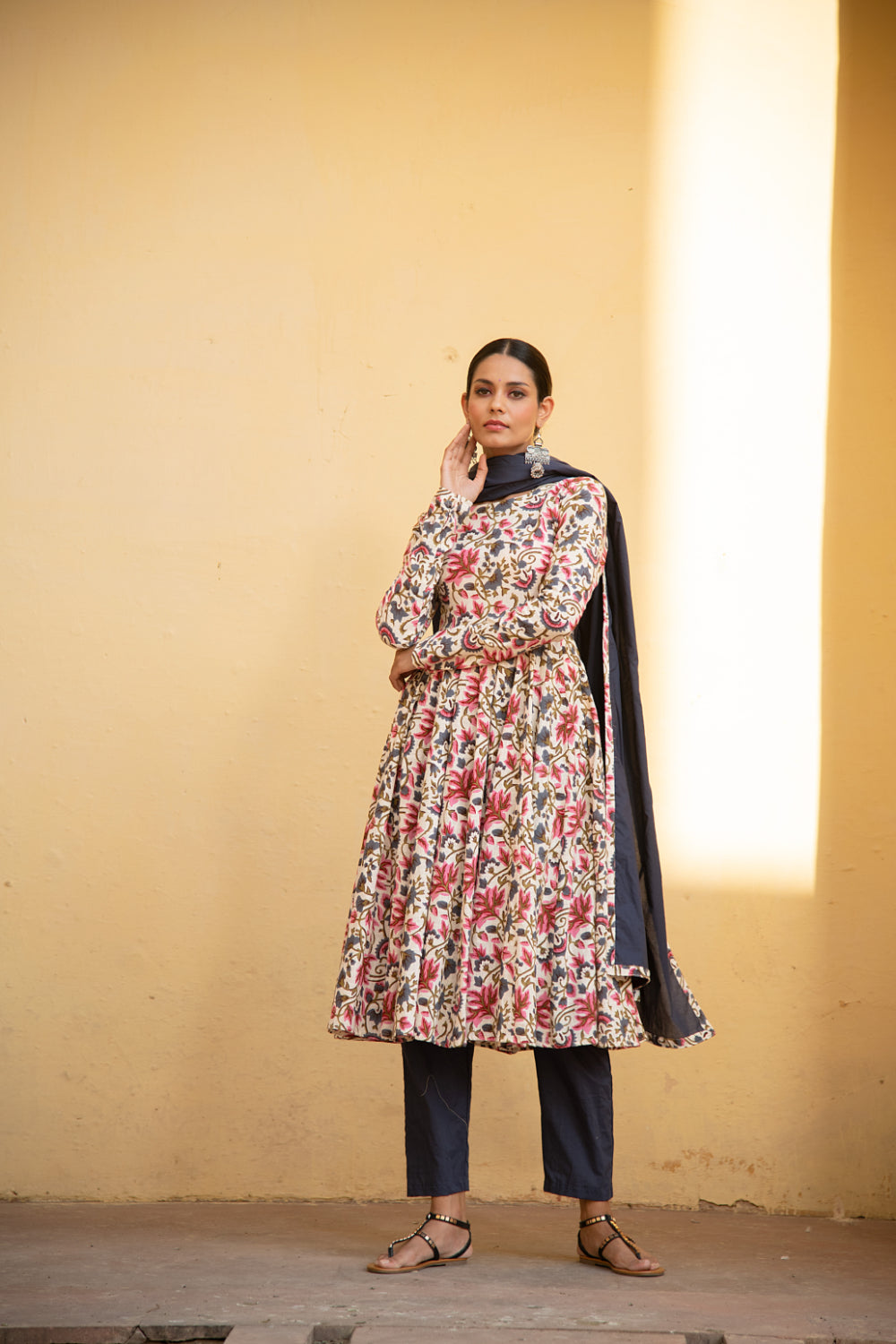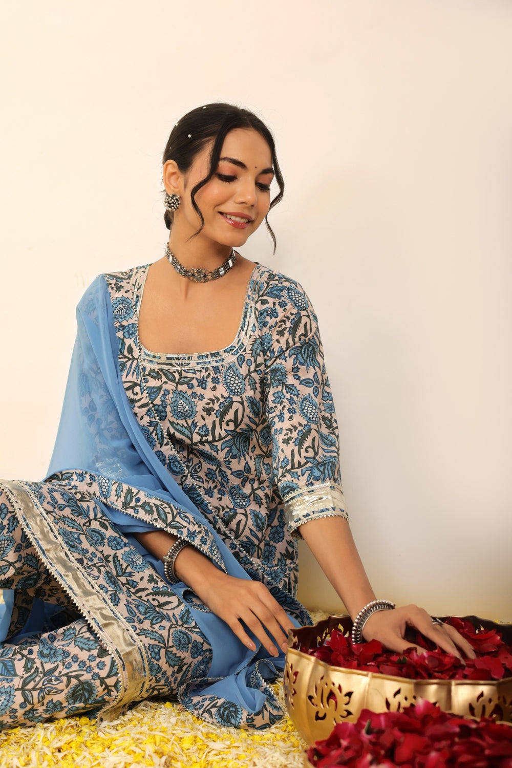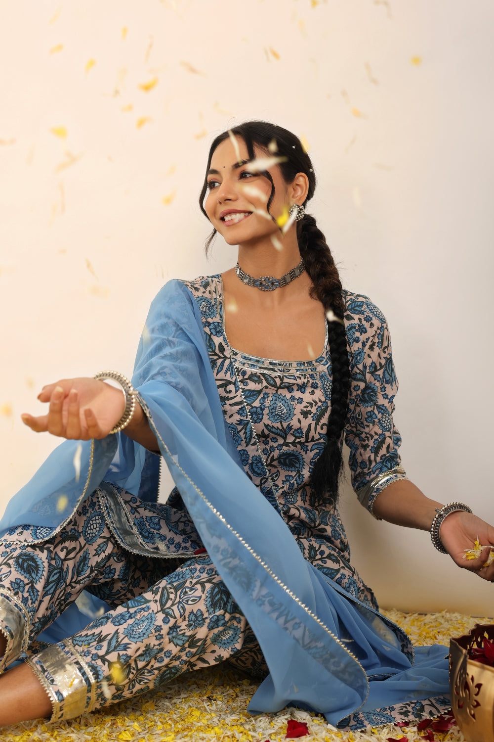 Pair a pastel-hued printed kurta set with silver jhumkas and flats for a daytime outing or opt for jewel-toned wedding suit sets adorned with subtle embellishments for festive occasions. With Kaori By Shreya, elegance is always effortless.
