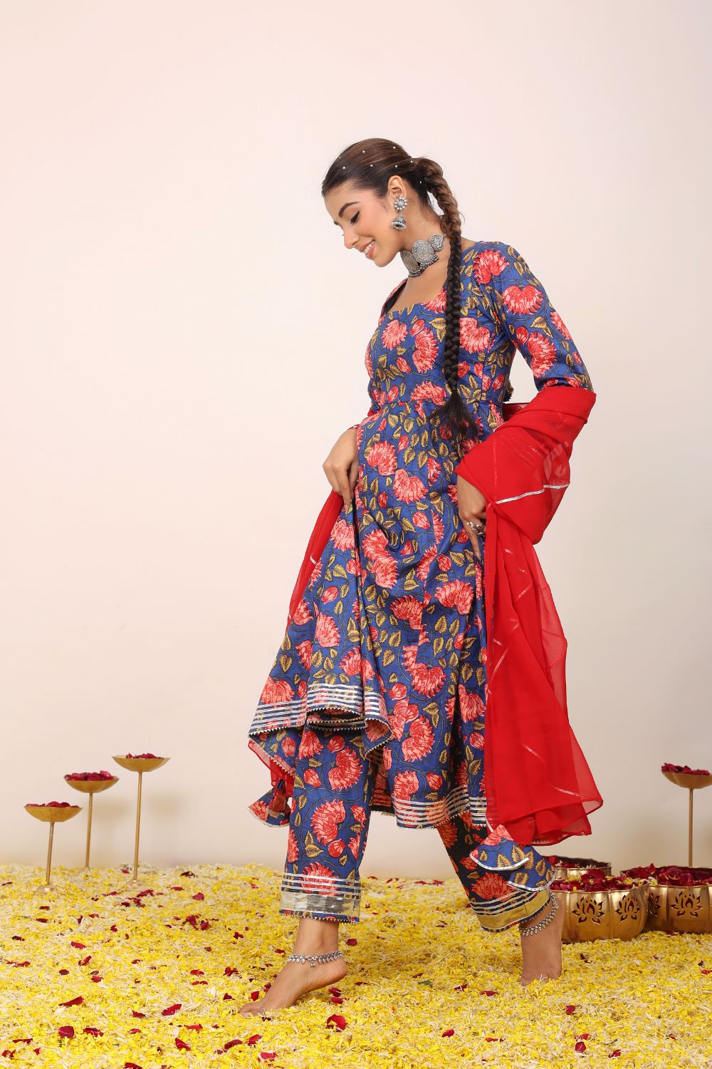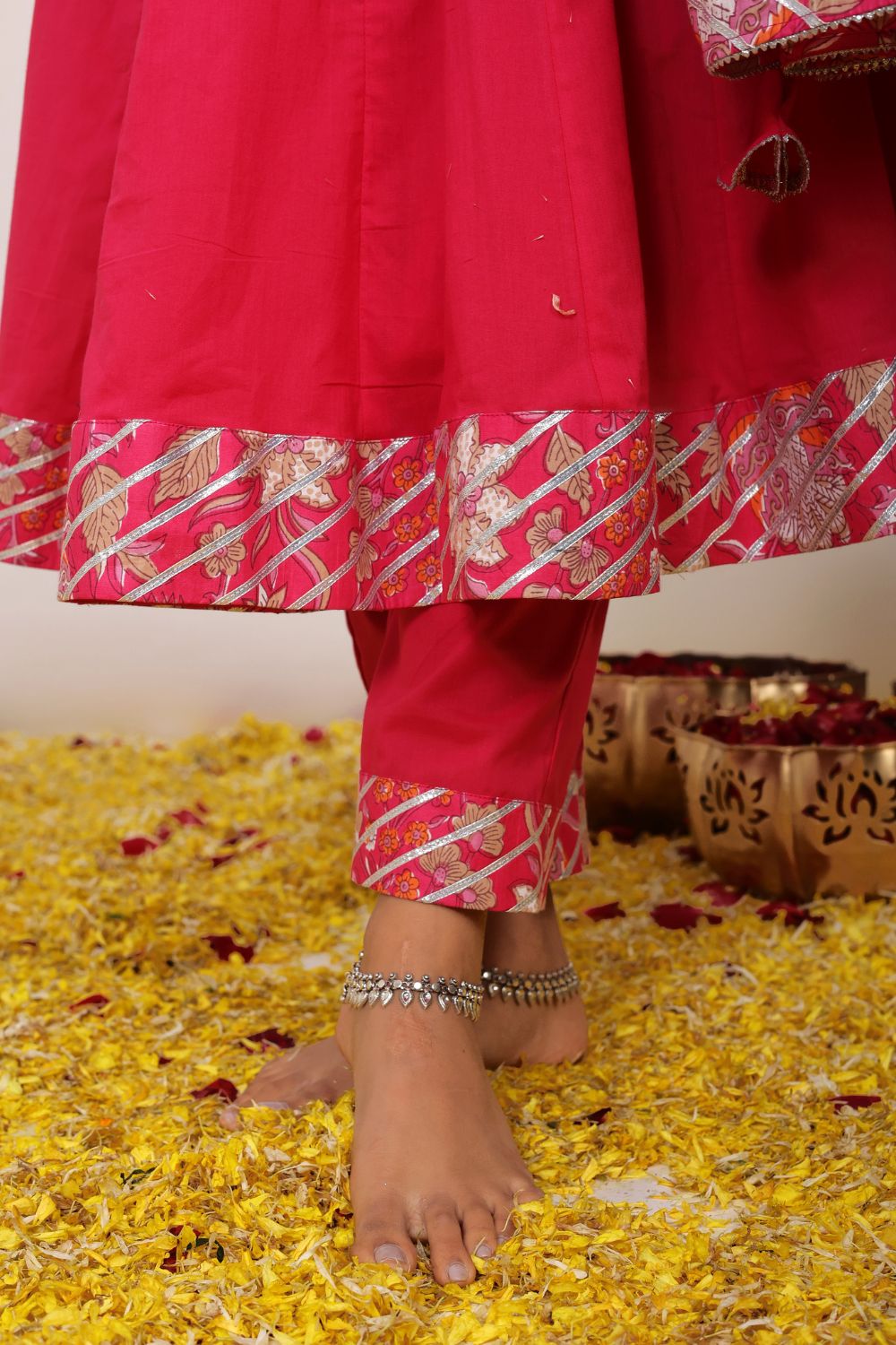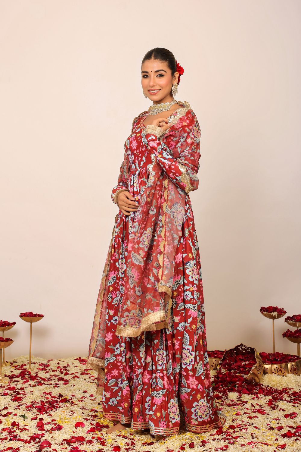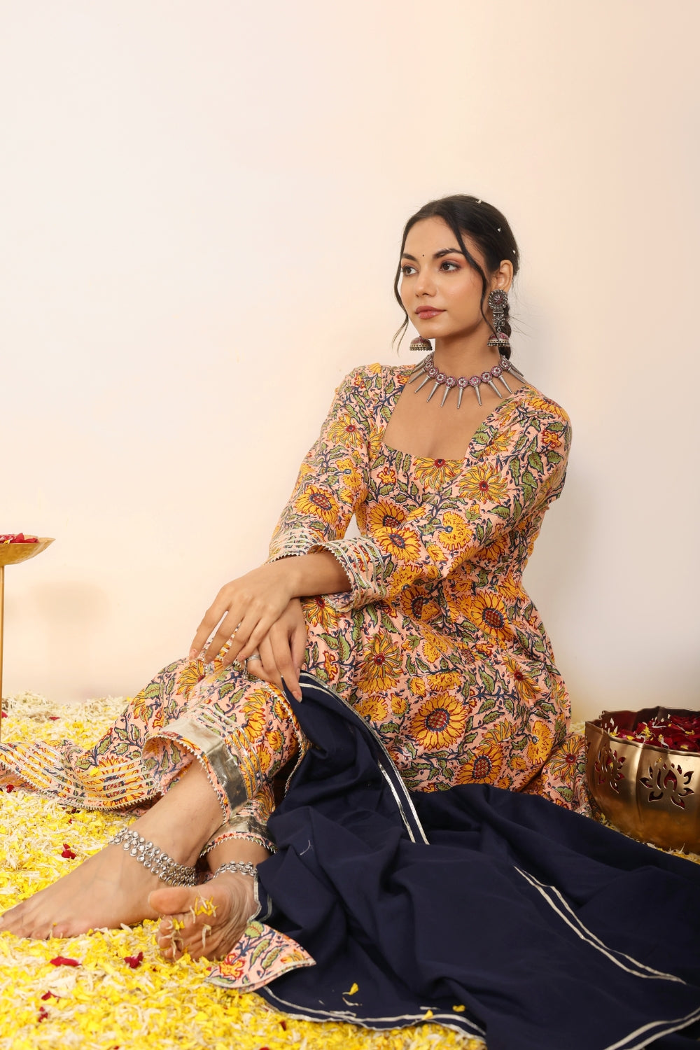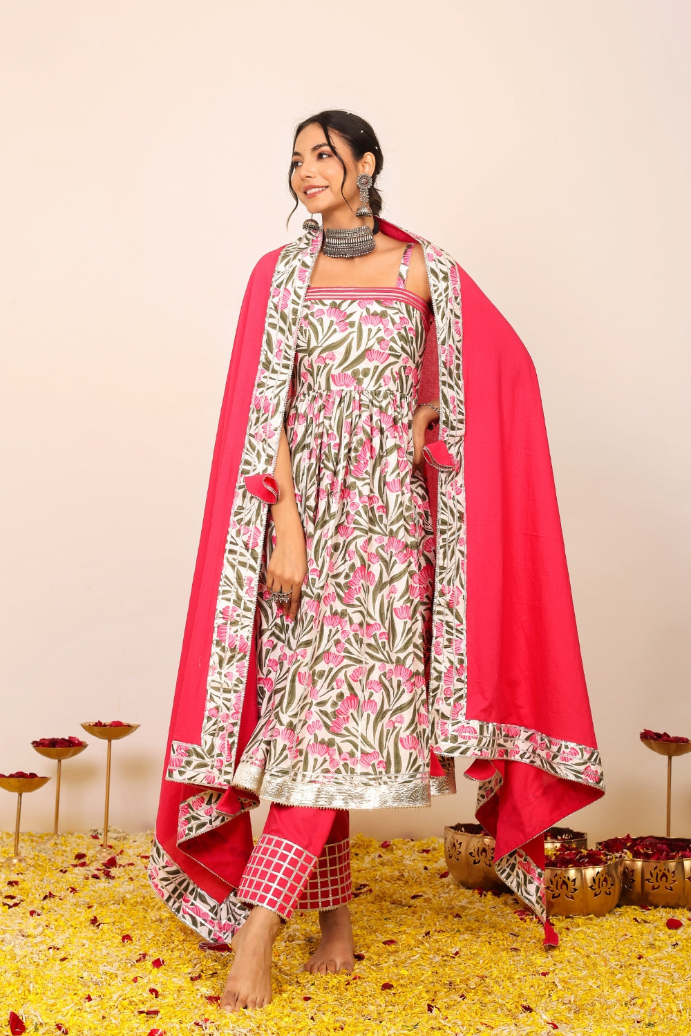 Pair a pastel-hued printed kurta set with silver jhumkas and flats for a daytime outing or opt for jewel-toned wedding suit sets adorned with subtle embellishments for festive occasions. With Kaori By Shreya, elegance is always effortless.