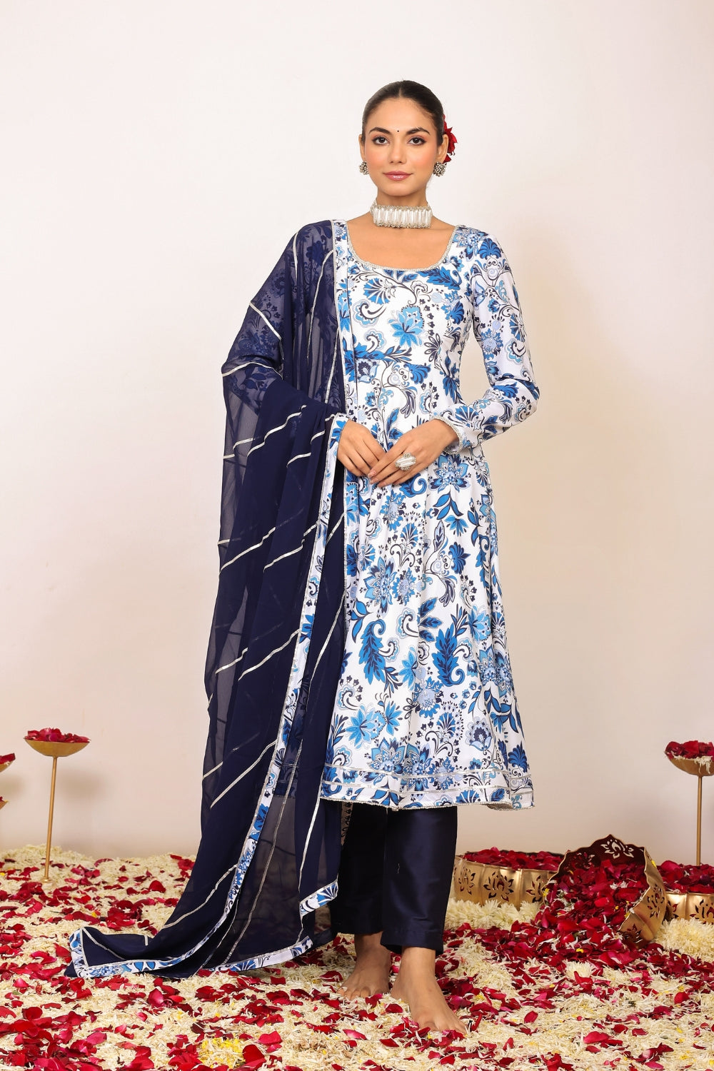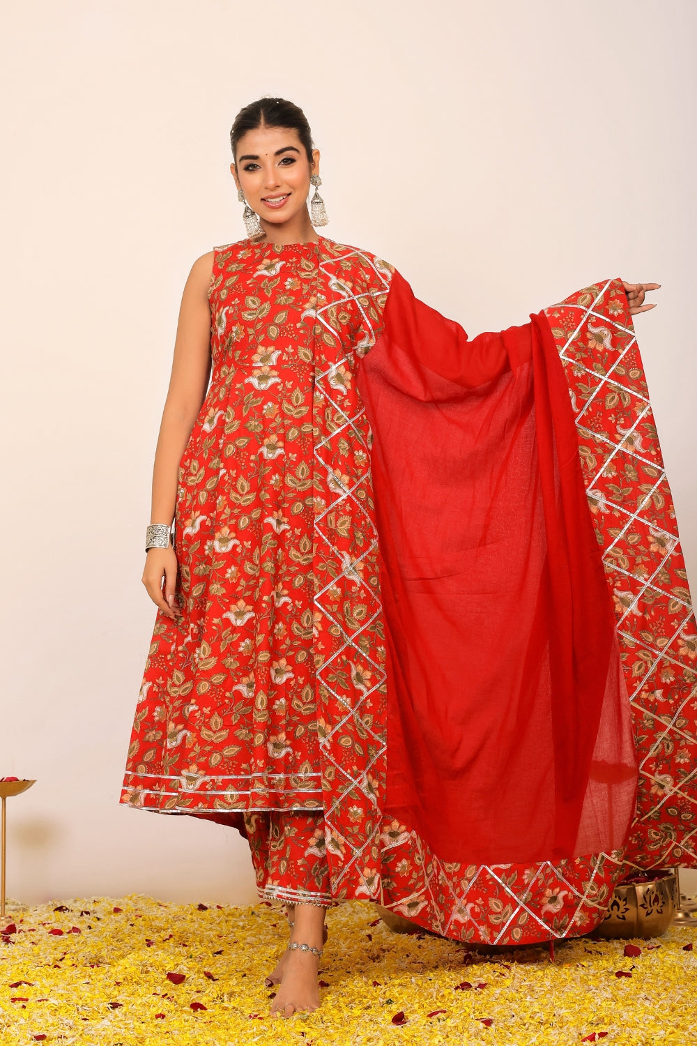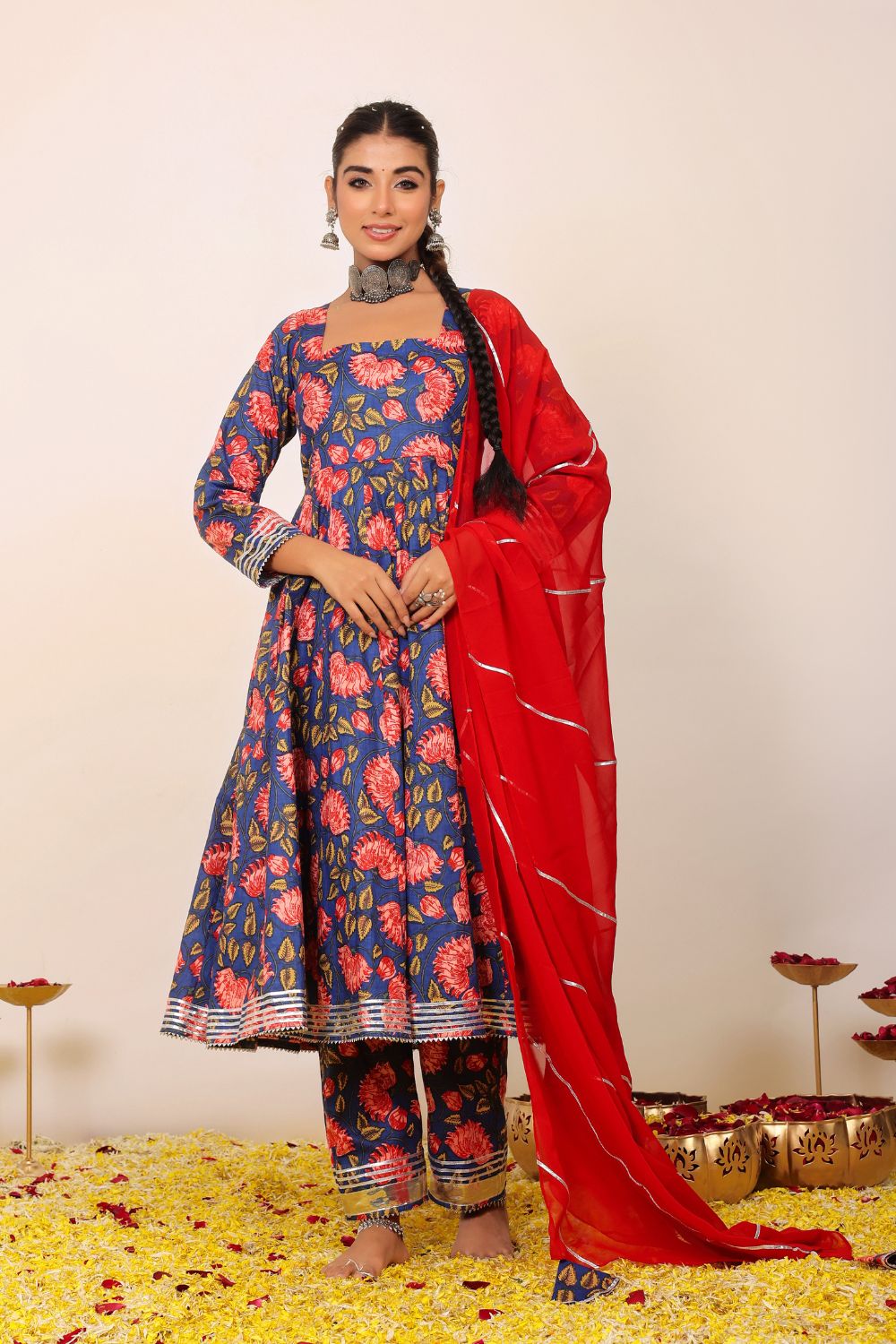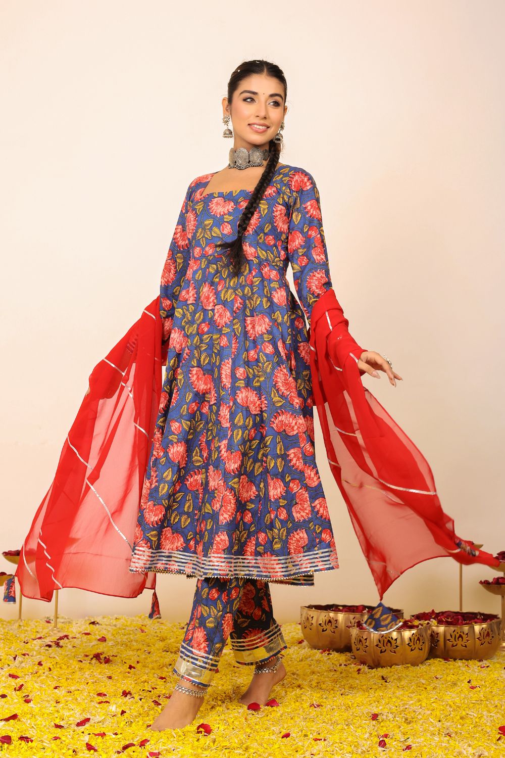 Make a grand entrance in our beautifully tailored Anarkali suit sets. Characterized by their flared silhouettes and regal charm, these suits are ideal for weddings, parties, or any time you want to feel extra special. Choose from soft floral patterns, rich solid tones, or classic ivory hues that pair beautifully with dupattas crafted from organza or cotton voile.