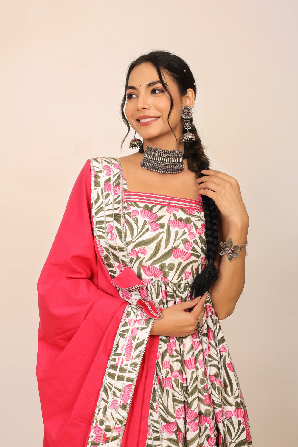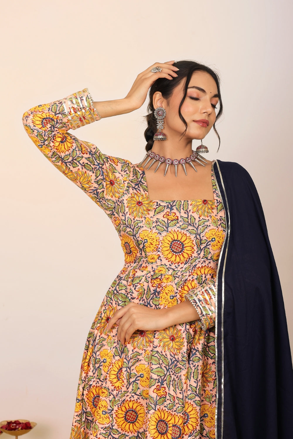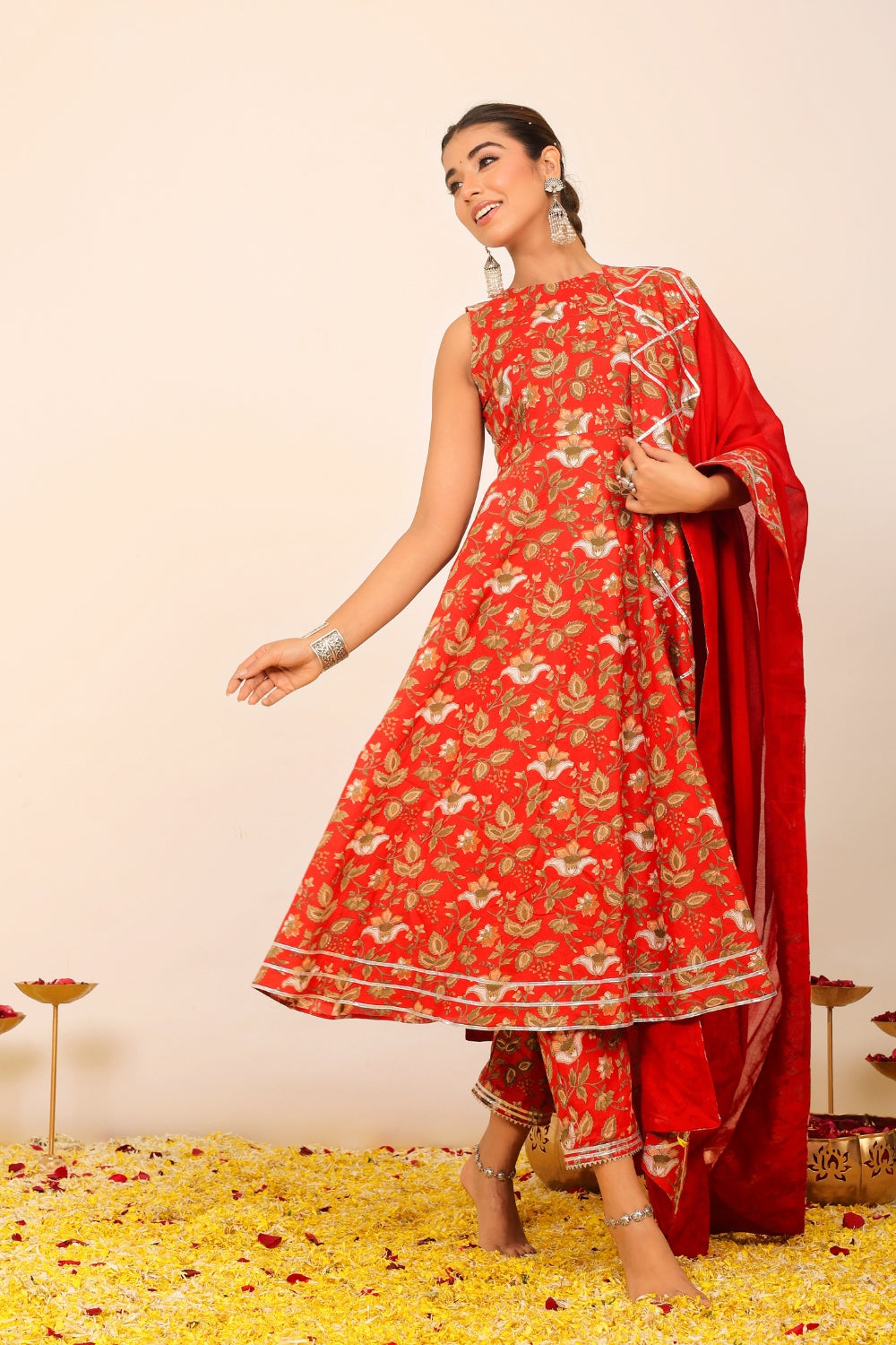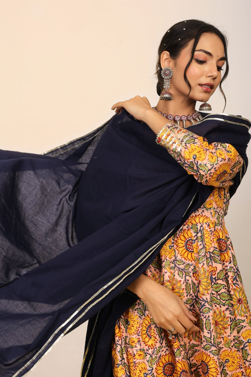 Make a grand entrance in our beautifully tailored Anarkali suit sets. Characterized by their flared silhouettes and regal charm, these suits are ideal for weddings, parties, or any time you want to feel extra special. Choose from soft floral patterns, rich solid tones, or classic ivory hues that pair beautifully with dupattas crafted from organza or cotton voile.