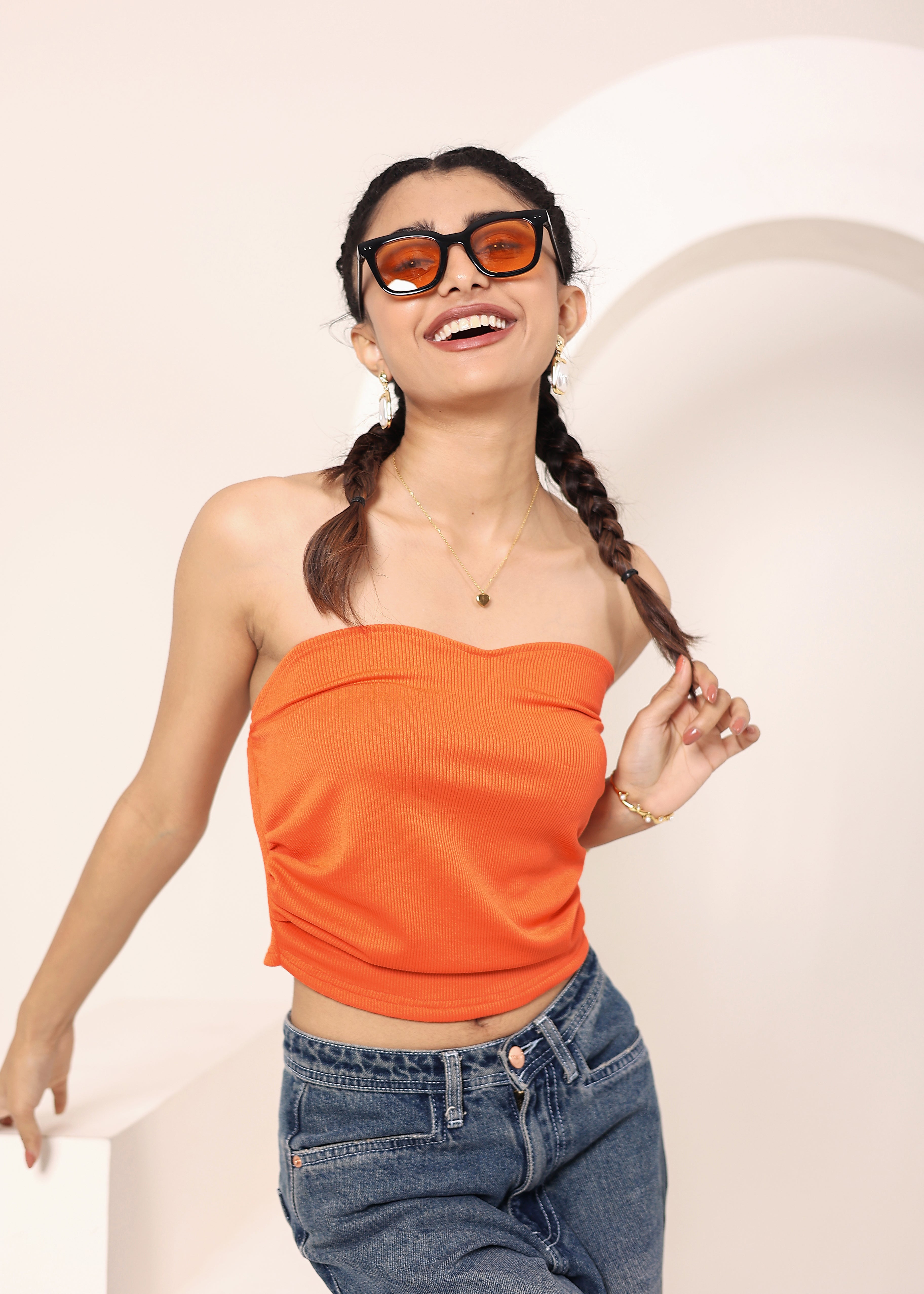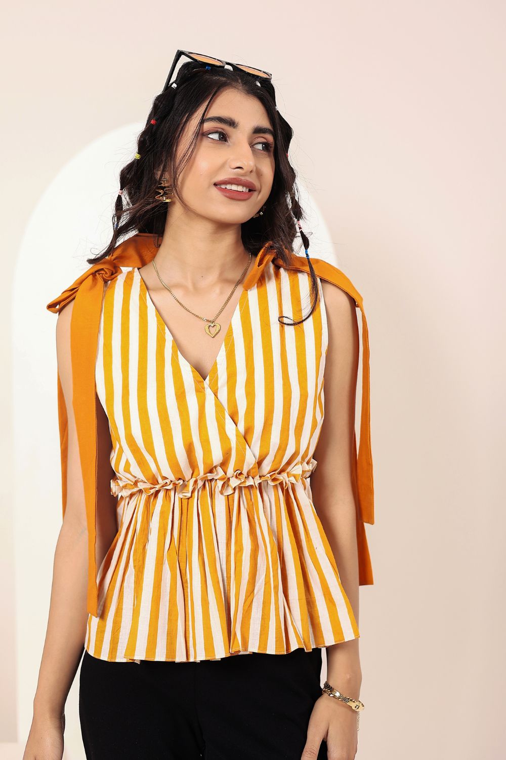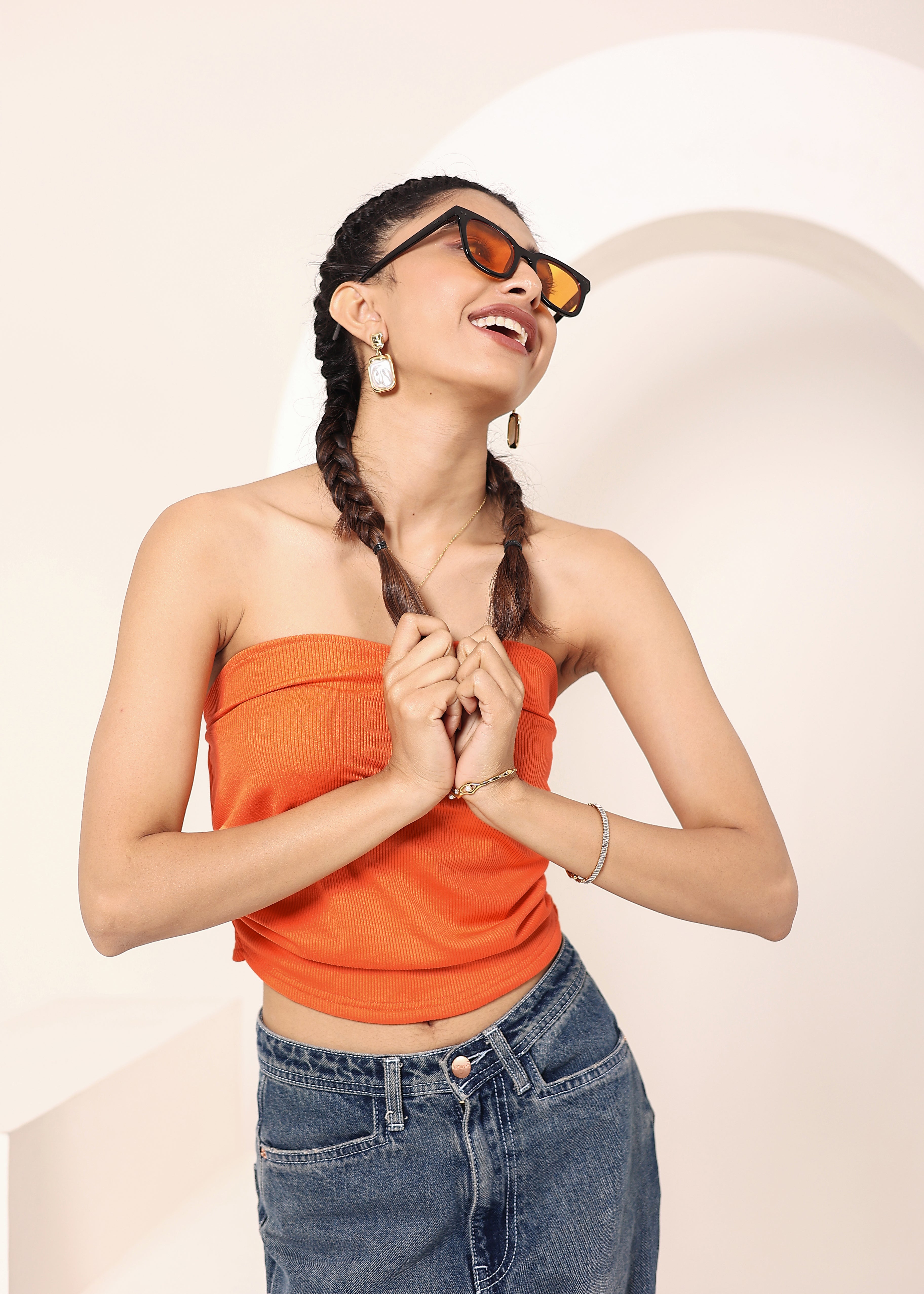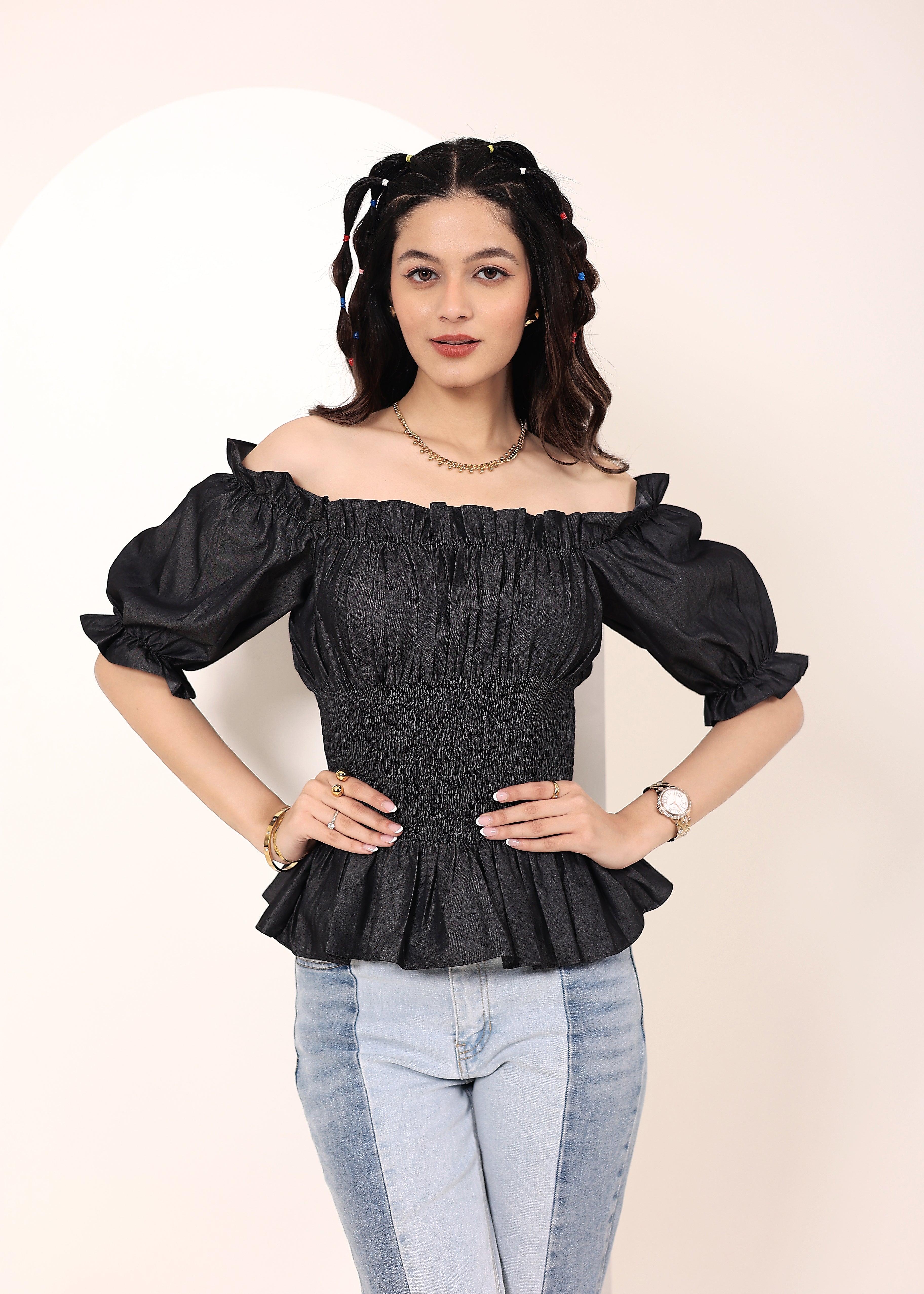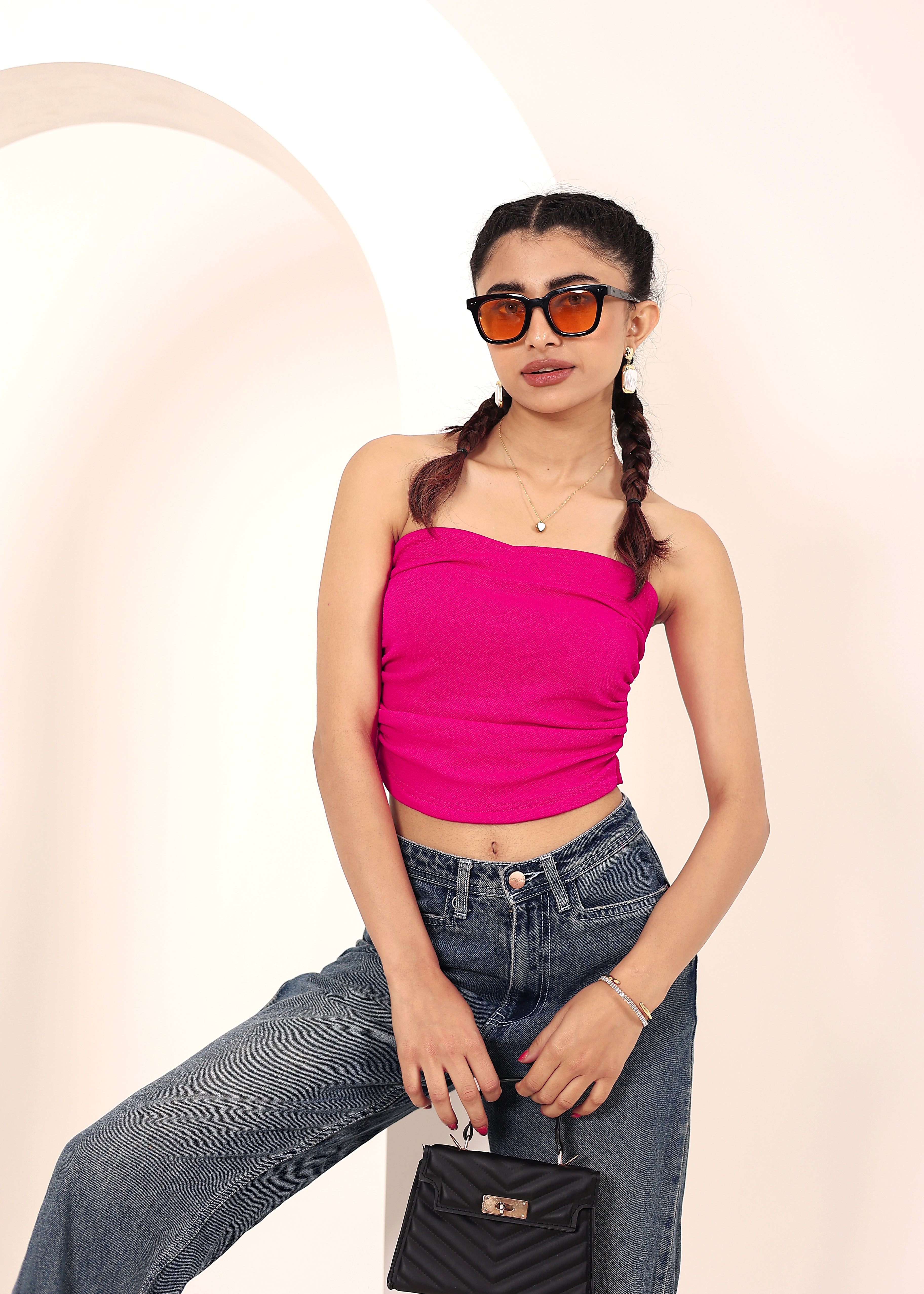 Make heads turn with our collection of party wear tops, bustier tops, camisole tops, and peplum tops. From the curve-flattering silhouette of a cotton, linen, georgette, chiffon, crepe peplum top to the bold appeal of crop tops, each piece adds drama and sophistication to your eveningwear. Choose a ruffle top for women to create volume and movement or opt for minimal elegance with camisole tops.