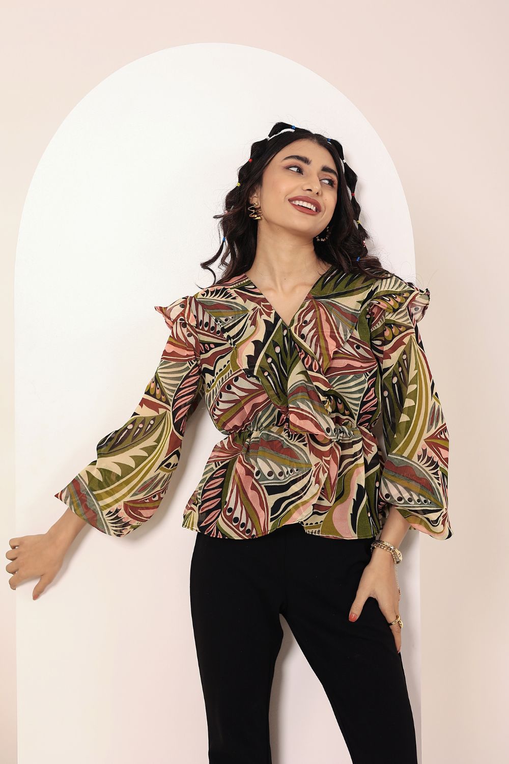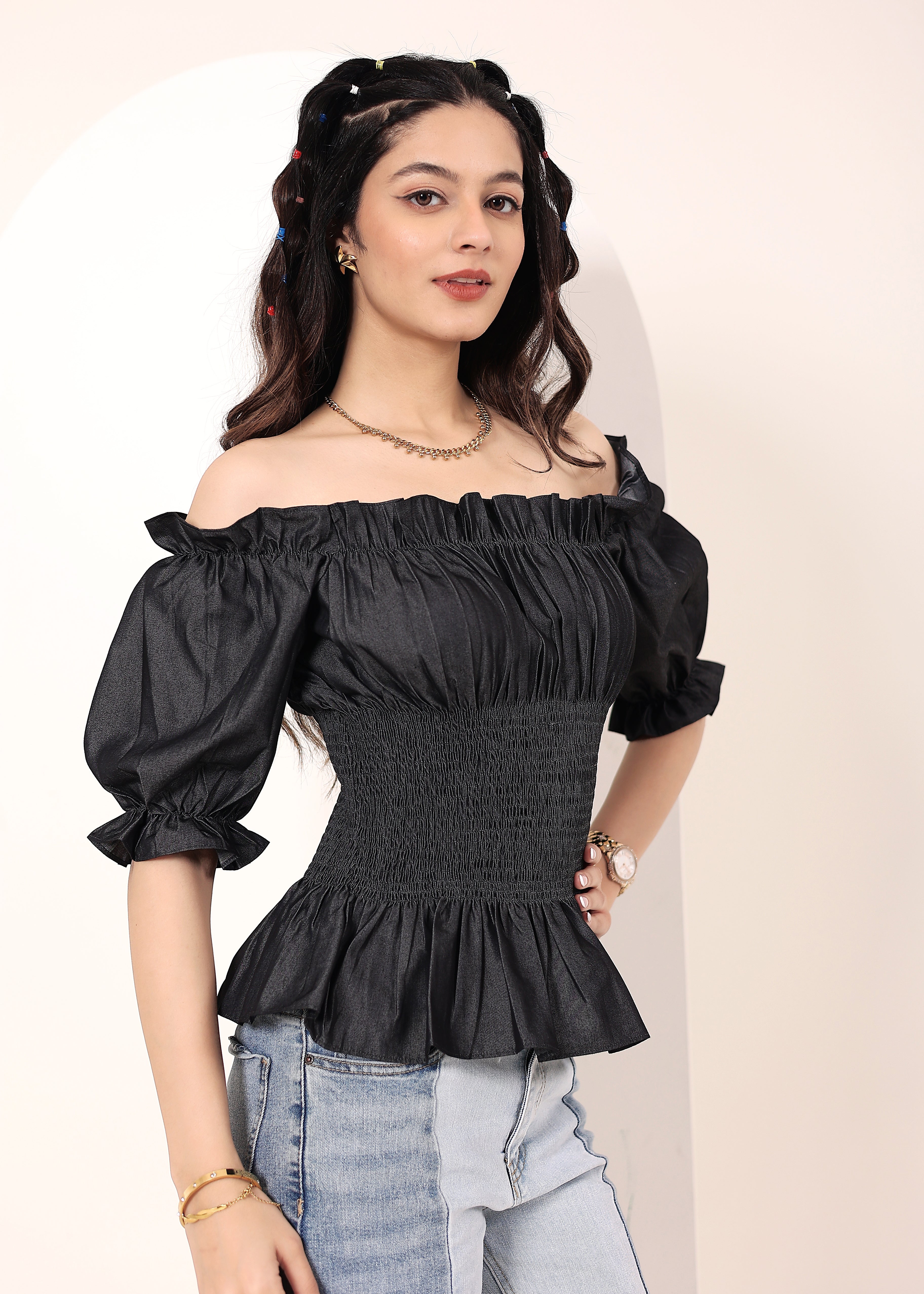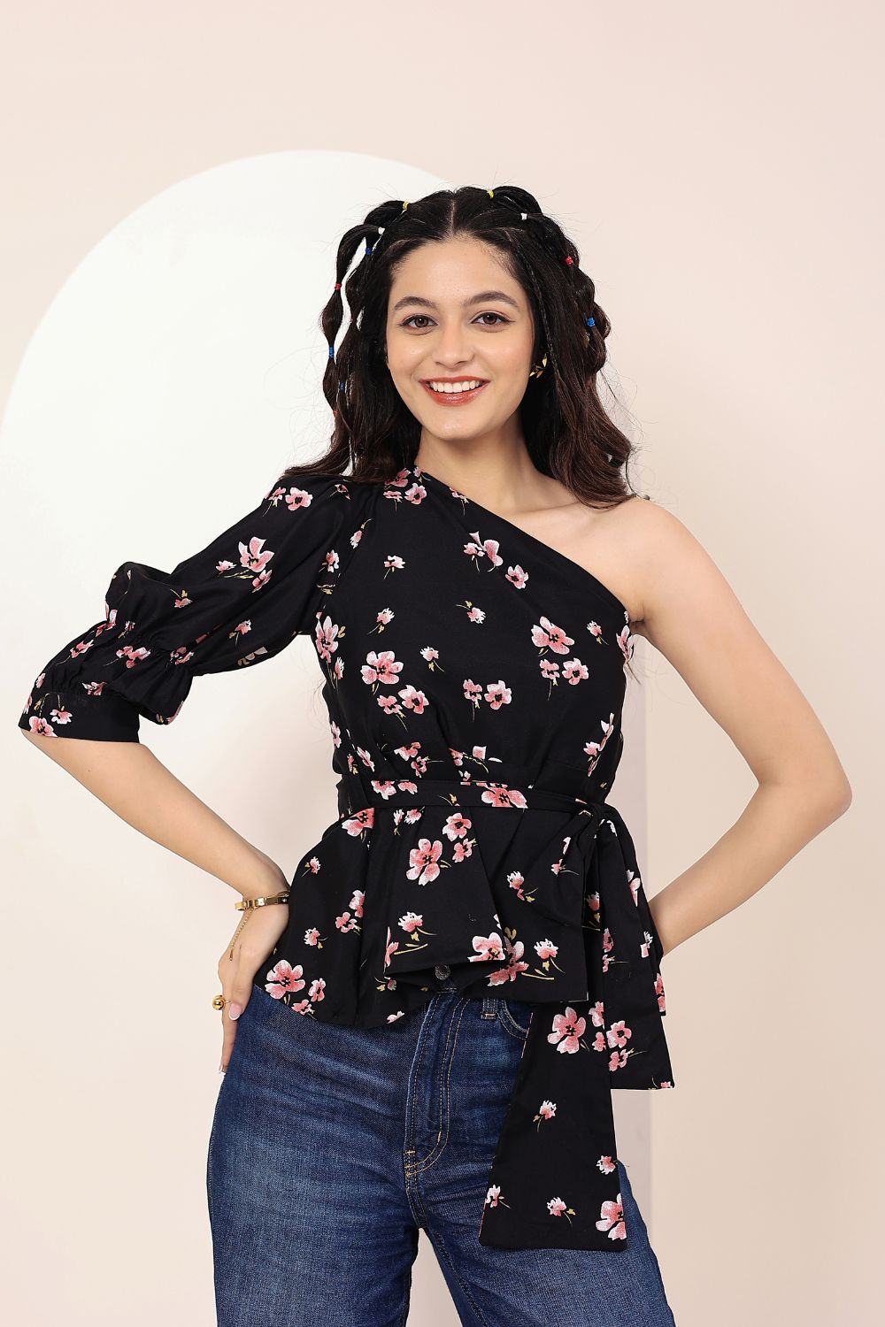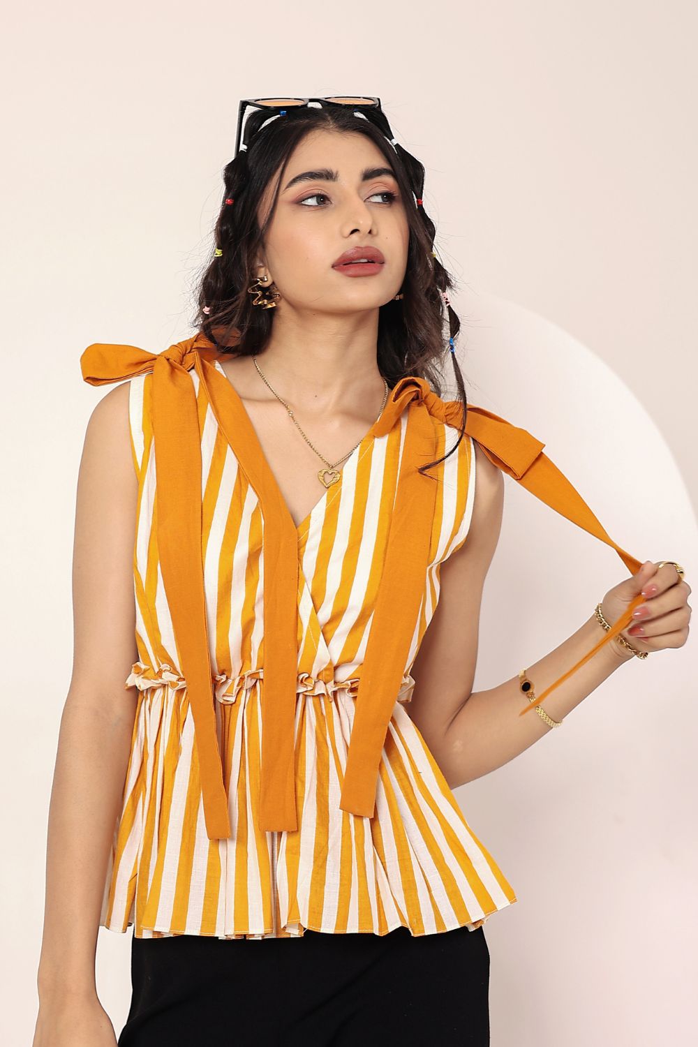 Make heads turn with our collection of party wear tops, bustier tops, camisole tops, and peplum tops. From the curve-flattering silhouette of a cotton, linen, georgette, chiffon, crepe peplum top to the bold appeal of crop tops, each piece adds drama and sophistication to your eveningwear. Choose a ruffle top for women to create volume and movement or opt for minimal elegance with camisole tops.