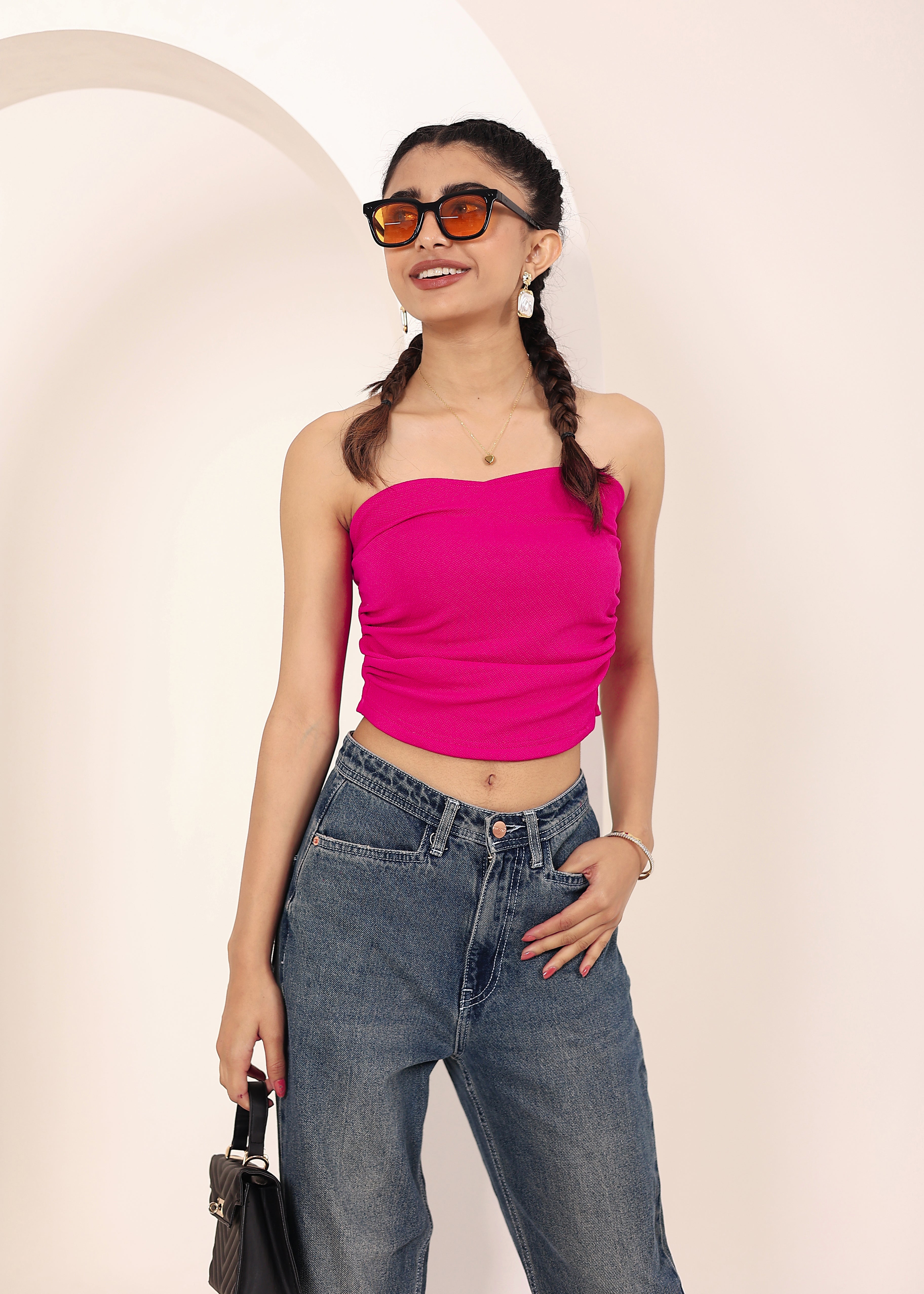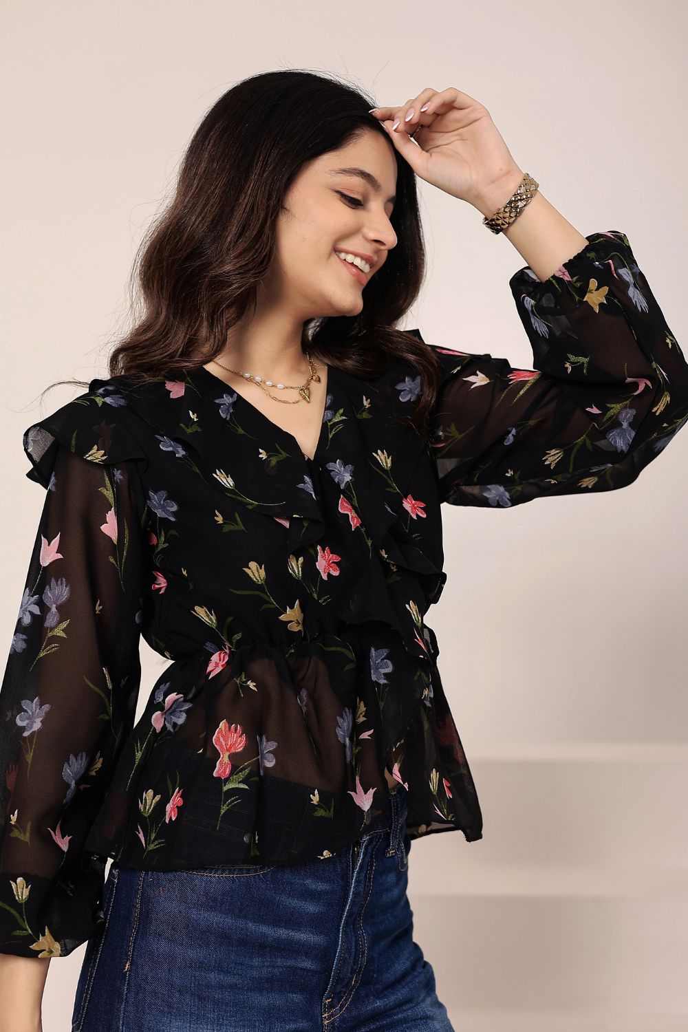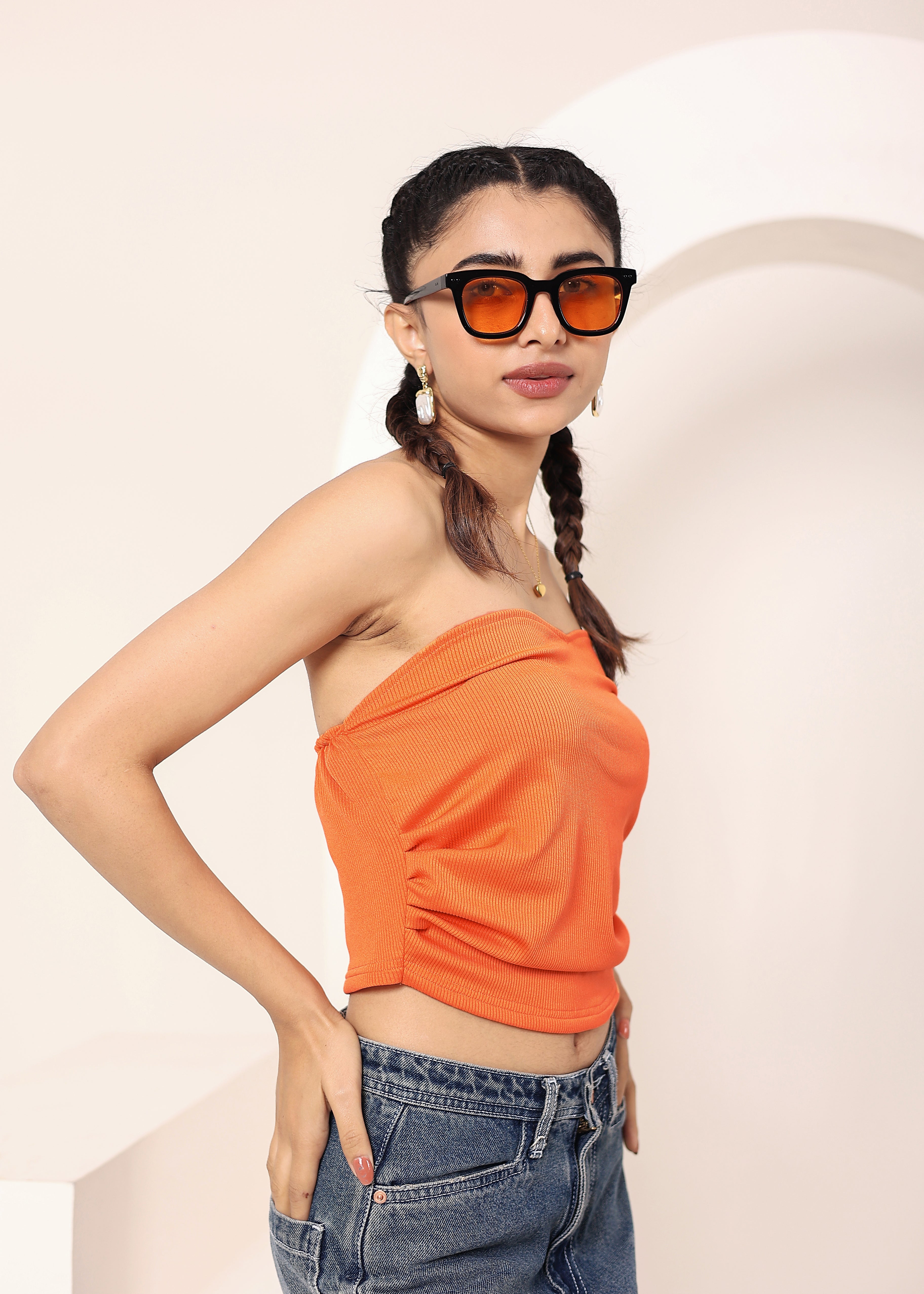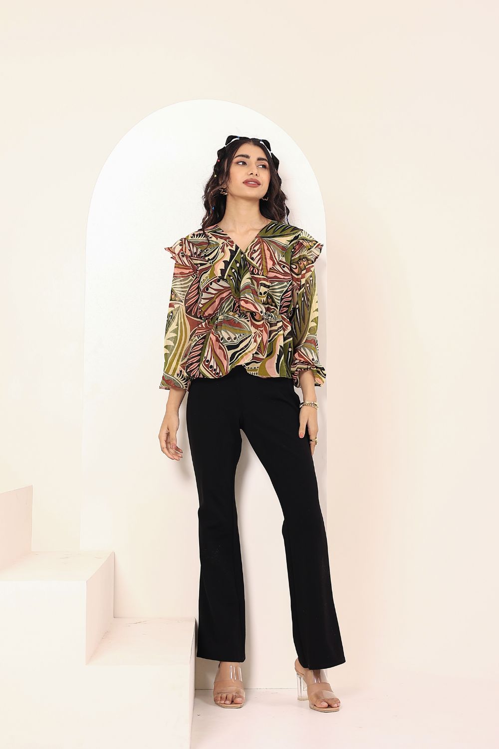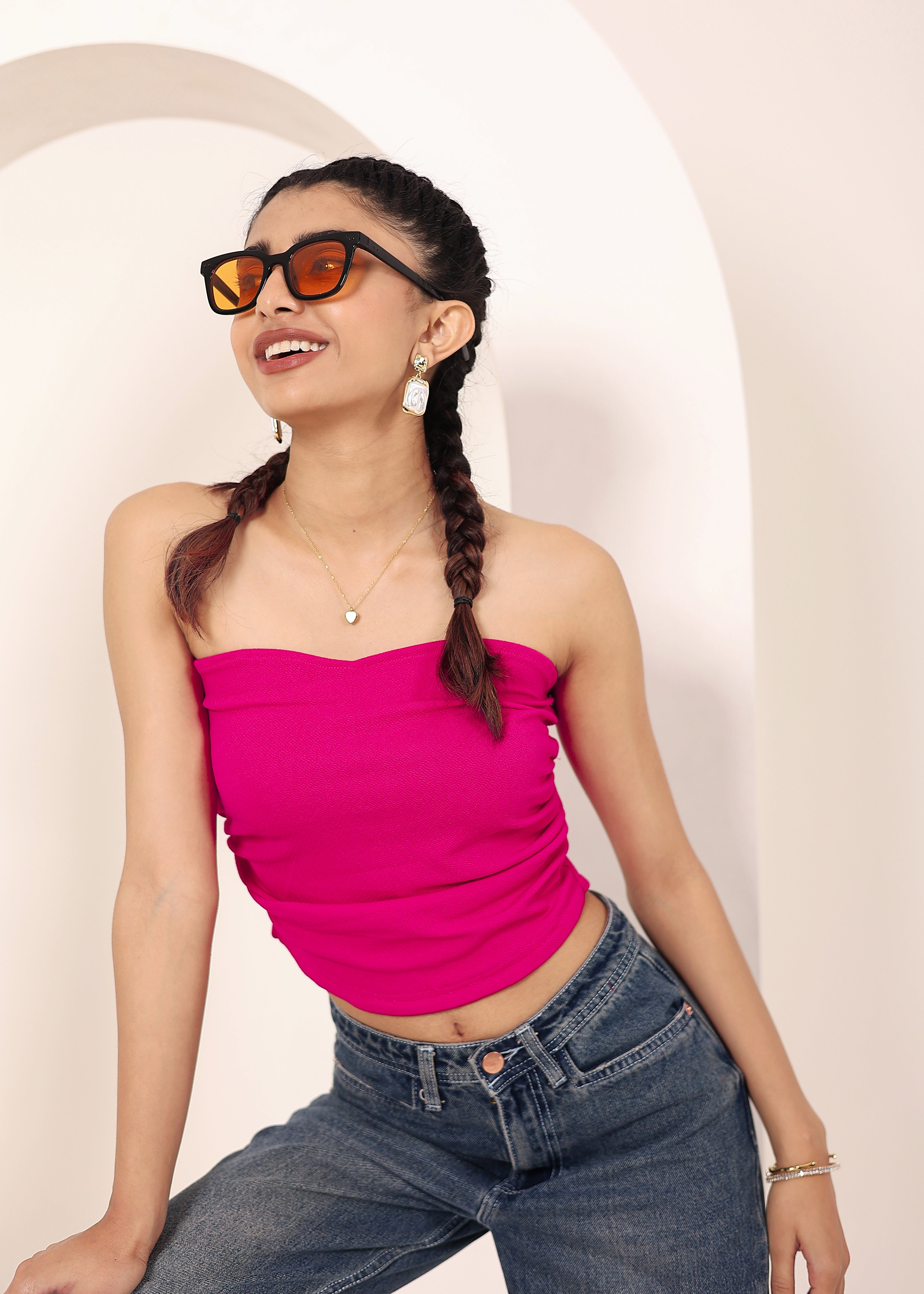 Make heads turn with our collection of party wear tops, bustier tops, camisole tops, and peplum tops. From the curve-flattering silhouette of a cotton, linen, georgette, chiffon, crepe peplum top to the bold appeal of crop tops, each piece adds drama and sophistication to your eveningwear. Choose a ruffle top for women to create volume and movement or opt for minimal elegance with camisole tops.