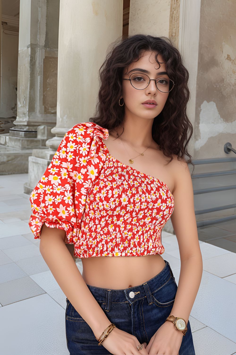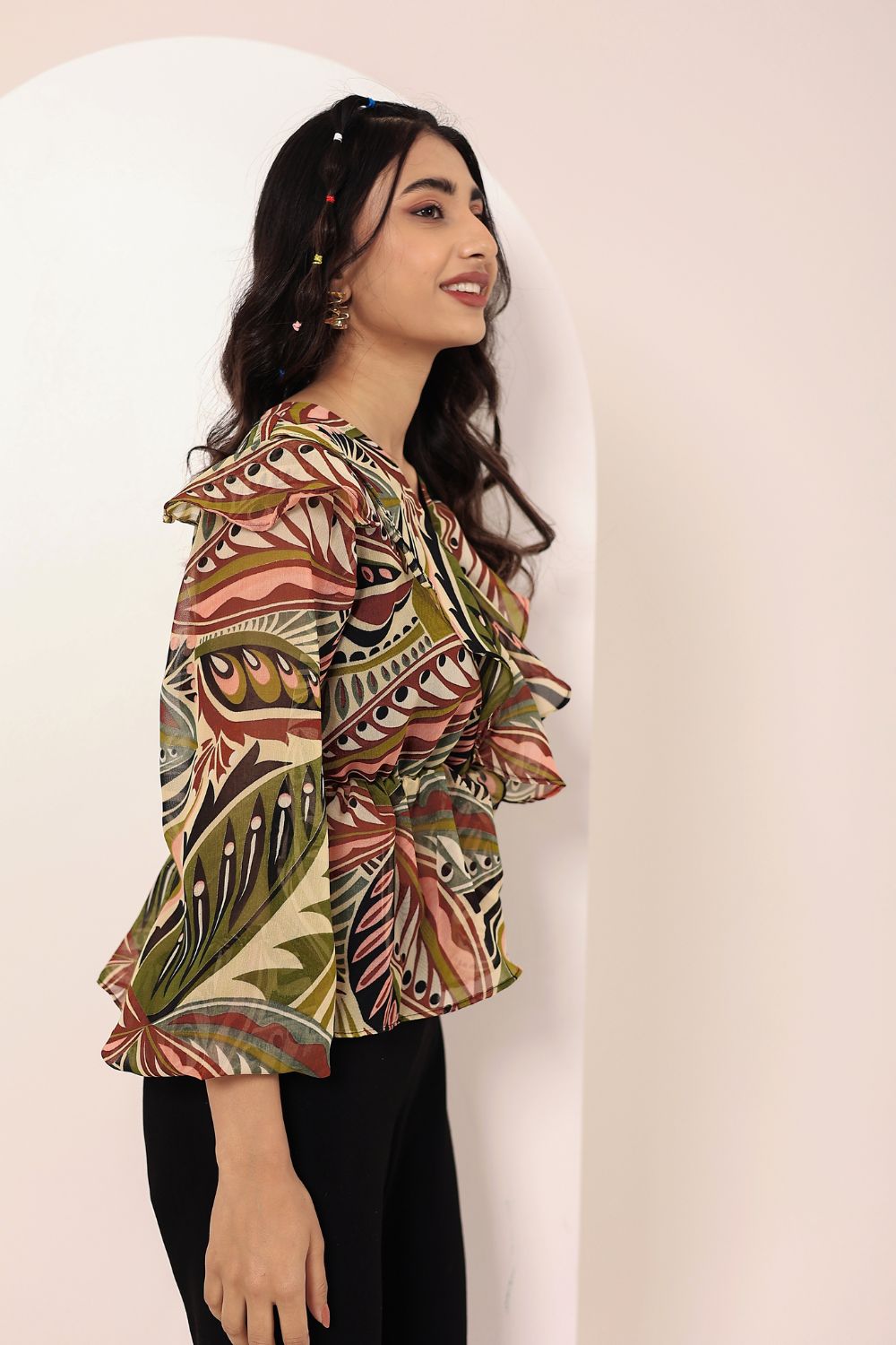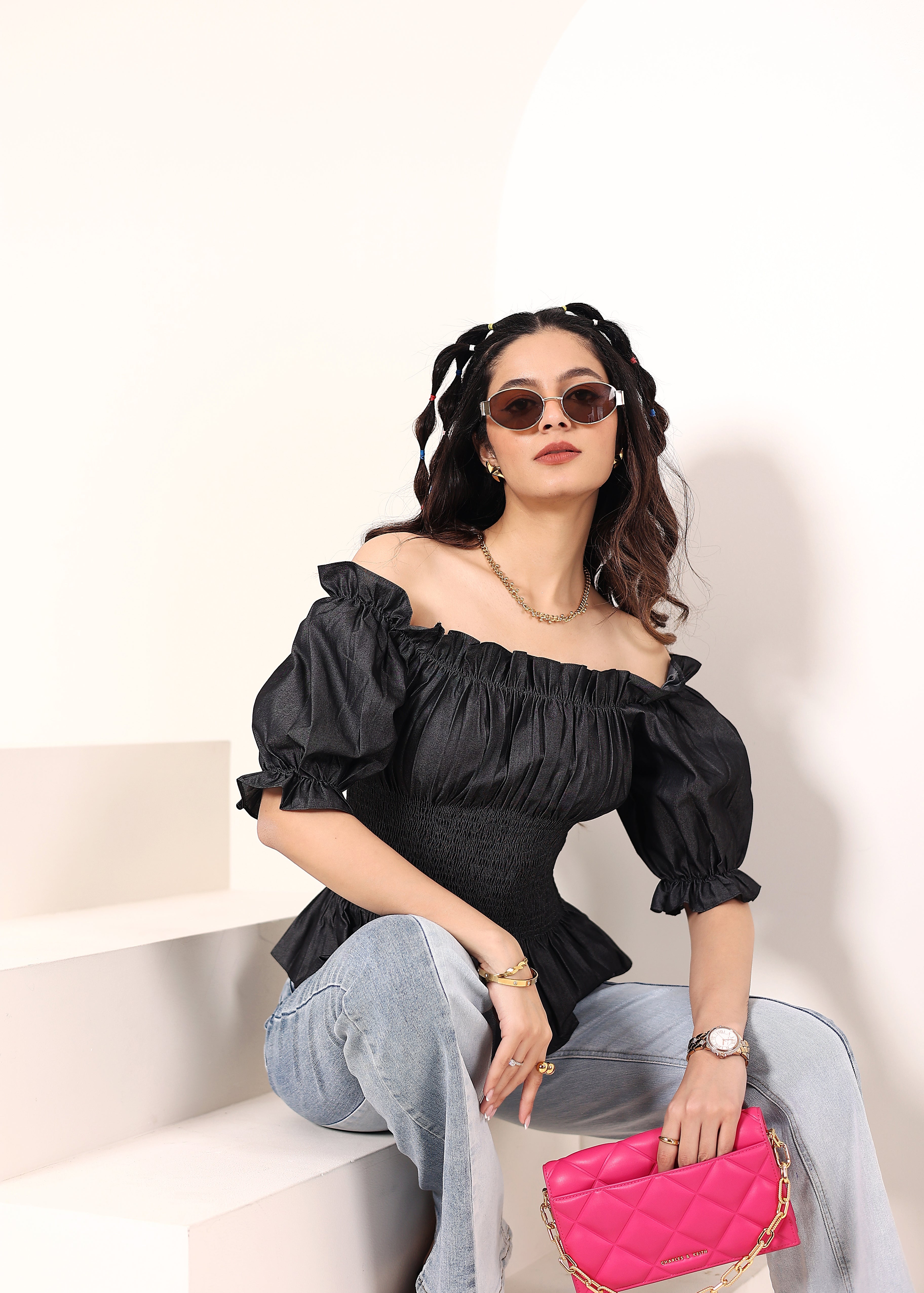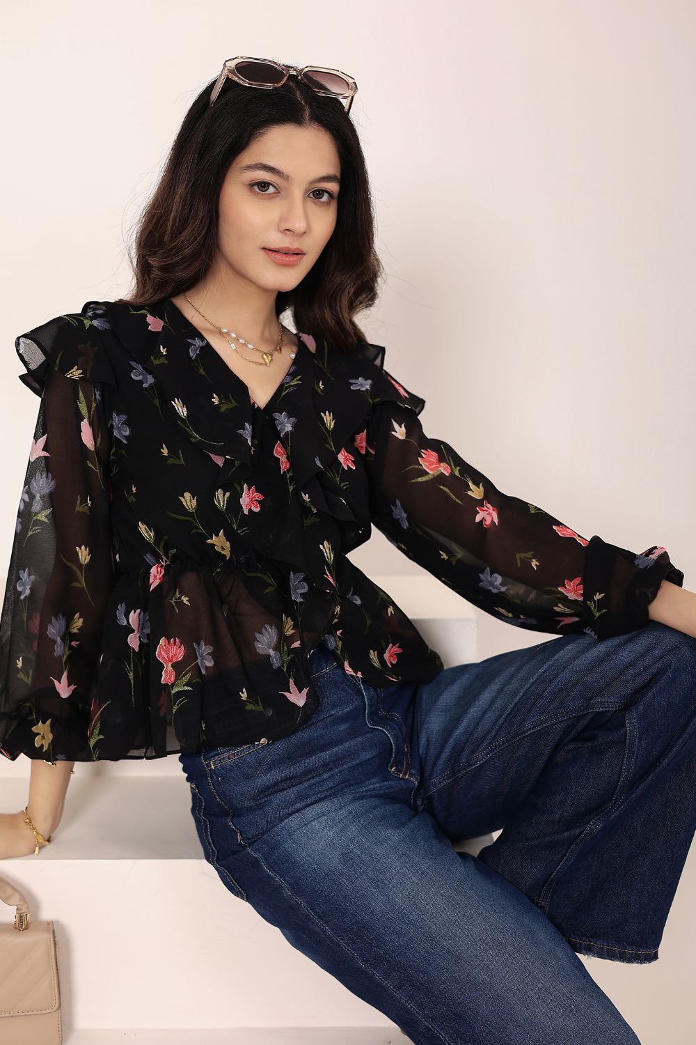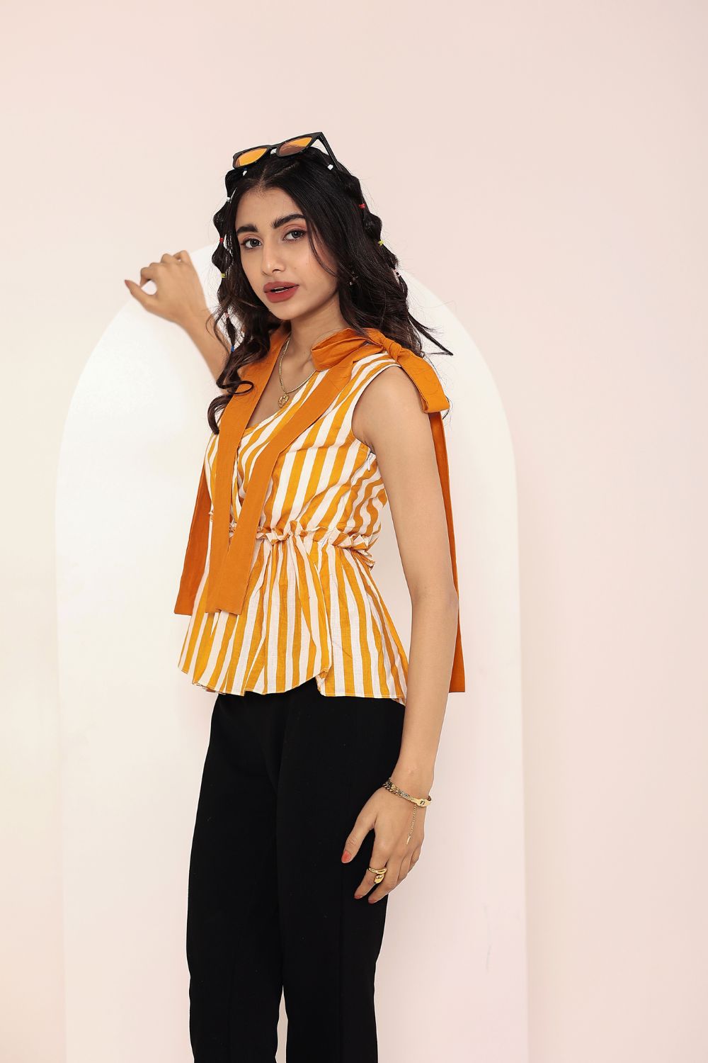 Make heads turn with our collection of party wear tops, bustier tops, camisole tops, and peplum tops. From the curve-flattering silhouette of a cotton, linen, georgette, chiffon, crepe peplum top to the bold appeal of crop tops, each piece adds drama and sophistication to your eveningwear. Choose a ruffle top for women to create volume and movement or opt for minimal elegance with camisole tops.