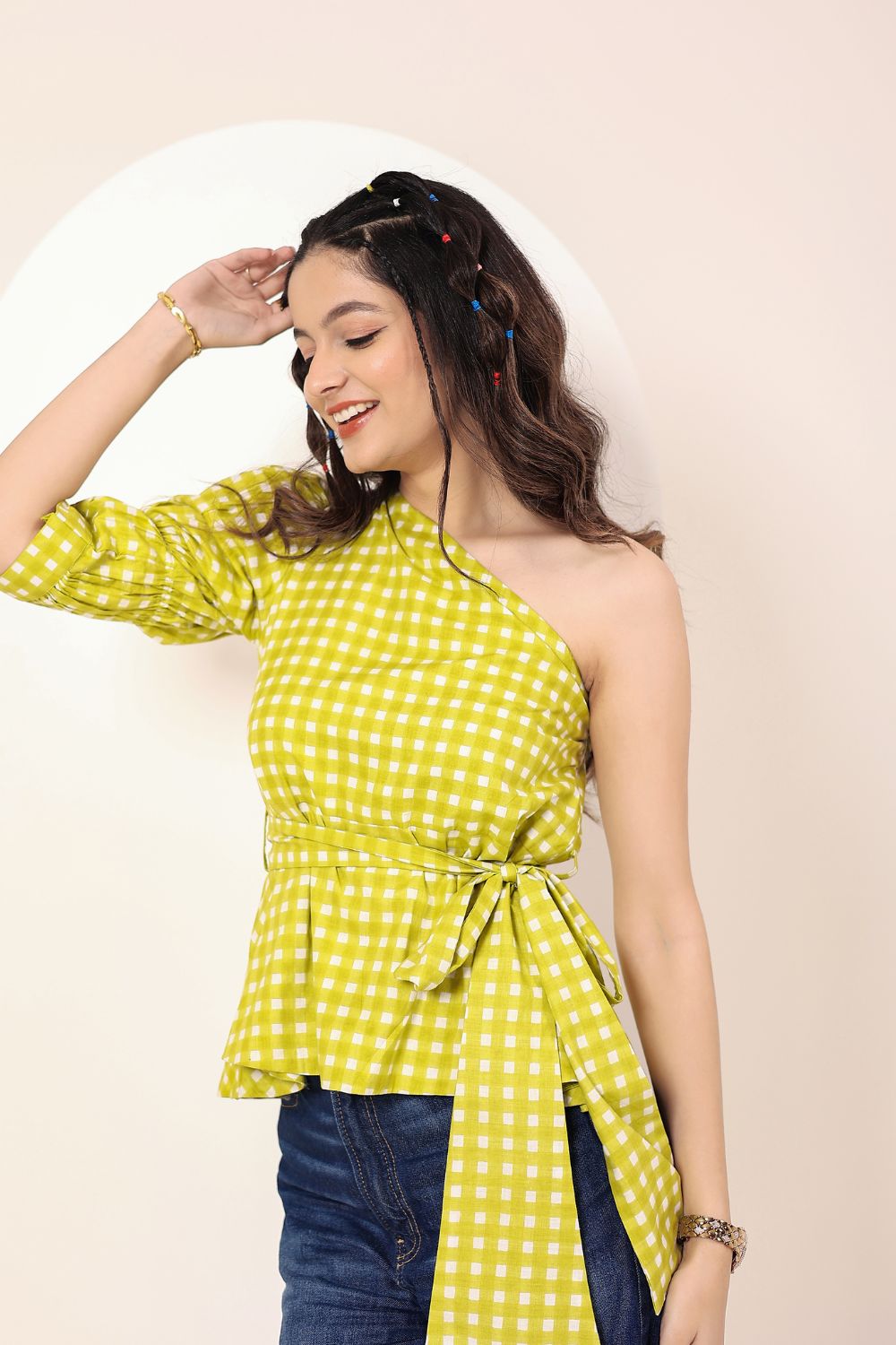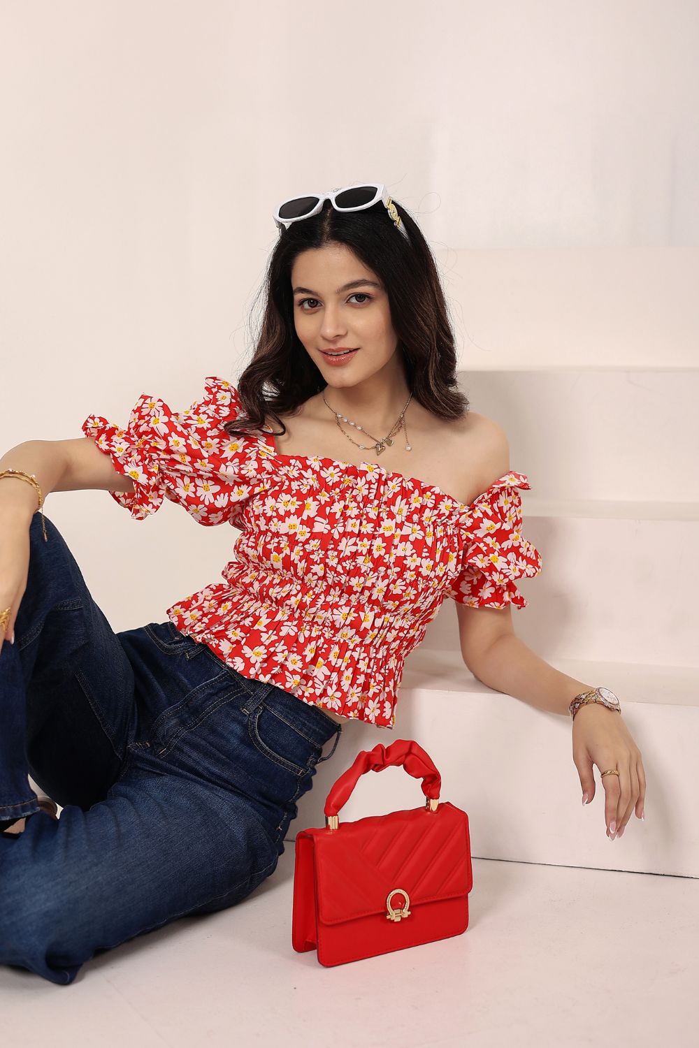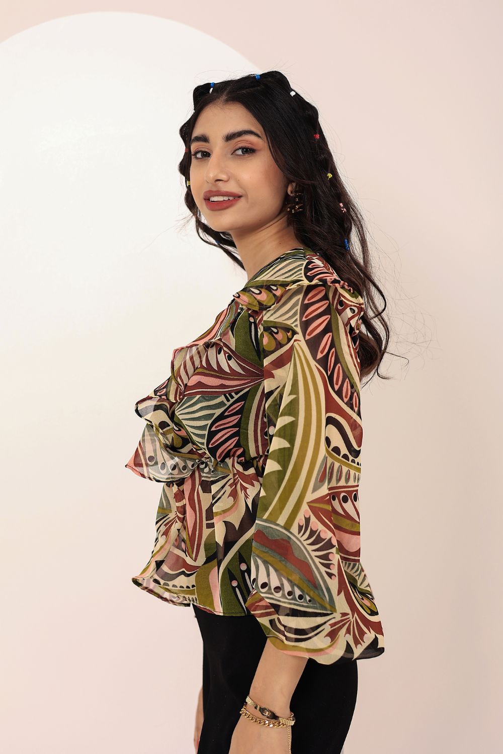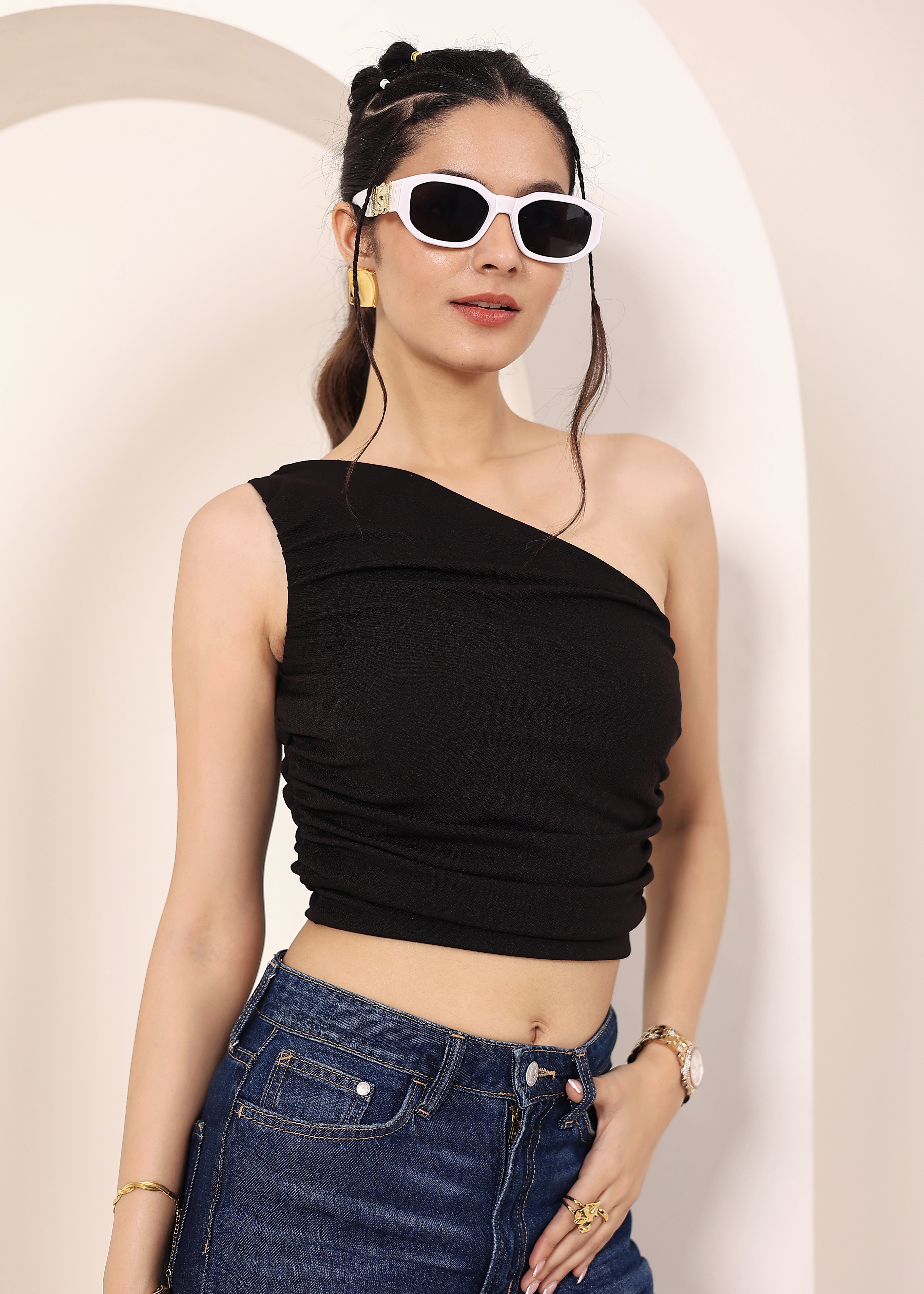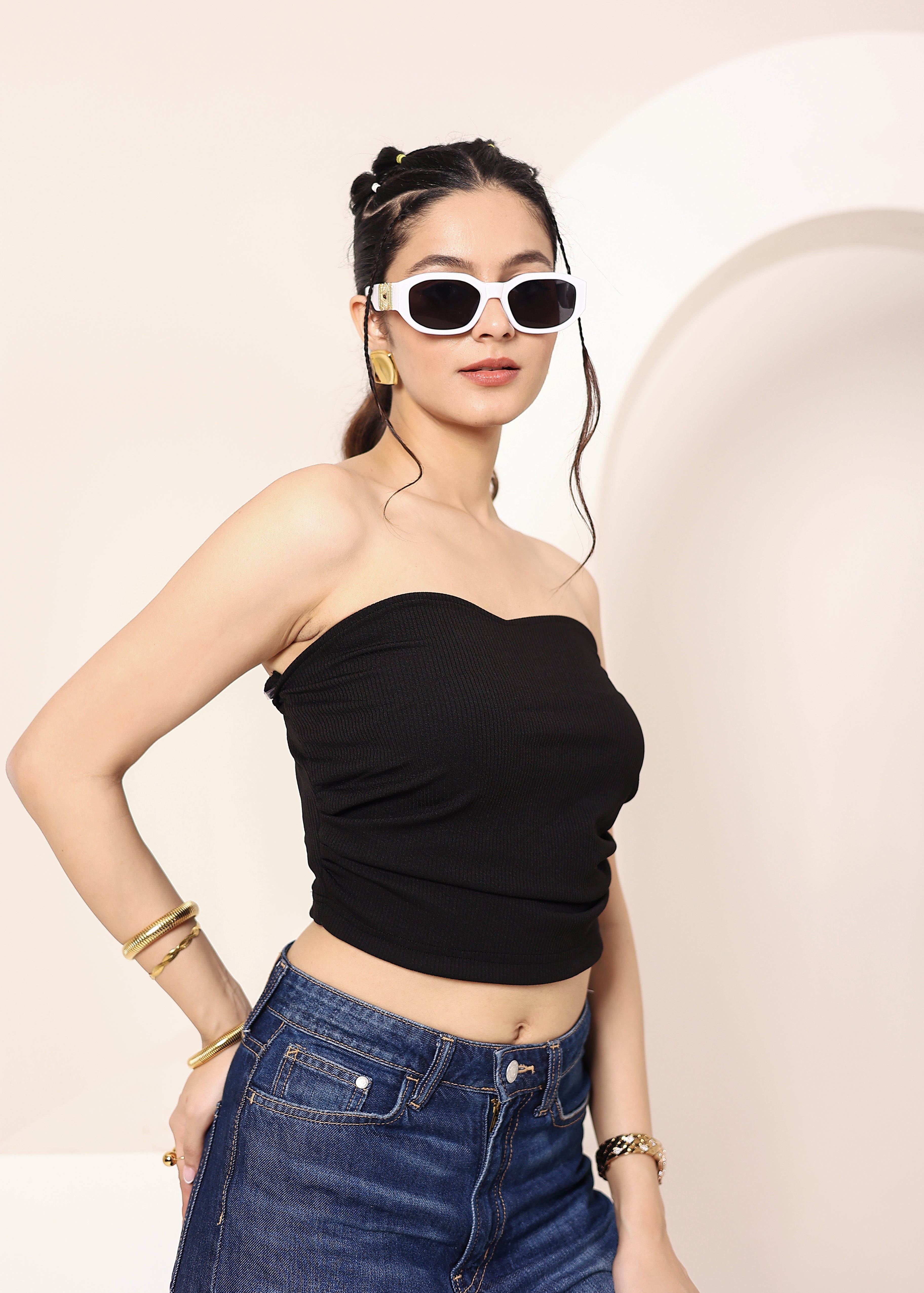 Make heads turn with our collection of party wear tops, bustier tops, camisole tops, and peplum tops. From the curve-flattering silhouette of a cotton, linen, georgette, chiffon, crepe peplum top to the bold appeal of crop tops, each piece adds drama and sophistication to your eveningwear. Choose a ruffle top for women to create volume and movement or opt for minimal elegance with camisole tops.
