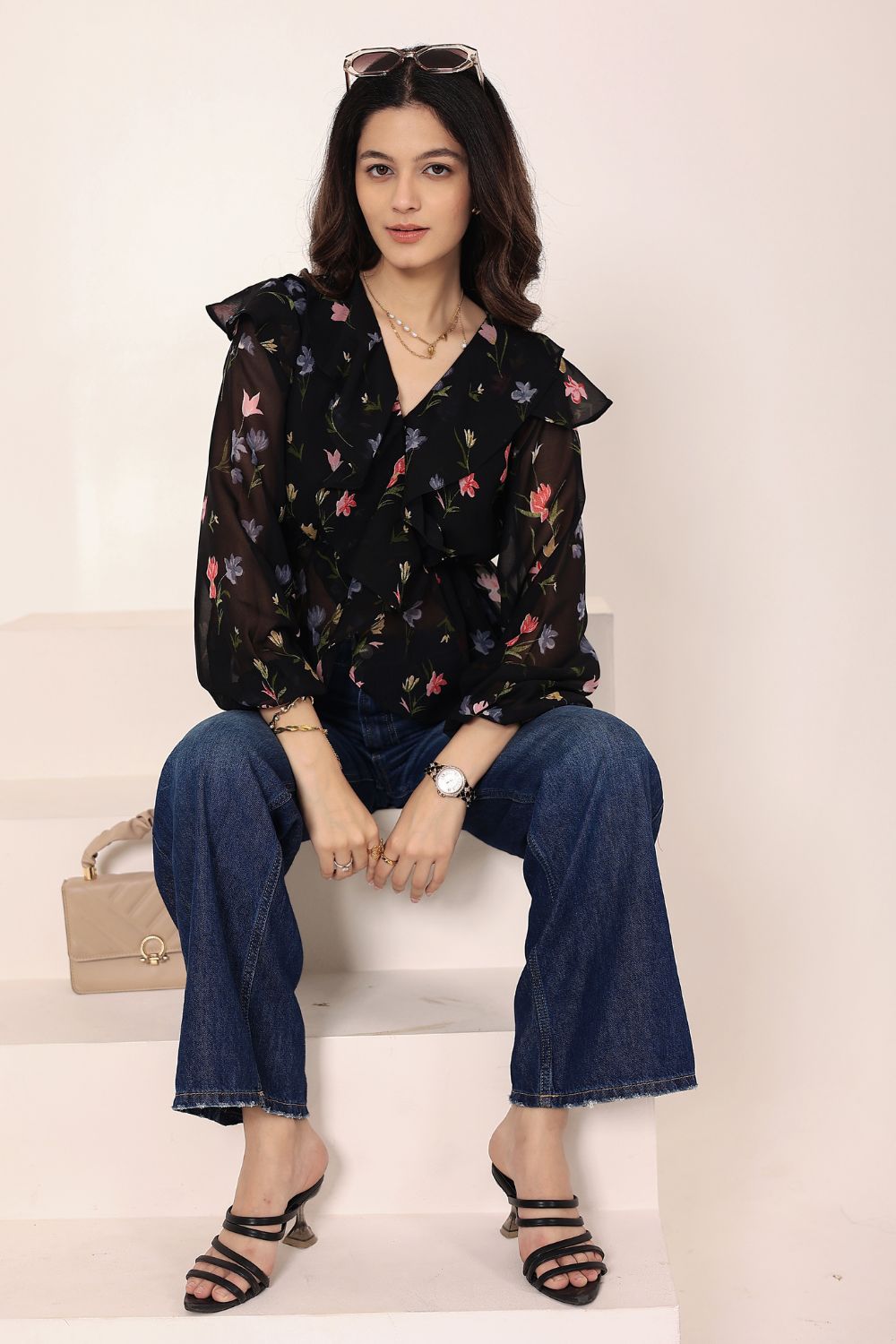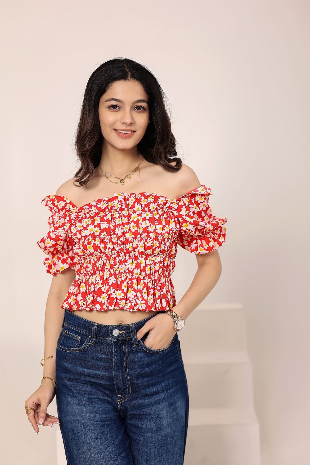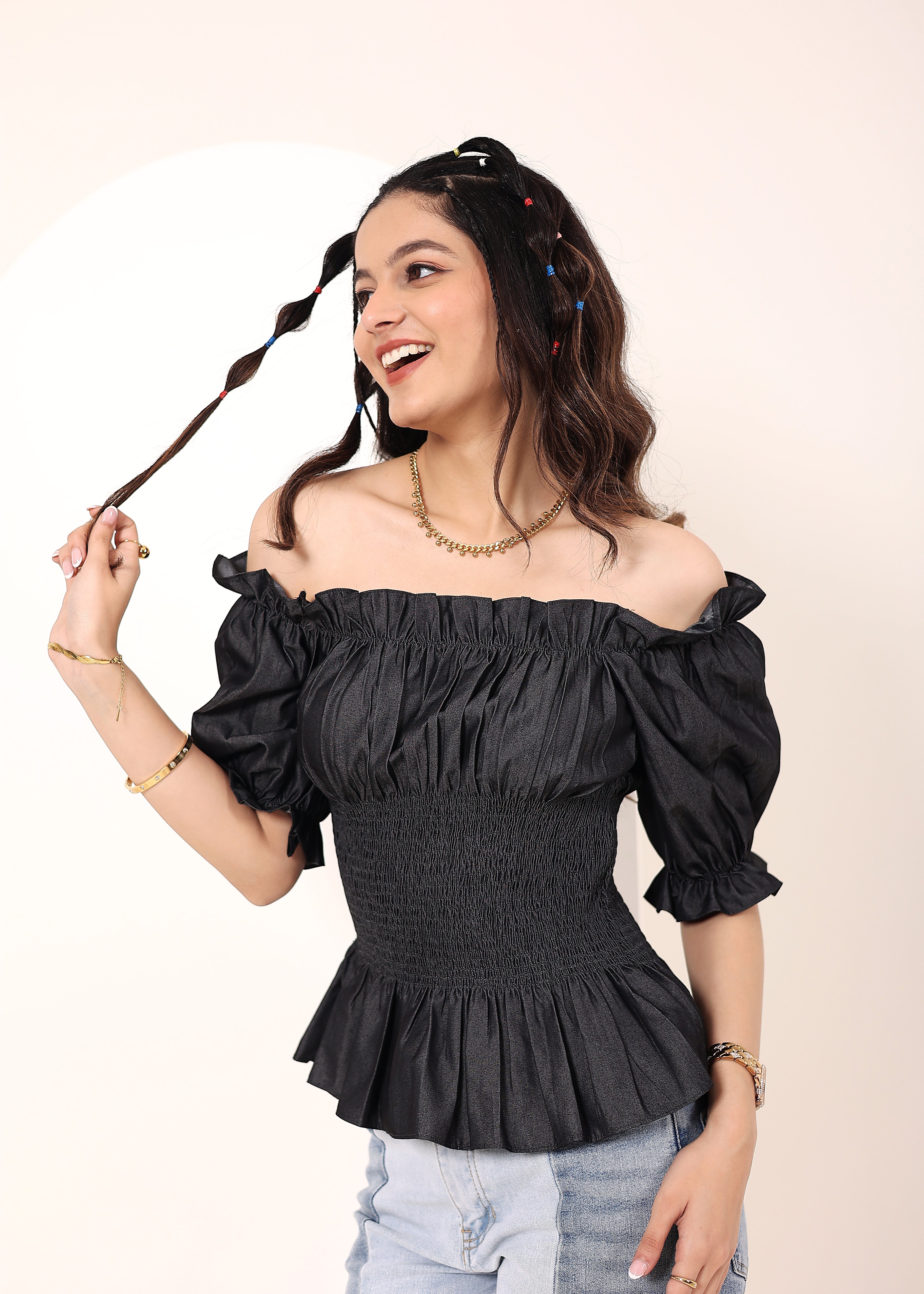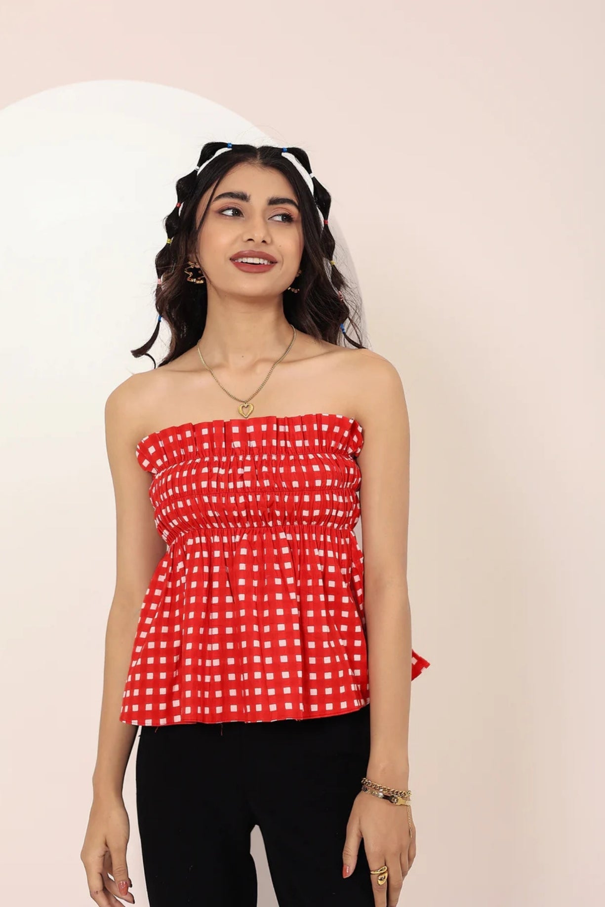 Make heads turn with our collection of party wear tops, bustier tops, camisole tops, and peplum tops. From the curve-flattering silhouette of a cotton, linen, georgette, chiffon, crepe peplum top to the bold appeal of crop tops, each piece adds drama and sophistication to your eveningwear. Choose a ruffle top for women to create volume and movement or opt for minimal elegance with camisole tops.