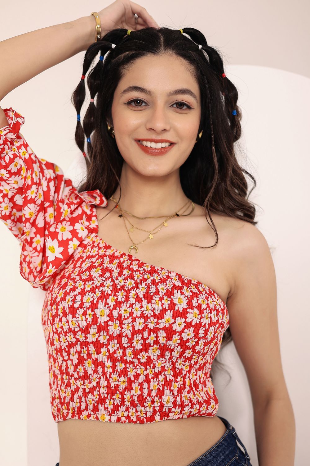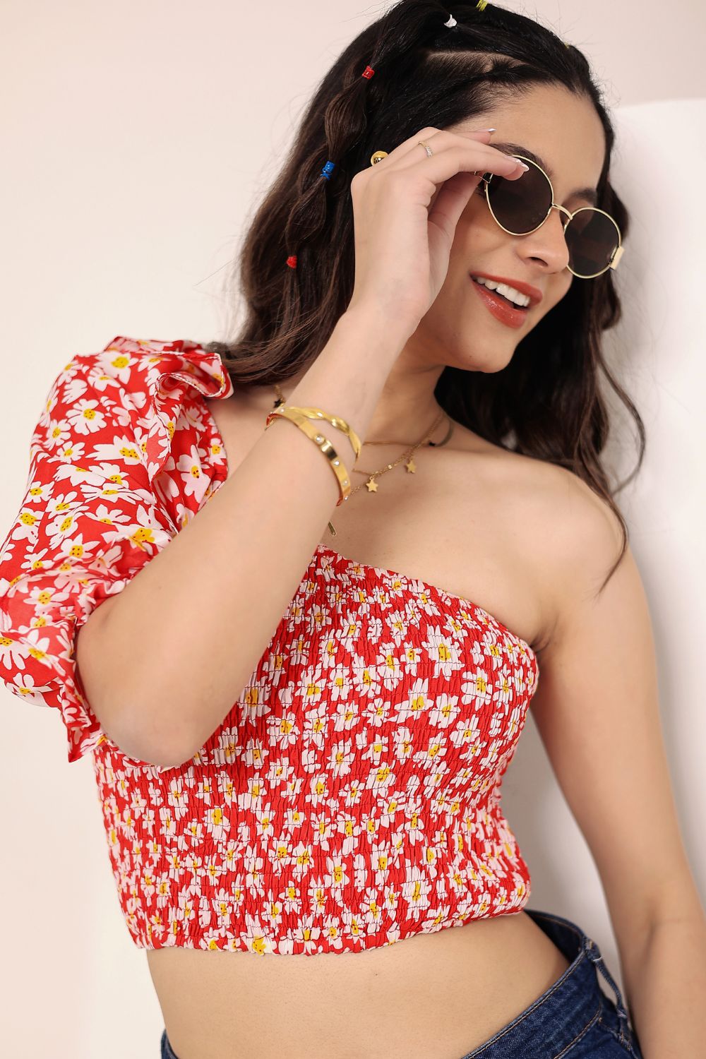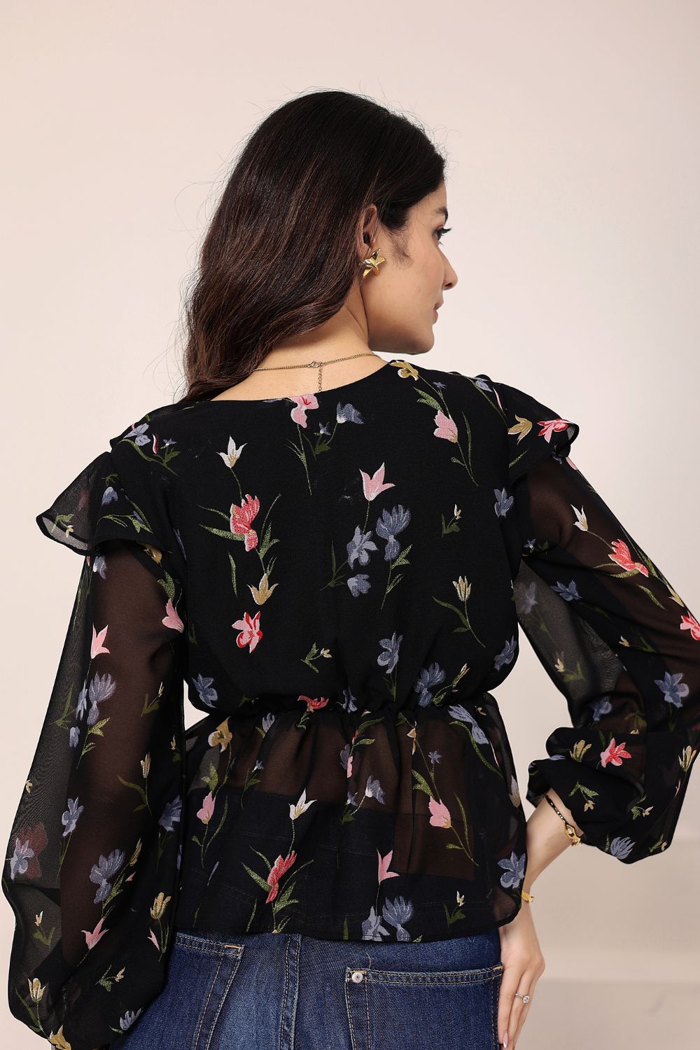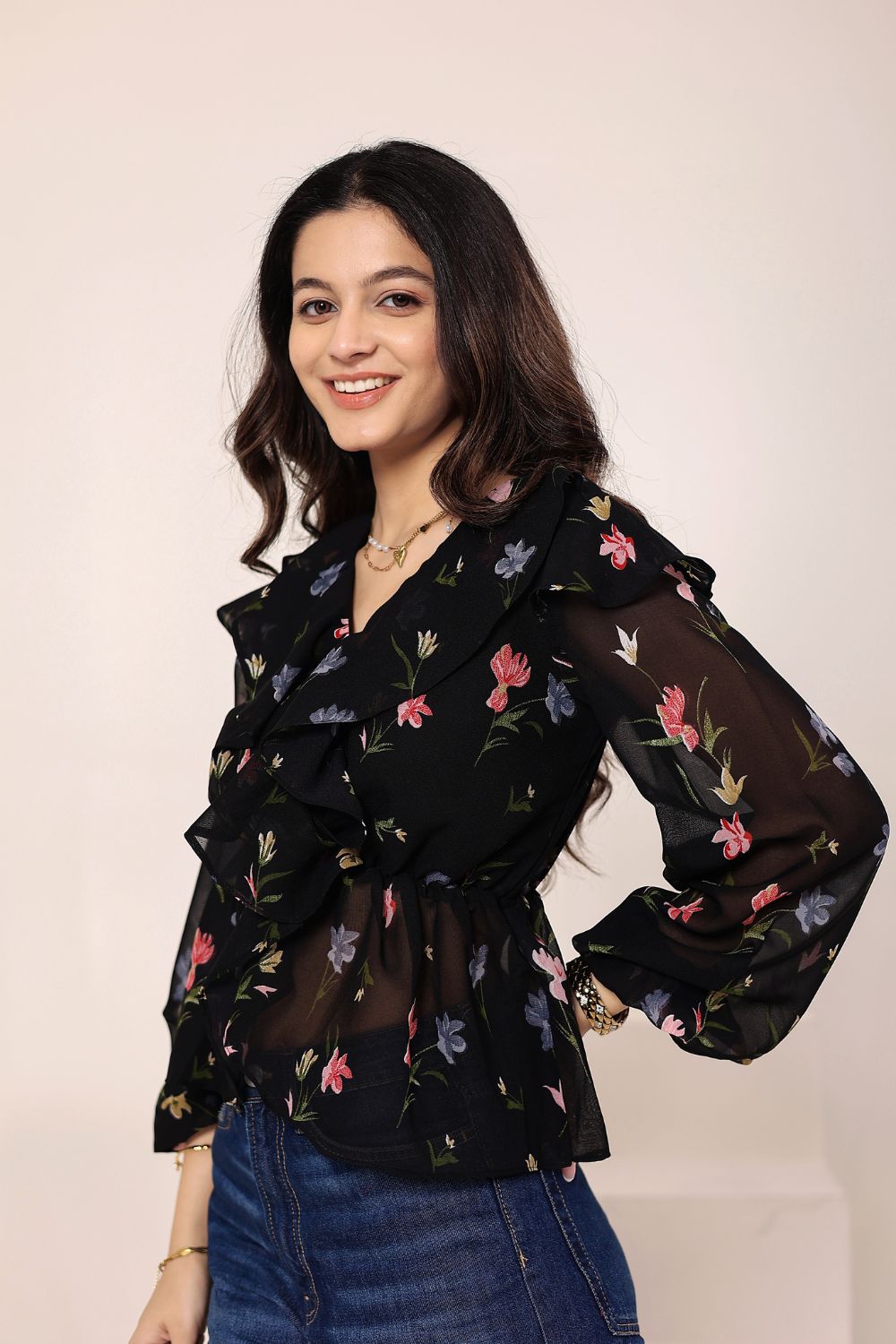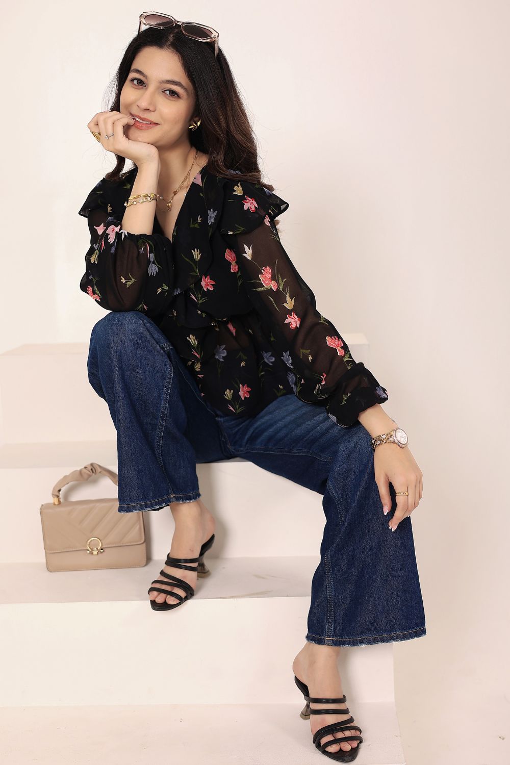 Make heads turn with our collection of party wear tops, bustier tops, camisole tops, and peplum tops. From the curve-flattering silhouette of a cotton, linen, georgette, chiffon, crepe peplum top to the bold appeal of crop tops, each piece adds drama and sophistication to your eveningwear. Choose a ruffle top for women to create volume and movement or opt for minimal elegance with camisole tops.