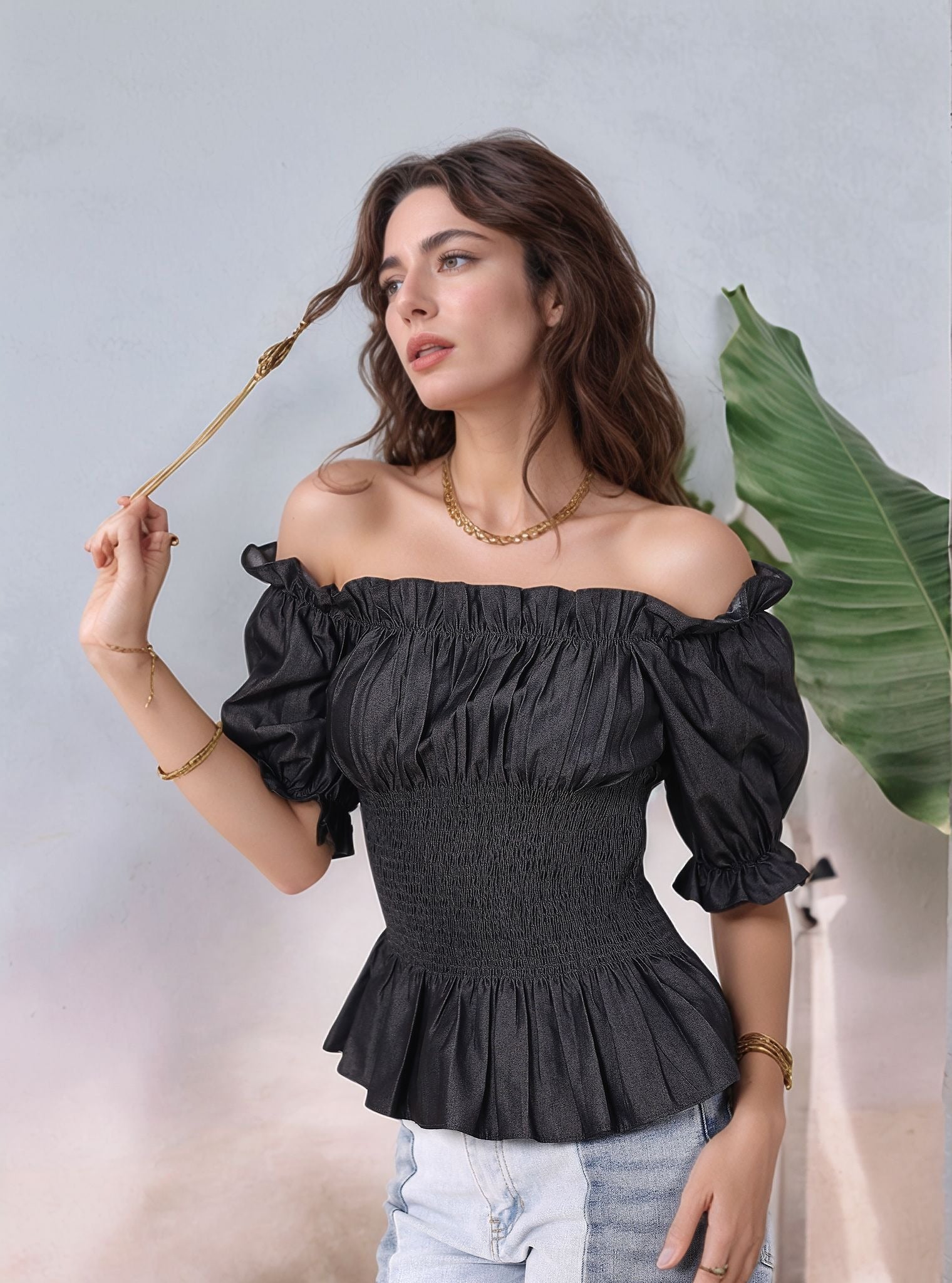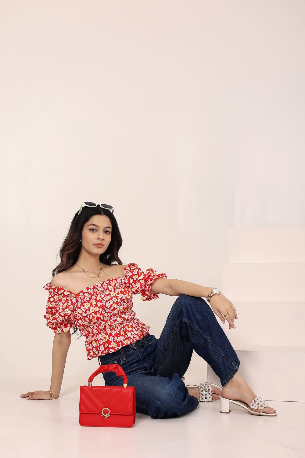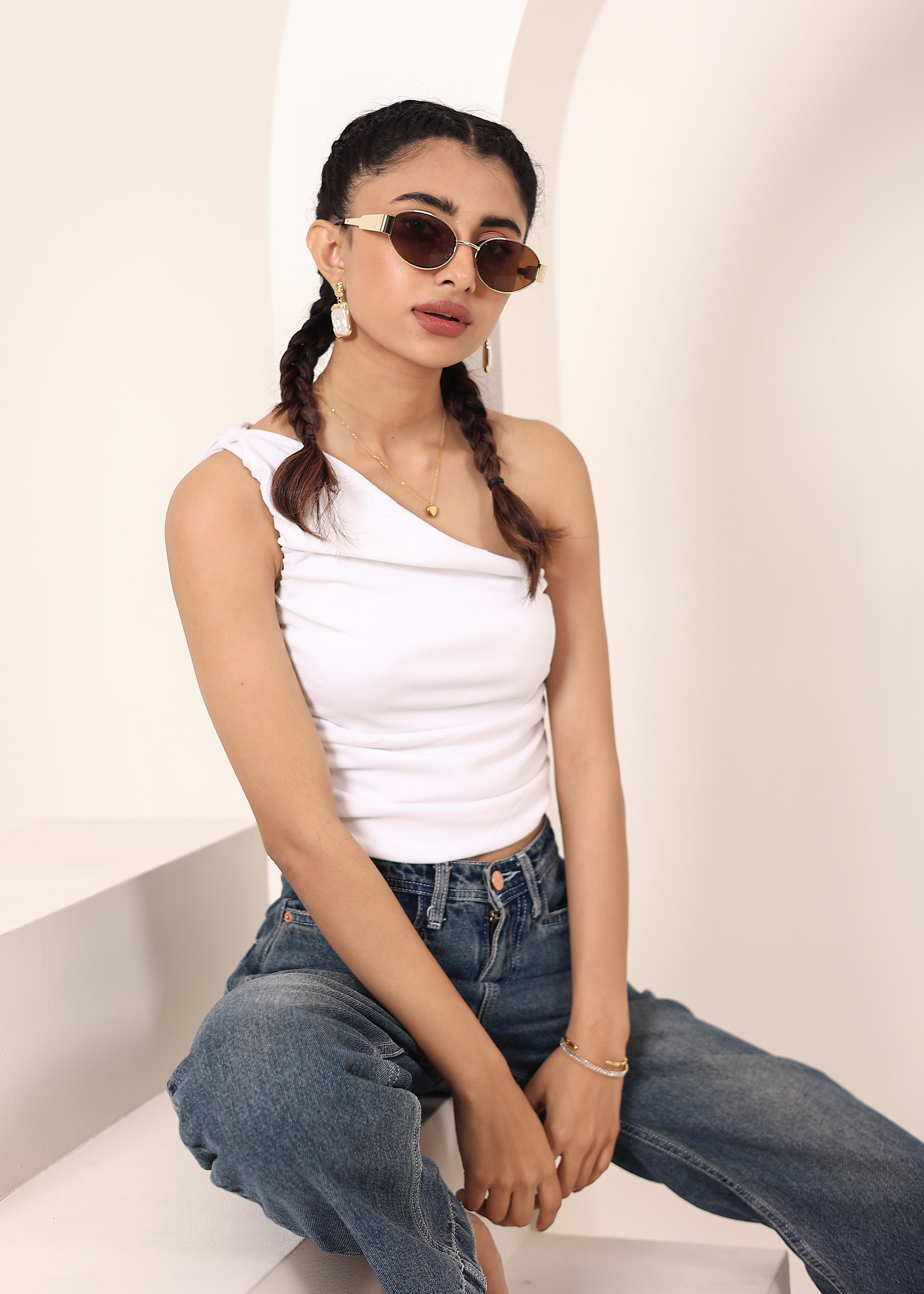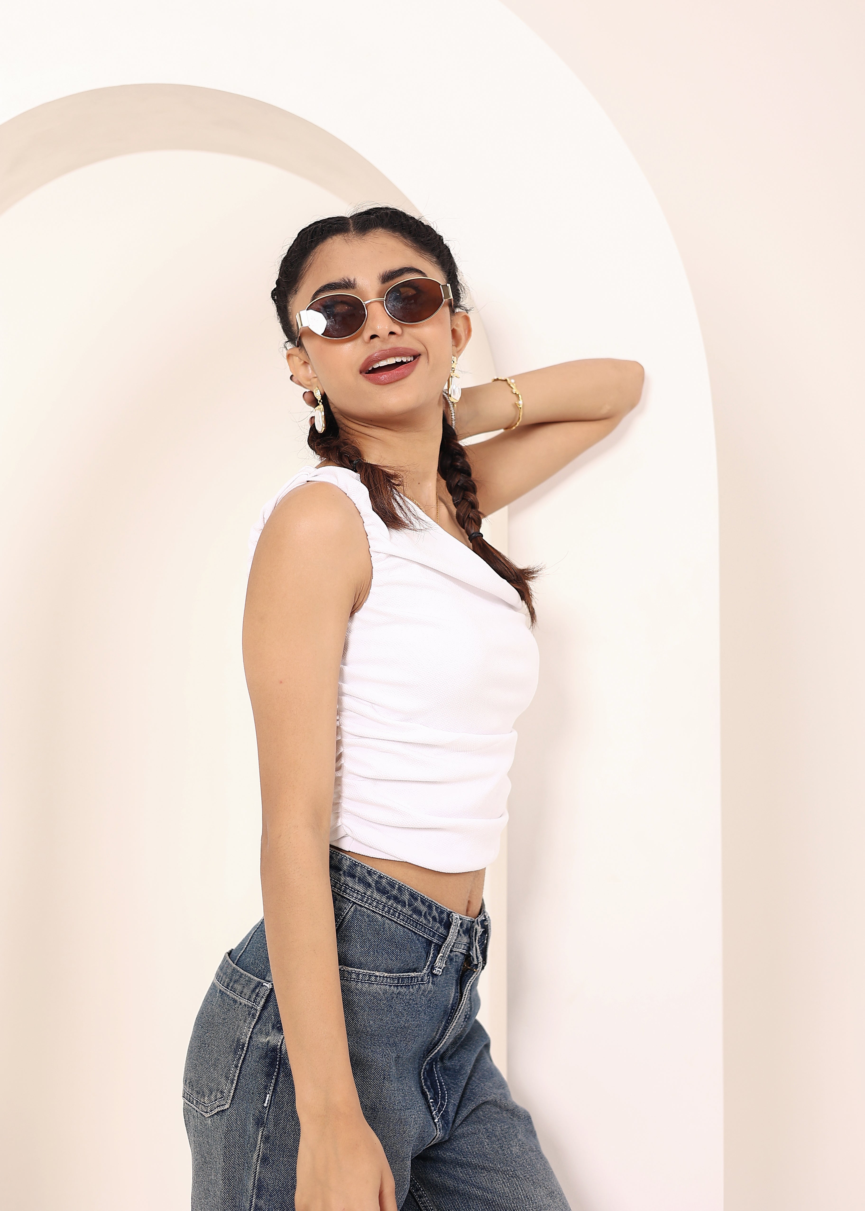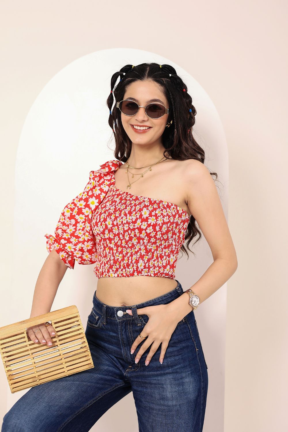 Make heads turn with our collection of party wear tops, bustier tops, camisole tops, and peplum tops. From the curve-flattering silhouette of a cotton, linen, georgette, chiffon, crepe peplum top to the bold appeal of crop tops, each piece adds drama and sophistication to your eveningwear. Choose a ruffle top for women to create volume and movement or opt for minimal elegance with camisole tops.