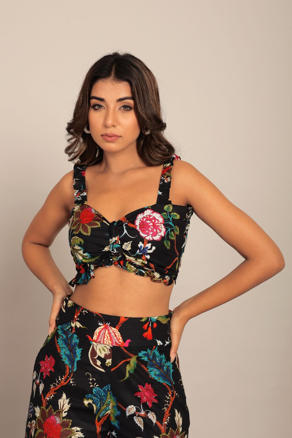 Make heads turn with our collection of party wear tops, bustier tops, camisole tops, and peplum tops. From the curve-flattering silhouette of a cotton, linen, georgette, chiffon, crepe peplum top to the bold appeal of crop tops, each piece adds drama and sophistication to your eveningwear. Choose a ruffle top for women to create volume and movement or opt for minimal elegance with camisole tops.
