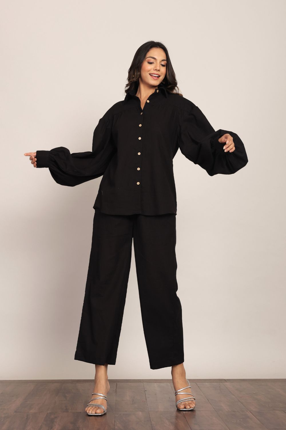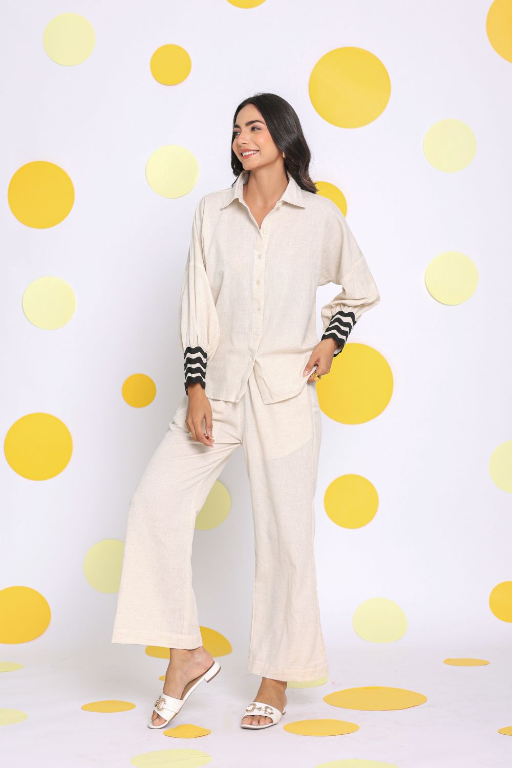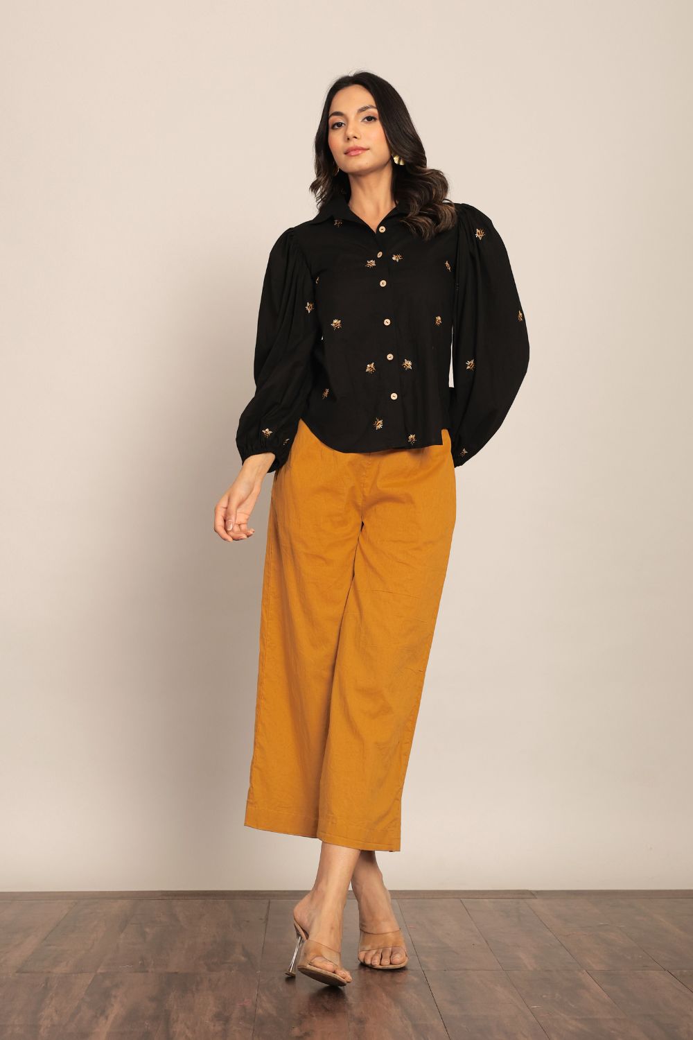 Kaori By Shreya is committed to creating thoughtfully made womenswear that speaks to the essence of modern Indian women. Our collection of trousers brings together breathable fabrics, flattering silhouettes, and a touch of global trend, giving you pieces that transition beautifully from casual daywear to elevated evening looks.