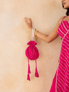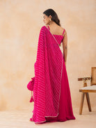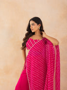 AADYA-Fuchsia Pink Leheriya Drape Cape Set with Palazzo & Choli