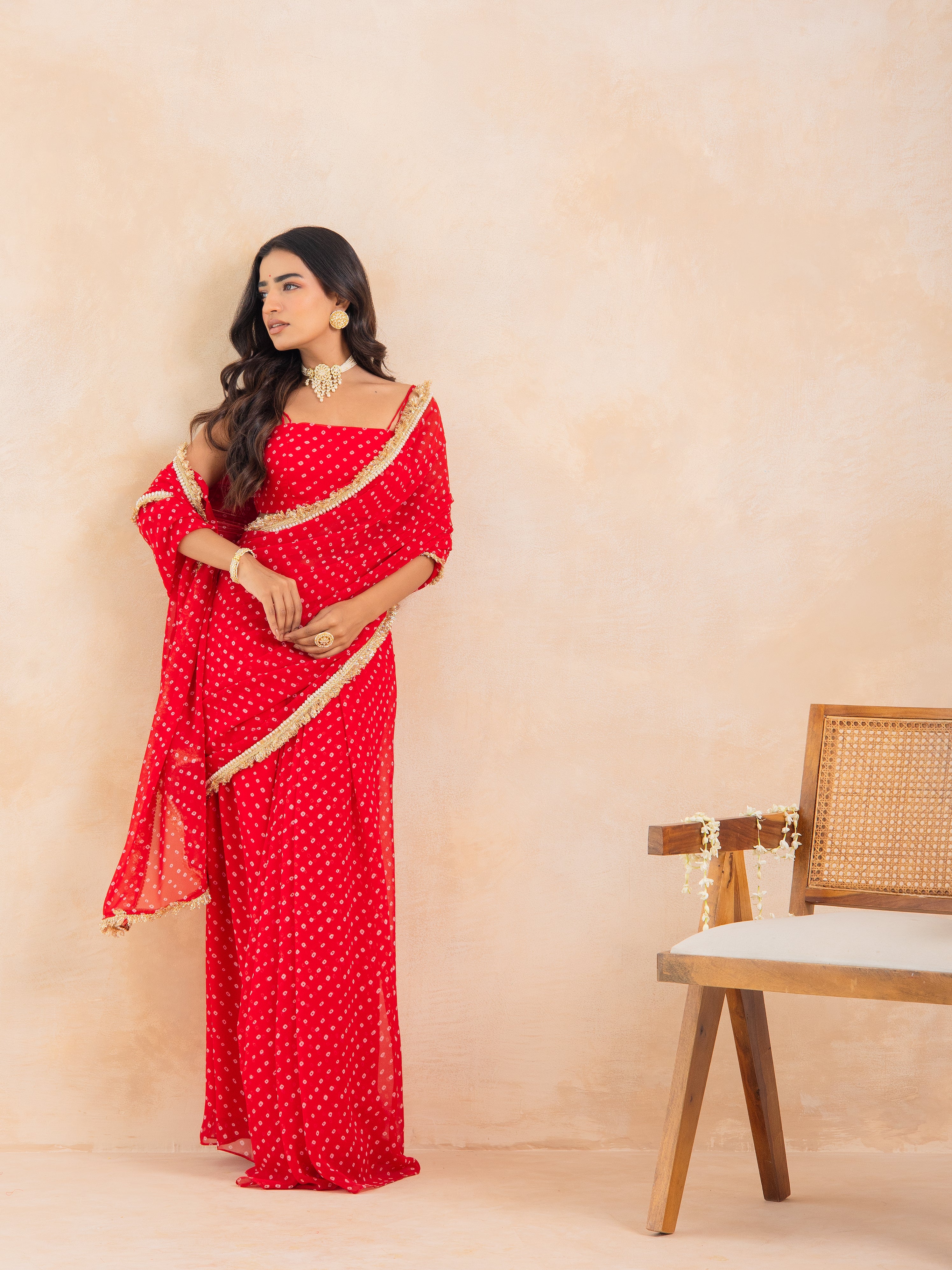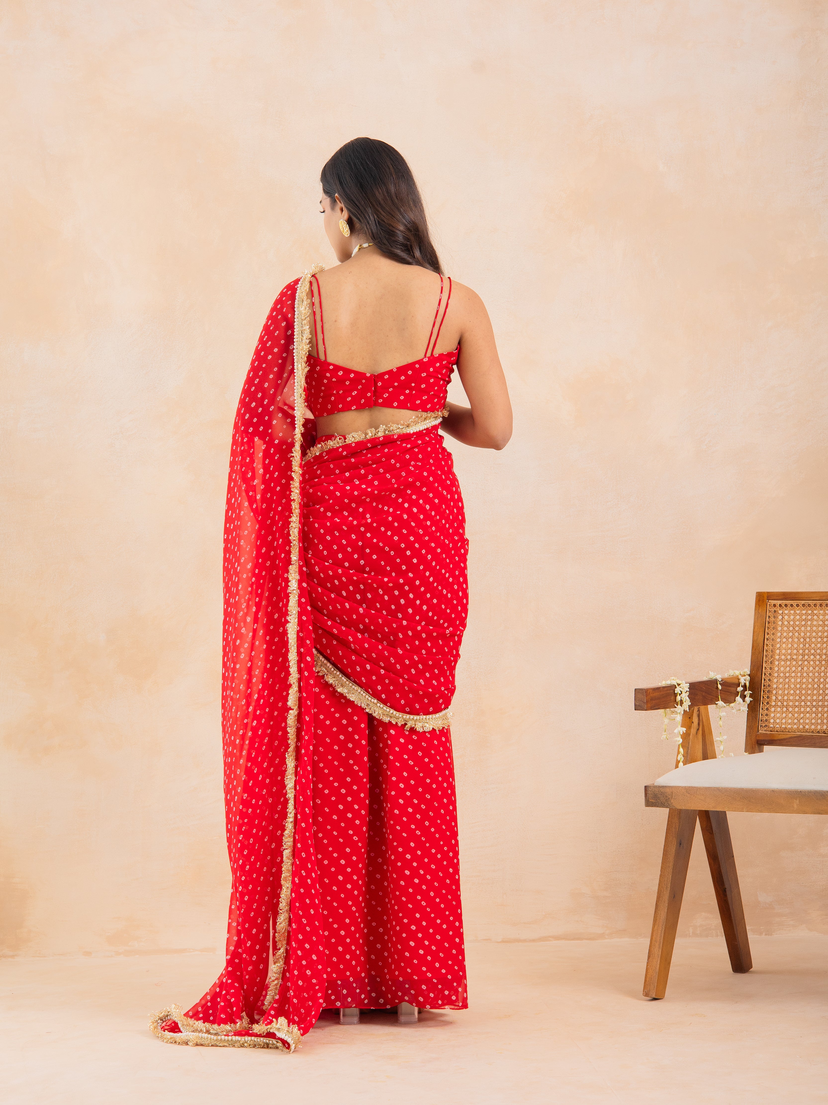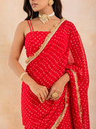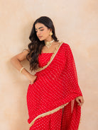 Aarza-Red Bandhej Pre-Draped Saree Set
