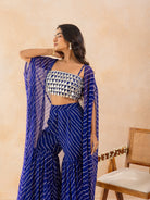 AMARA-Blue Bandhej Printed Mirror Embellished Cape Sharara Set