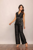 Black Solid Relaxed Pant with 2 Pockets and Elastic Belt in Back