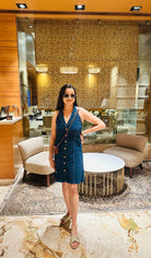 Blue Denim Halter Mini Dress with Collar & Front Buttons