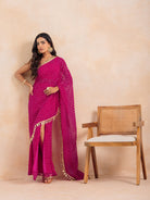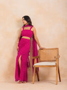 ELINA - Fuchsia Pink Bandhej Multi-Styling Set with Mirror Lace Detailing