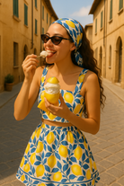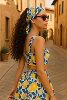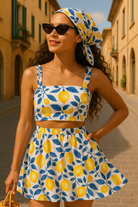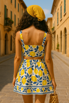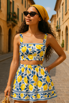 Trendy 2-piece printed co-ord in refreshing lemon pottery print