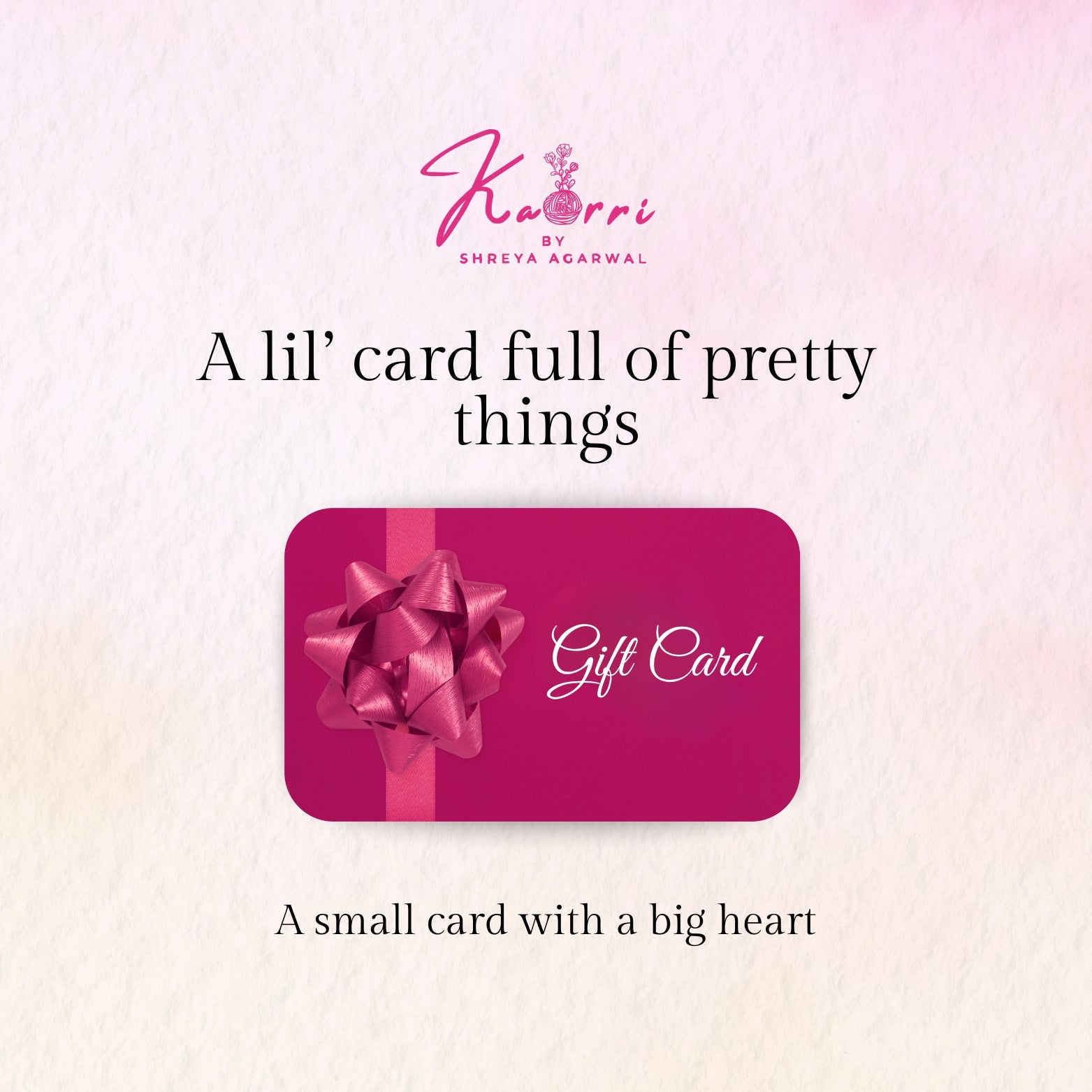 - Please ensure safe storage of your gift card details – KAORI BY SHREYA is not responsible for lost or stolen cards.