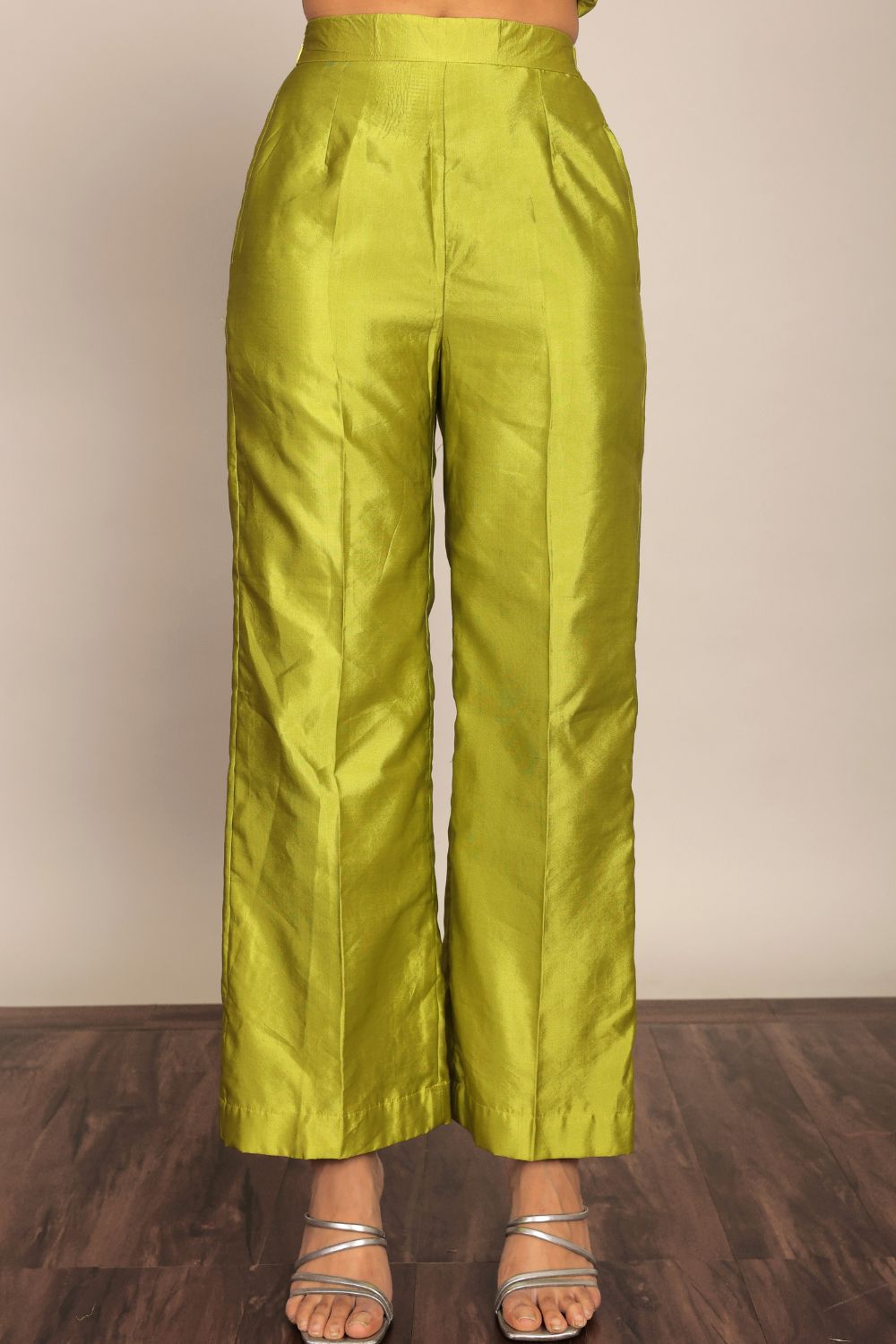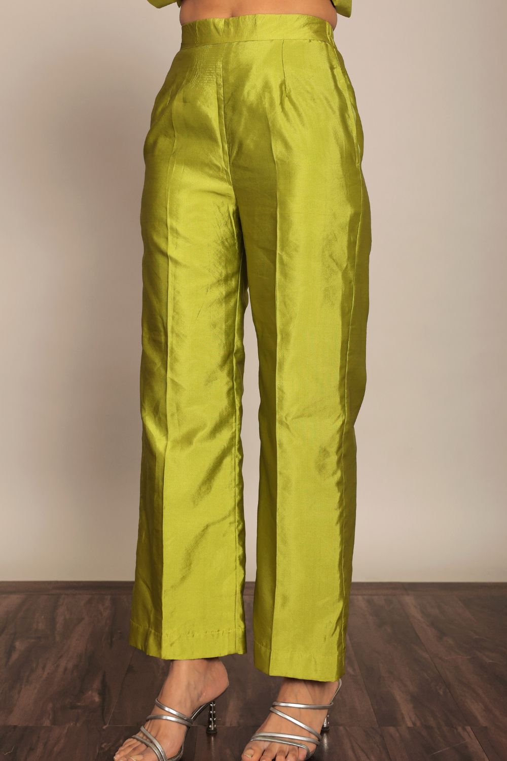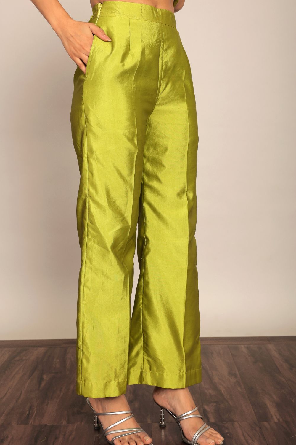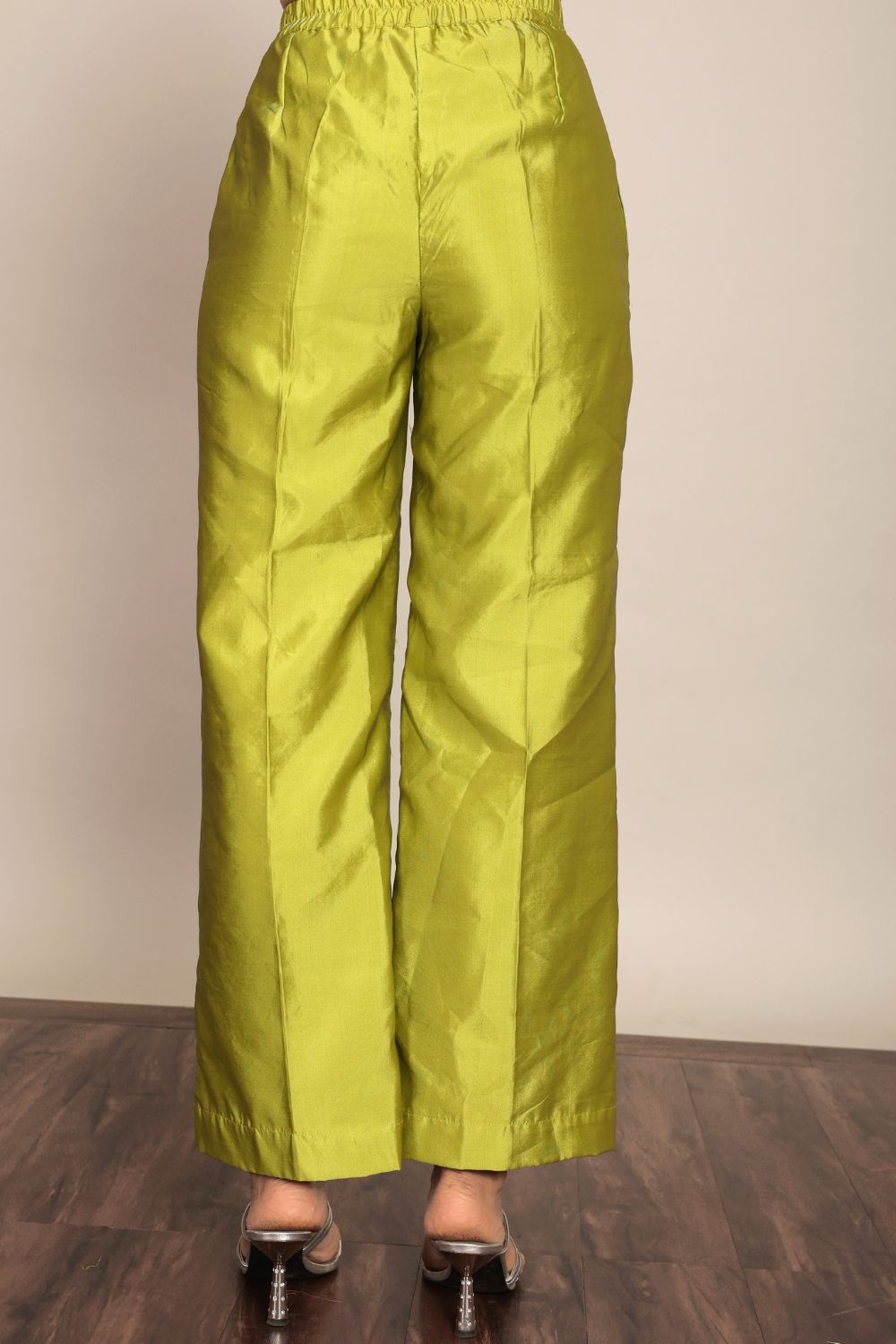 Green Solid Relaxed Pant with 2 Pockets and Elastic Belt in Back