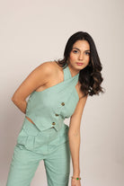 Mint Green solid Fitted Western Top with Closer 3 Buttons
