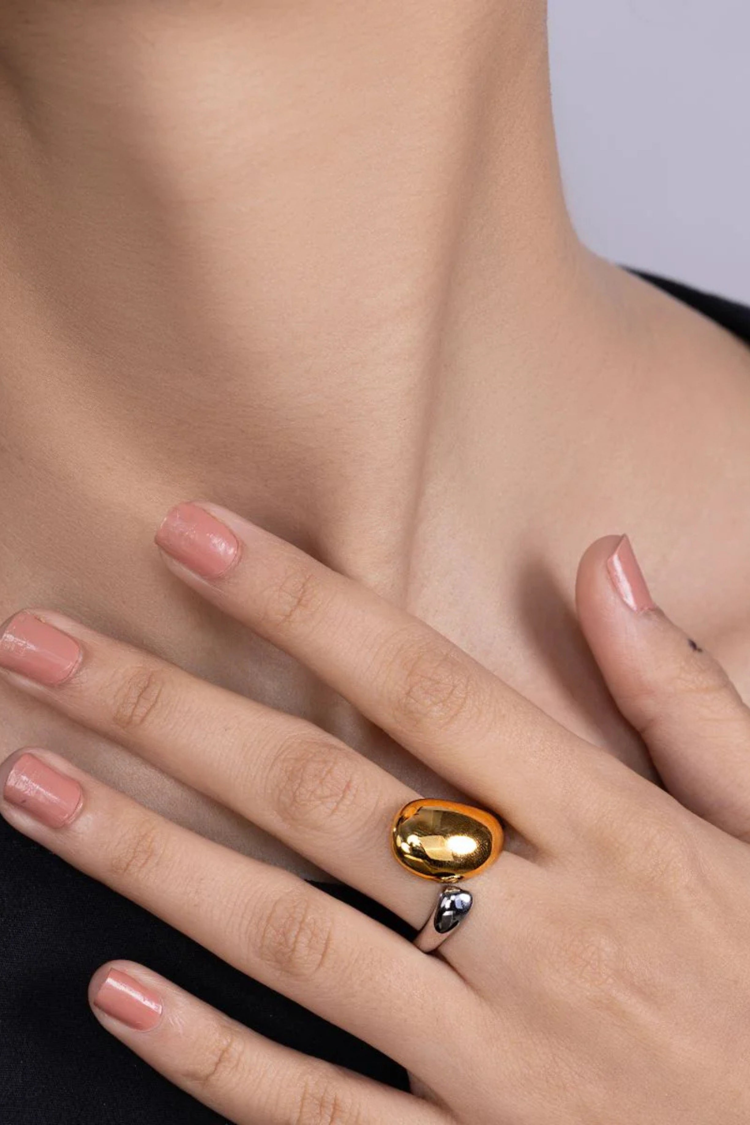 Unique Multi Metal Rain Drop Design: This Ring Blends Metals Seamlessly, Featuring A Captivating Raindrop Motif On One Side.