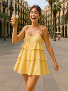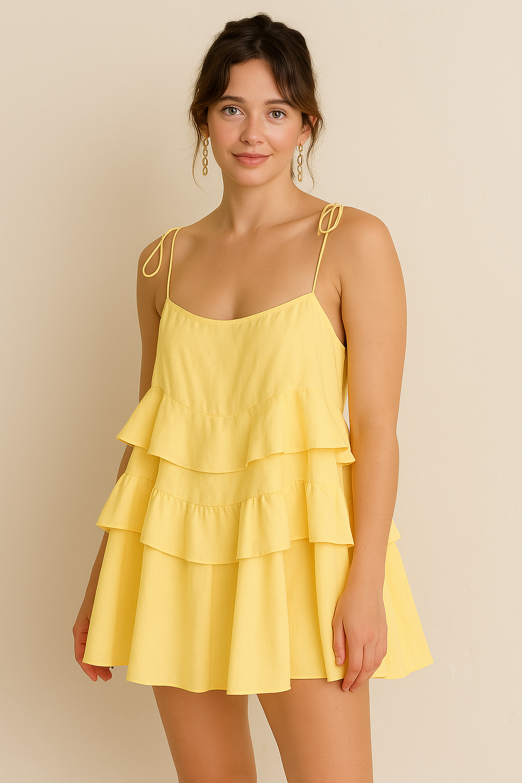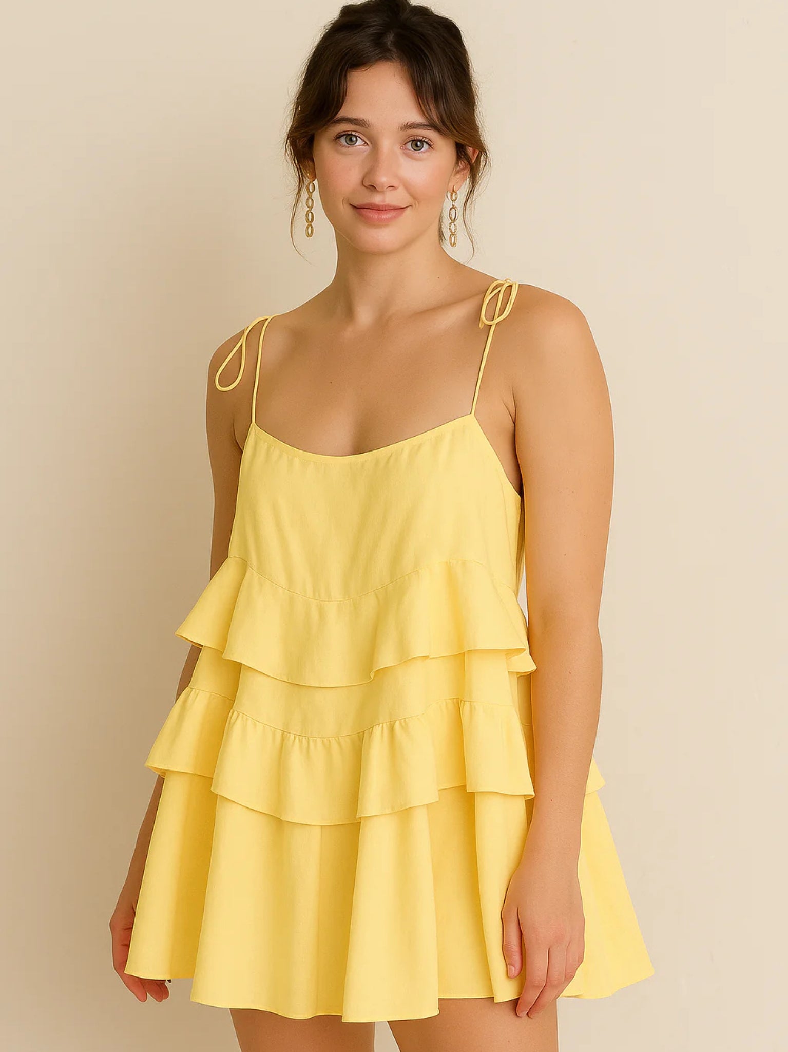 Yellow buttercup Ruffle Dress with Shoulder Tie-Up