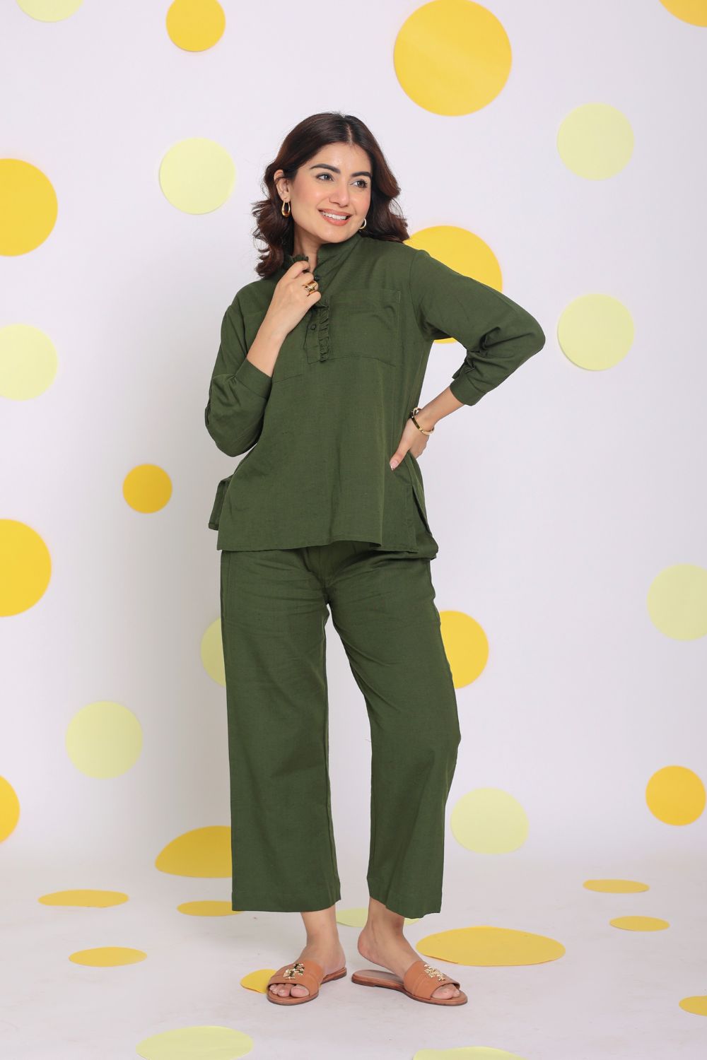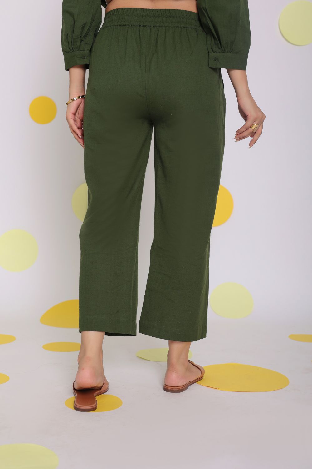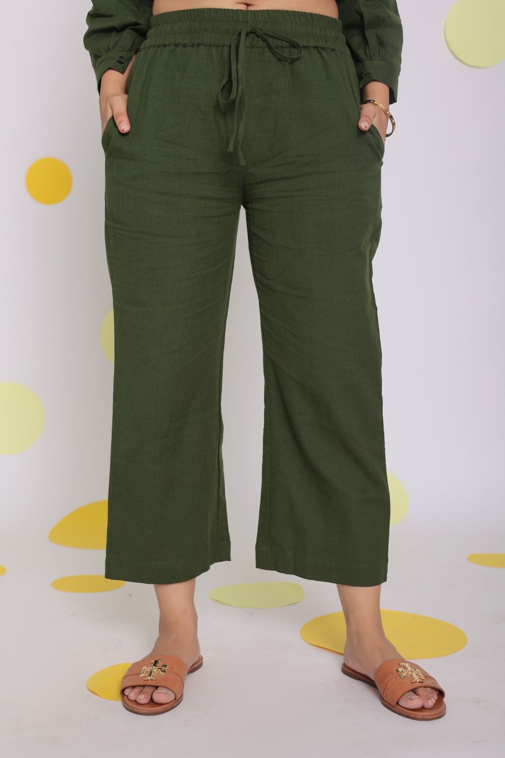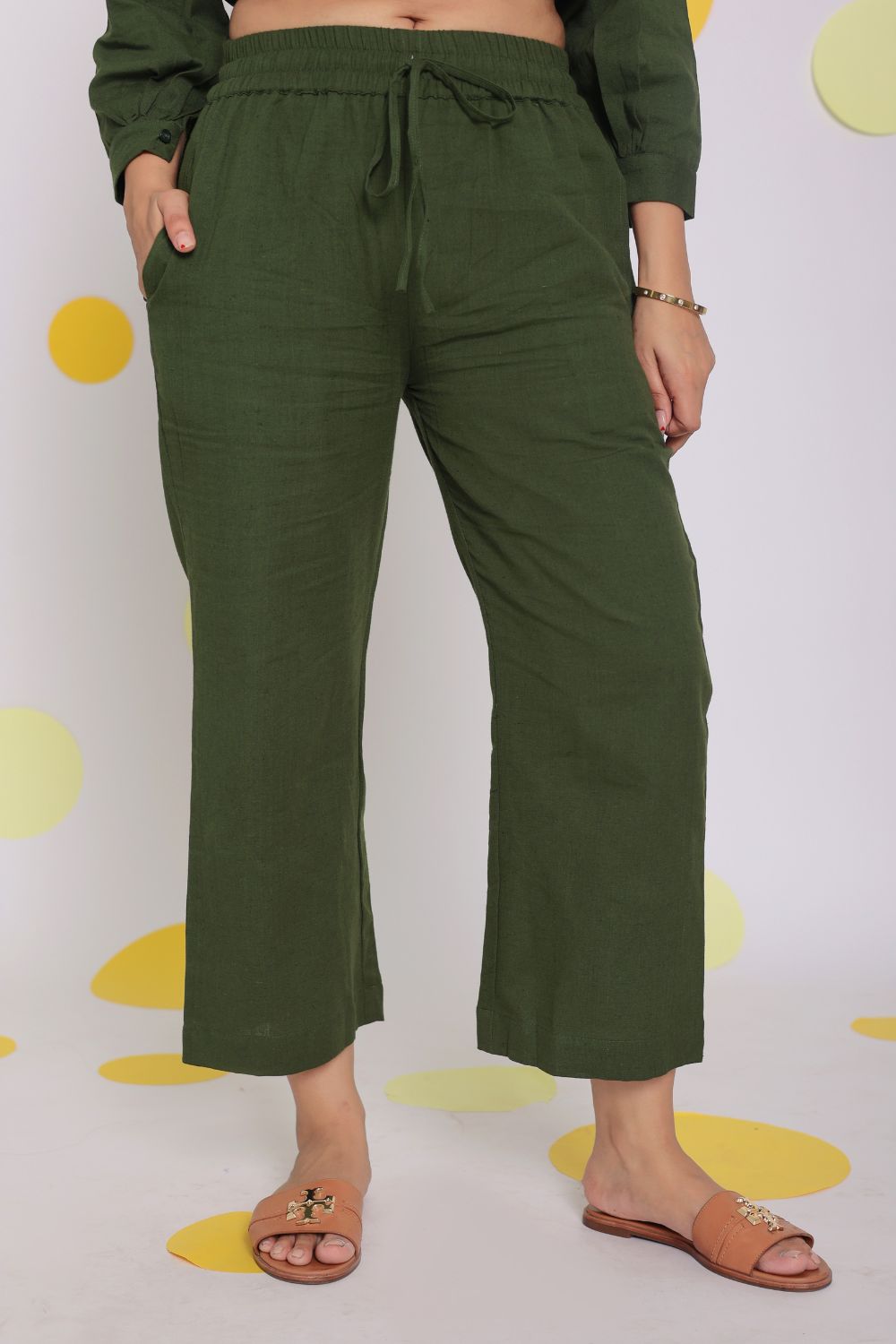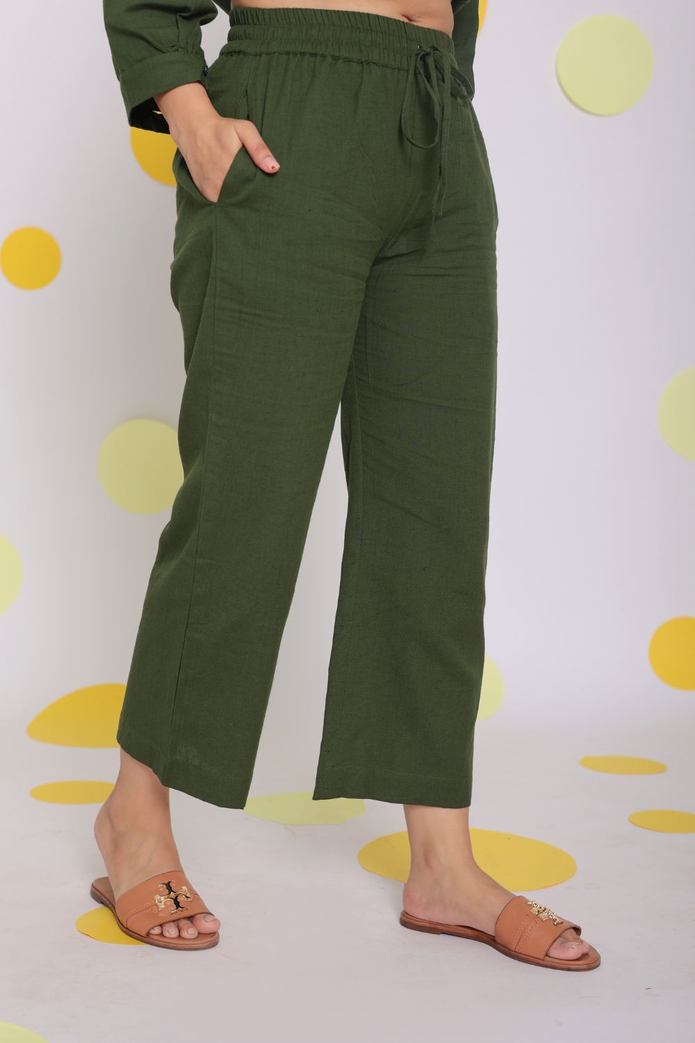 Olive Green Summer Relaxed Wide Leg Everyday Wear Linen Pants
