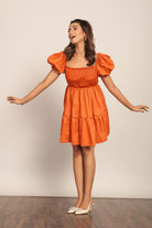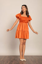 Orange Solid Bust Fitted Short Dress