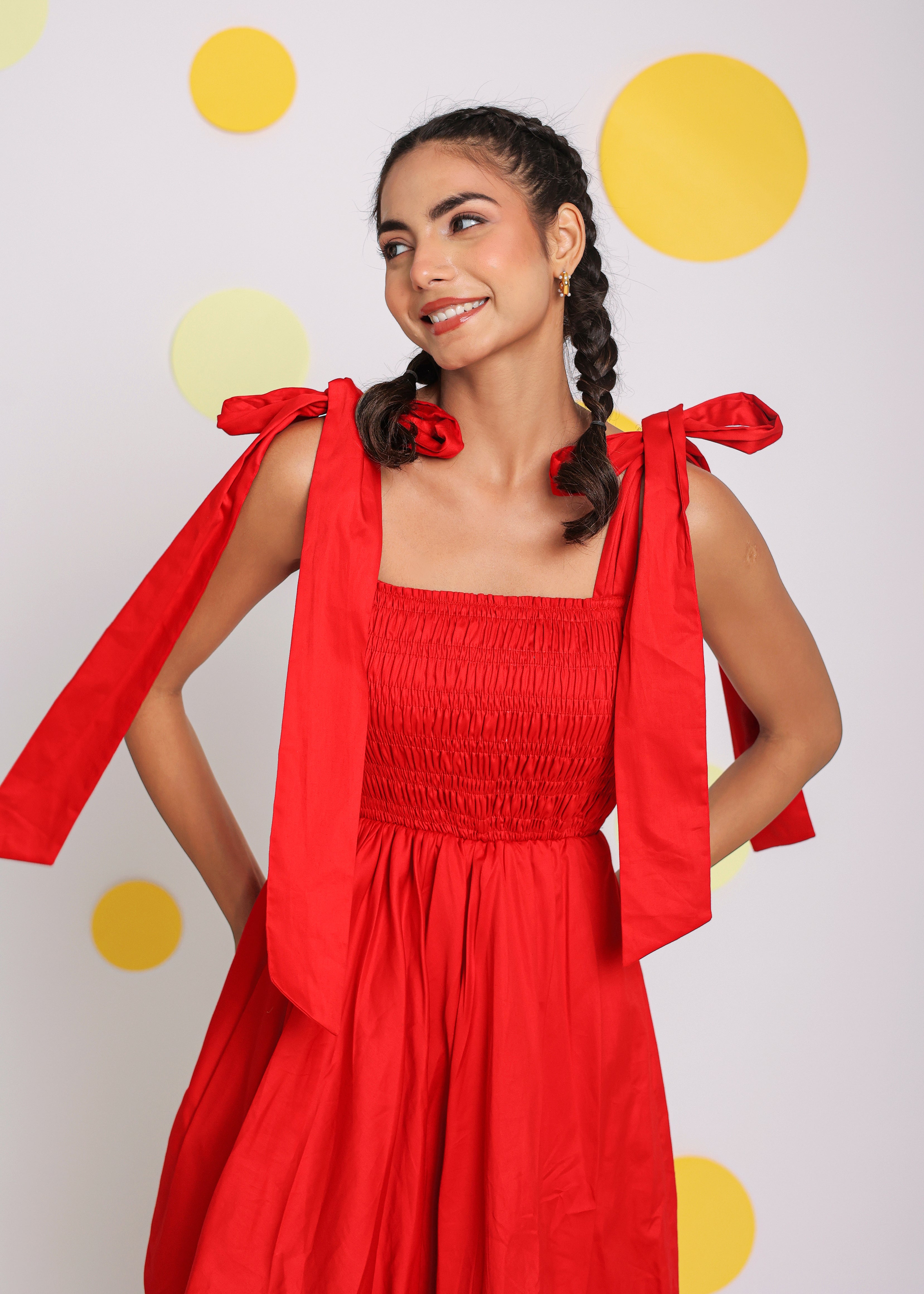 Red Short Mini Skater Summer Dress with Shoulder Tie ups