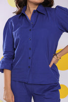Royal Blue Shirt and Pant 2 Piece Set Summer Relaxed Linen Co-ord Set