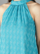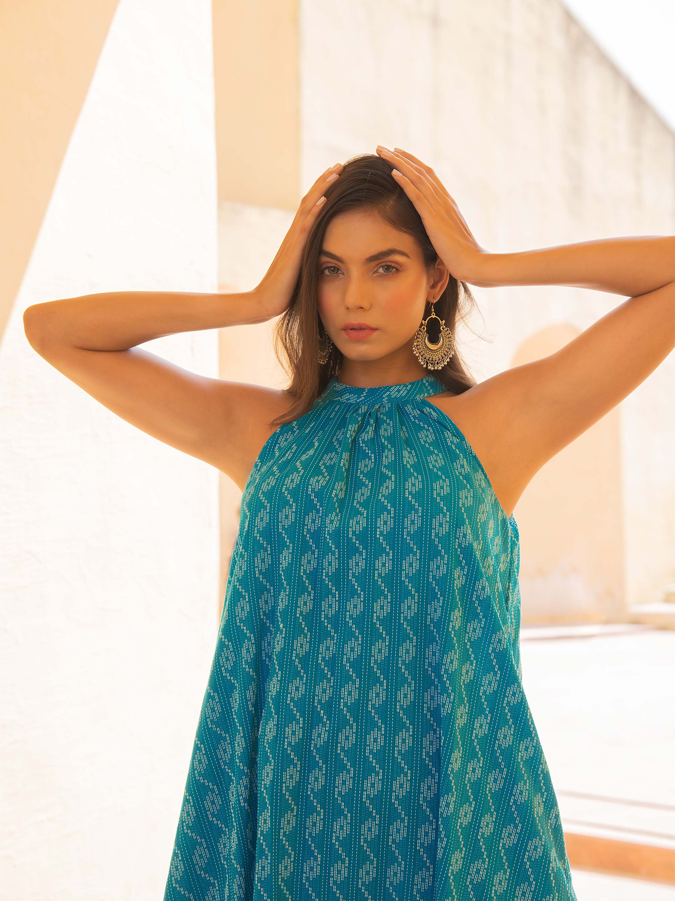 • Scuba blue cotton Kantha halter dress is a show-stopper.