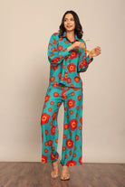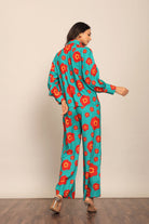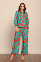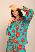 Sea Green and Red Floral Printed Cord-Set Relaxed Shirt and Pant